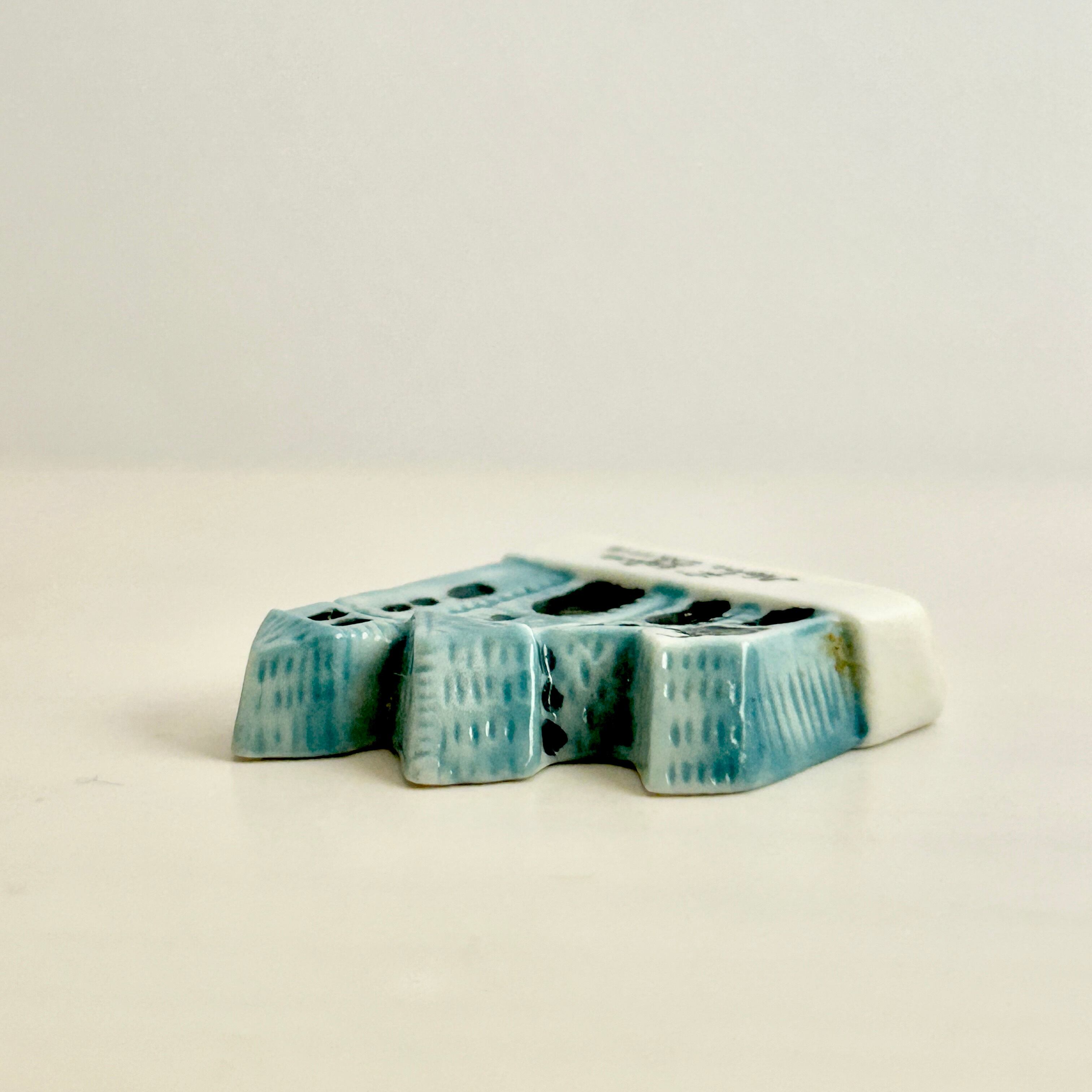 青色の釉薬一色で仕上げられた本作は、夜になる直前や明け方の薄暗い時間帯を思わせ、