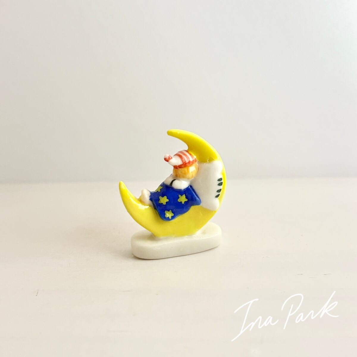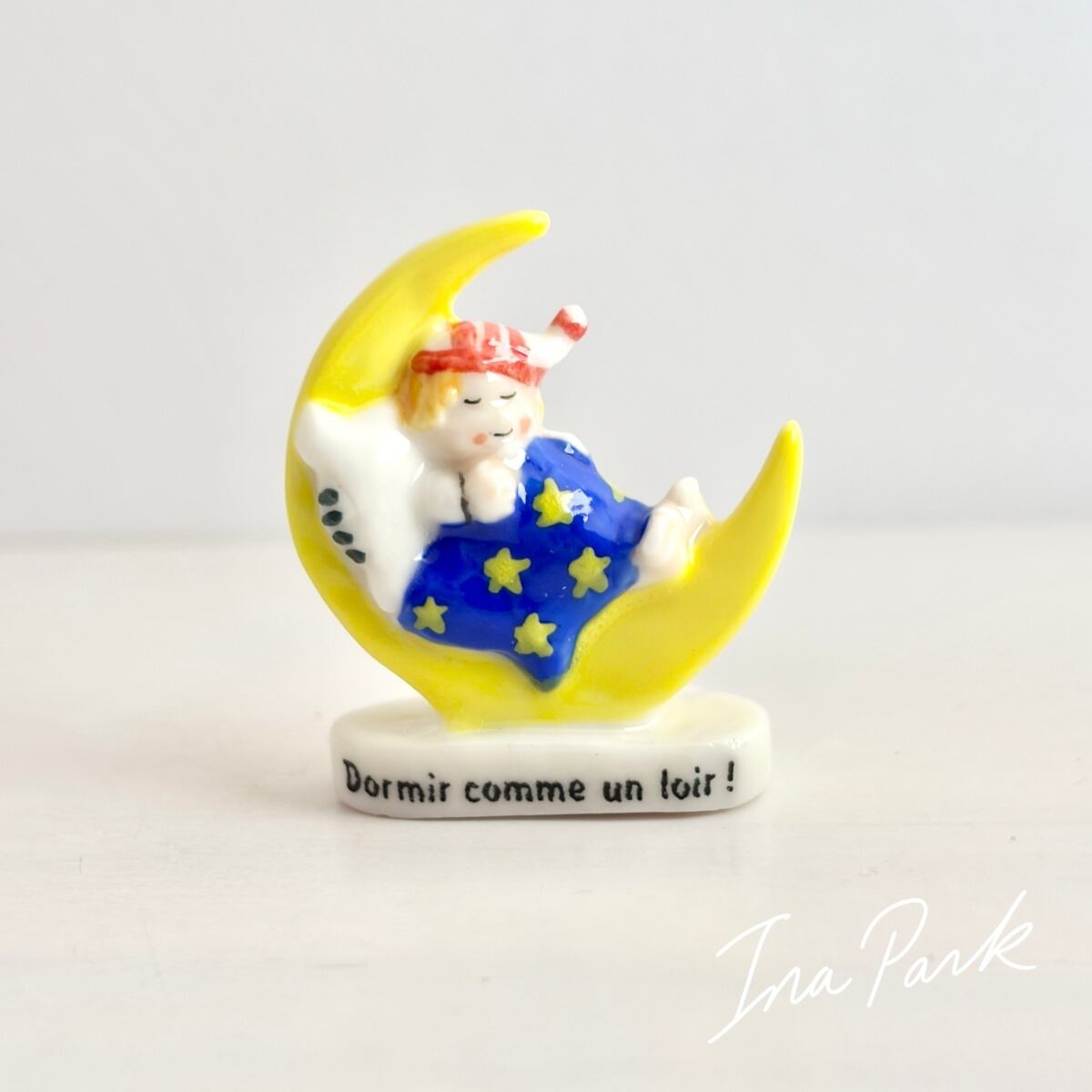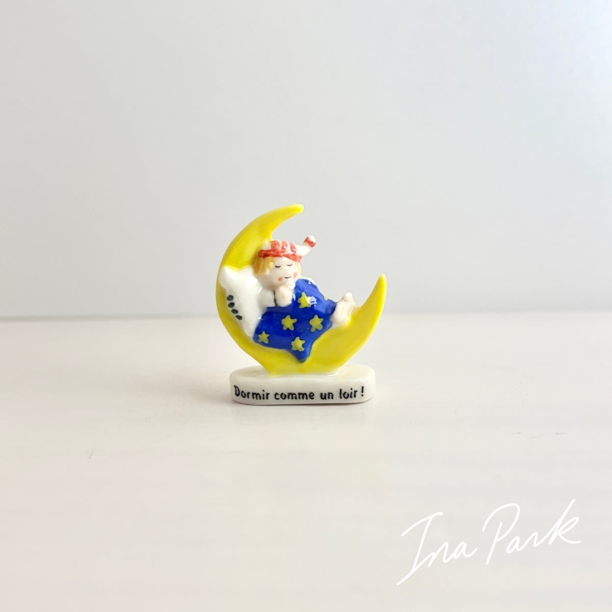 月の上で眠る子どものフェーヴ フェーブ フランス製 ミニチュア 陶器 雑貨 置物