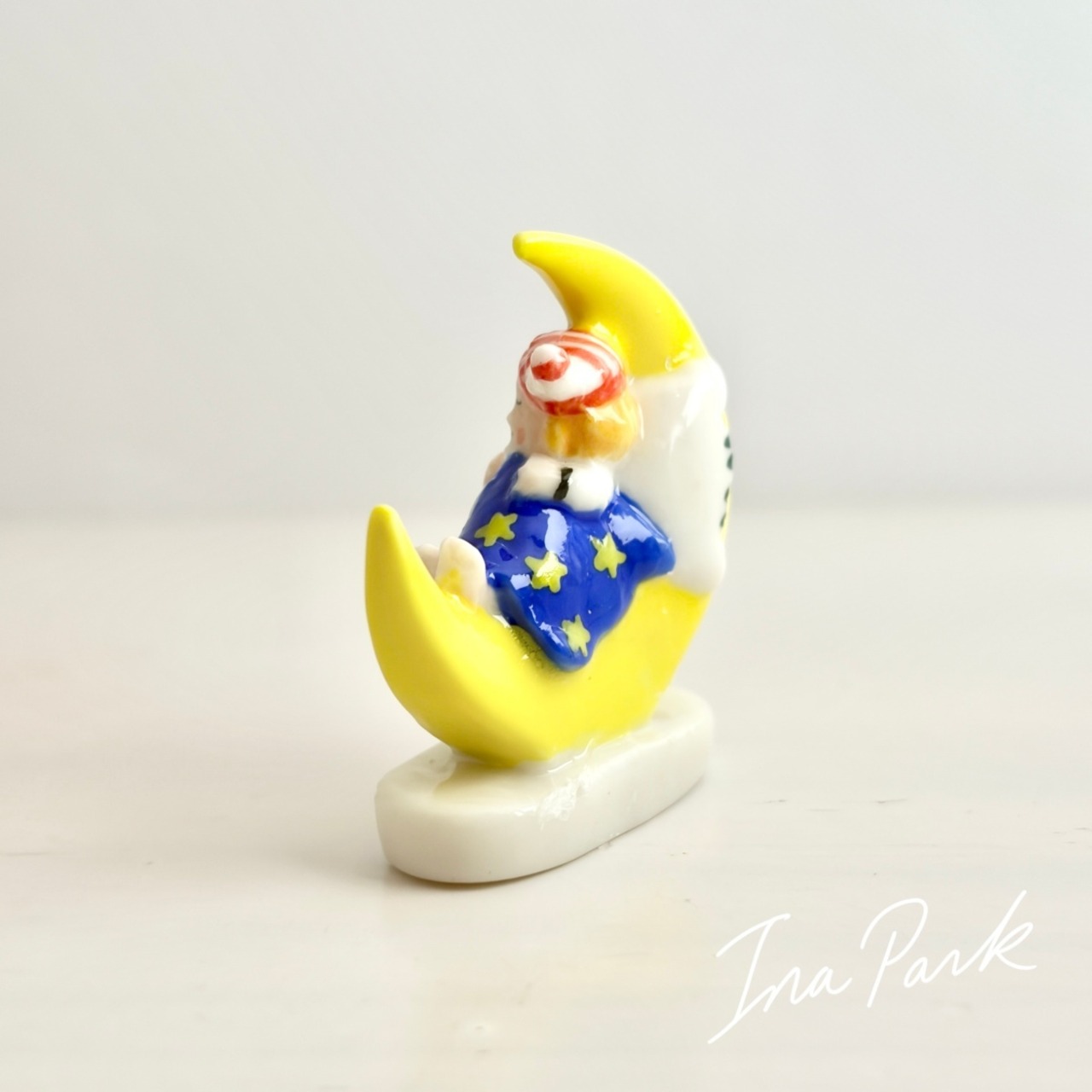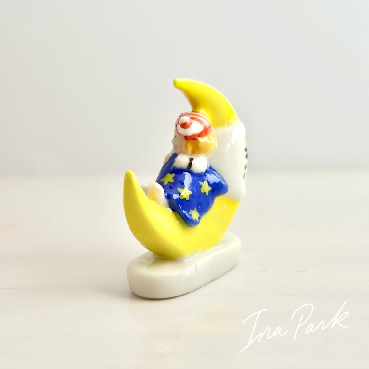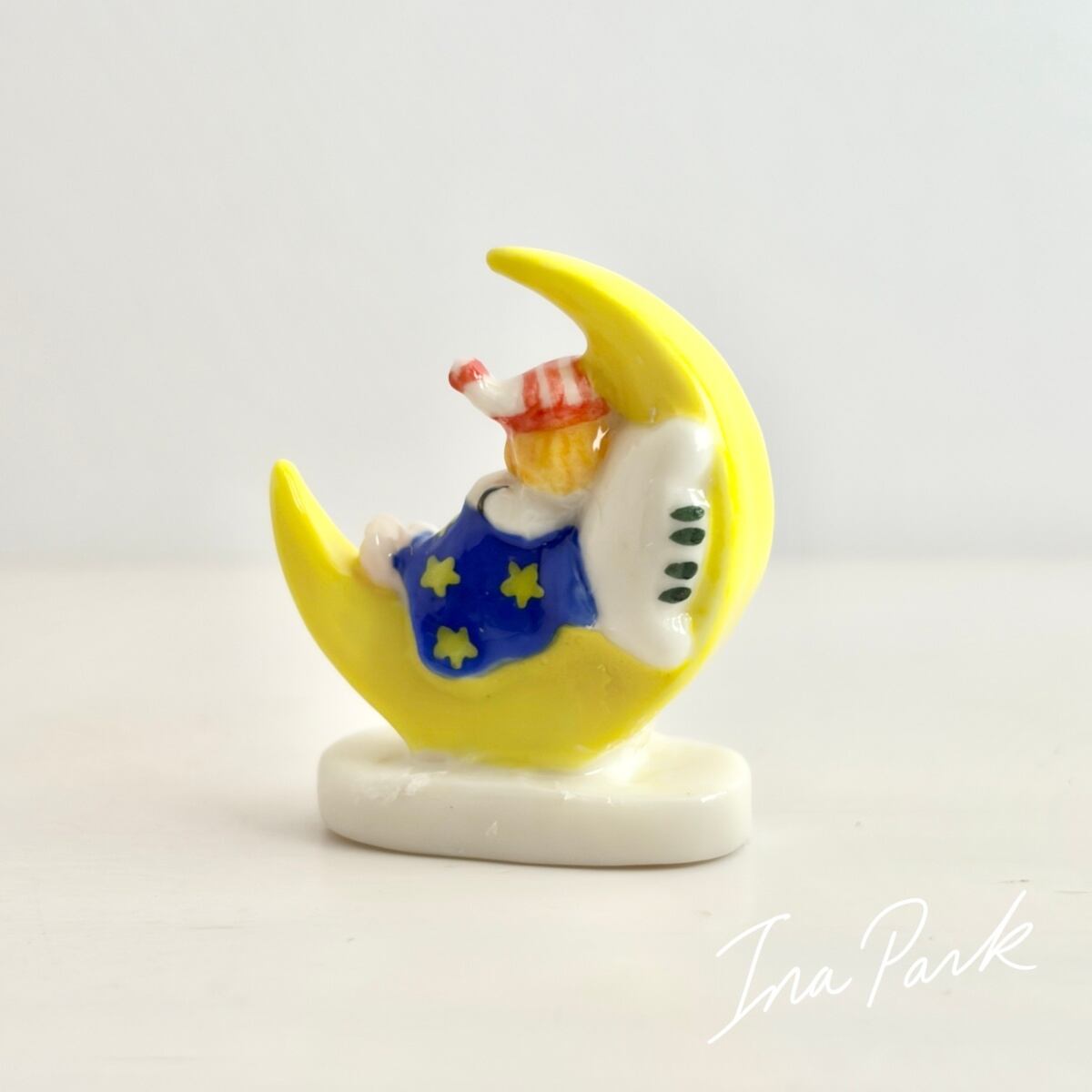 月の上で眠る子どものフェーヴ フェーブ フランス製 ミニチュア 陶器 雑貨 置物