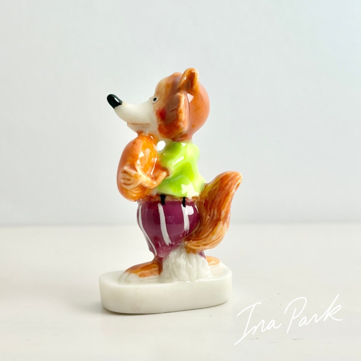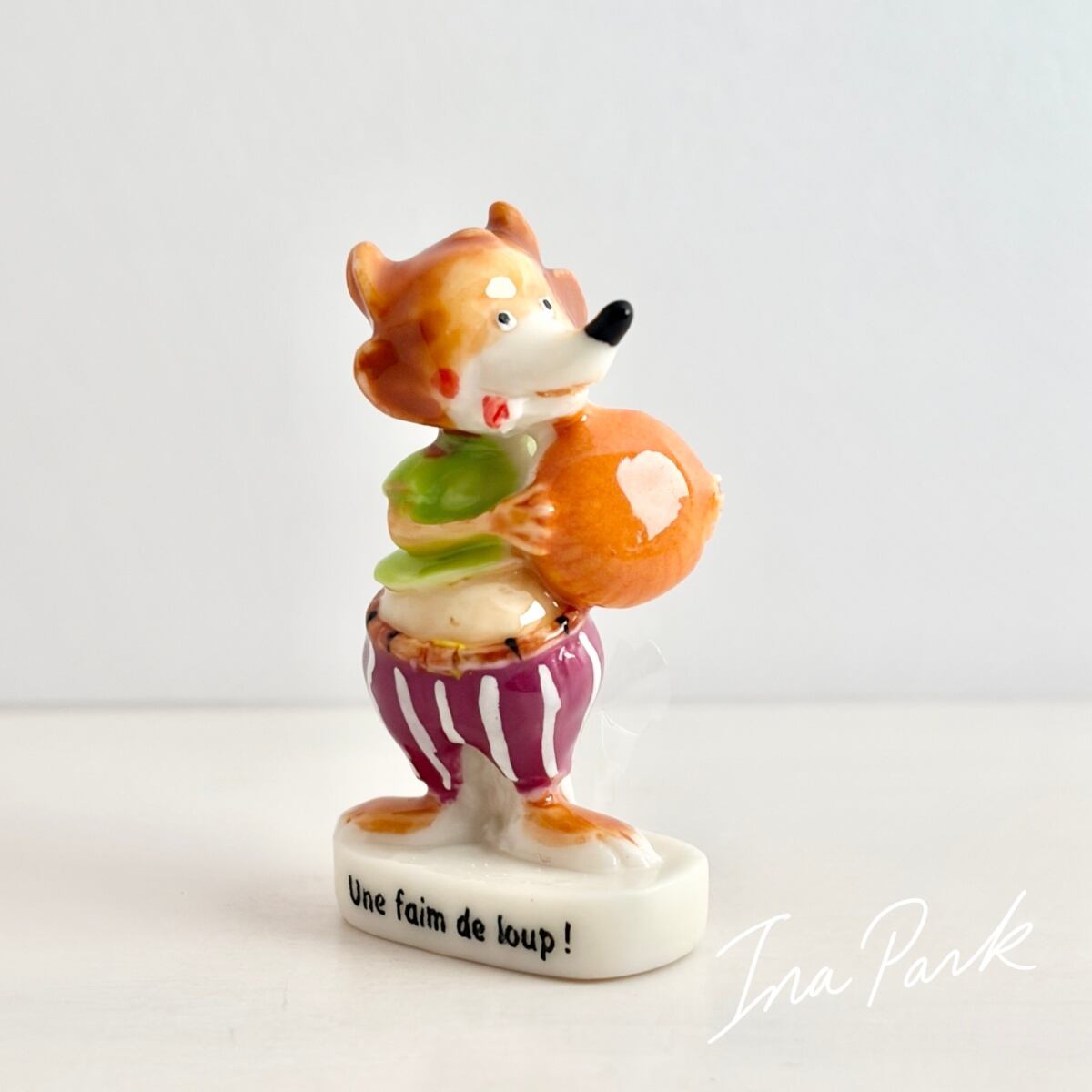 ガレットを持つはらぺこのオオカミのフェーヴ フェーブ フランス製 ミニチュア 陶器 雑貨 置物