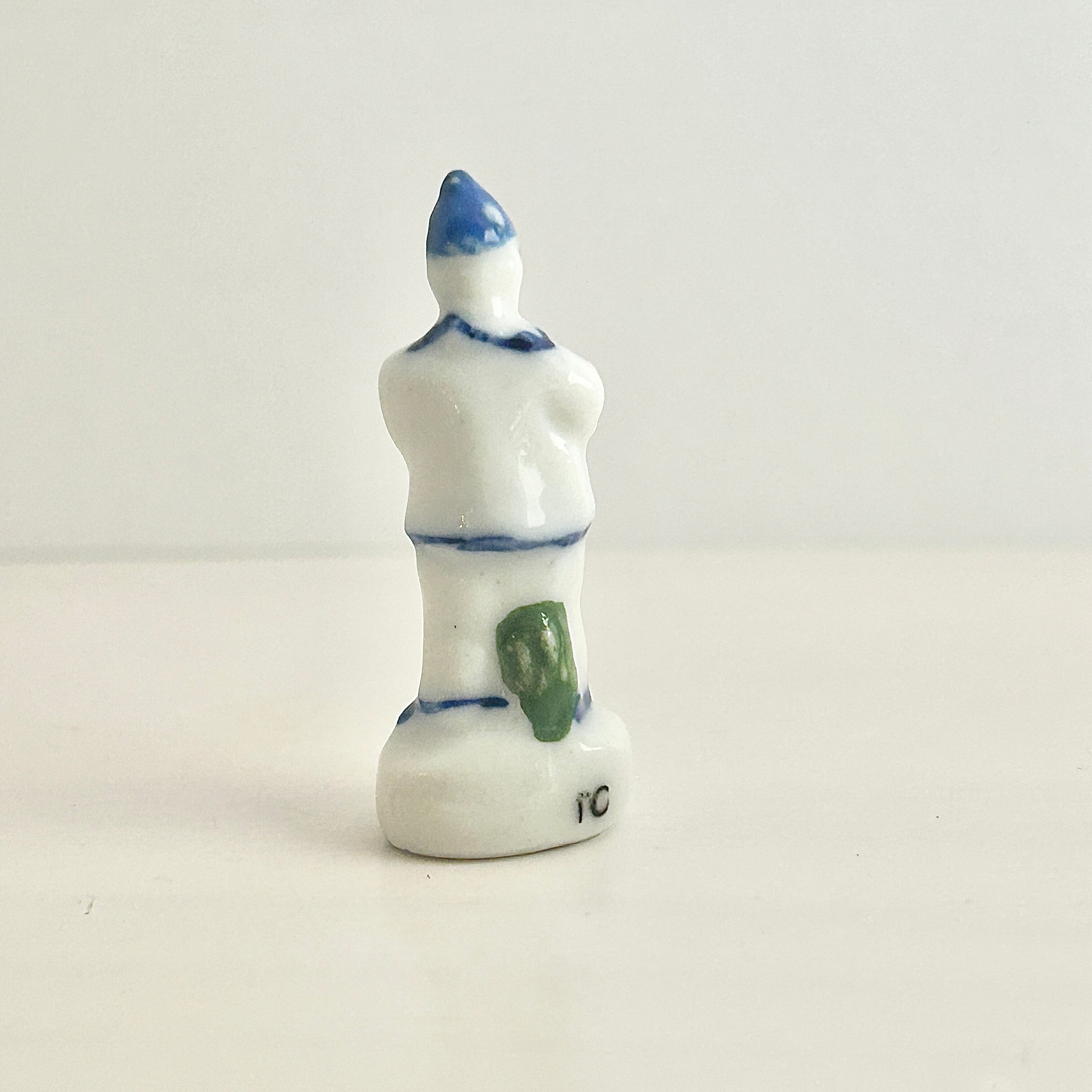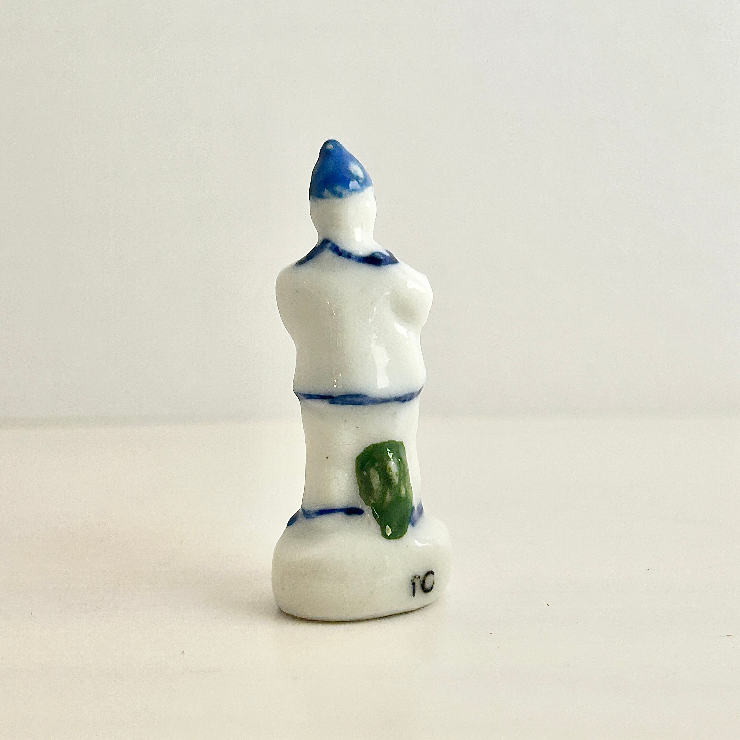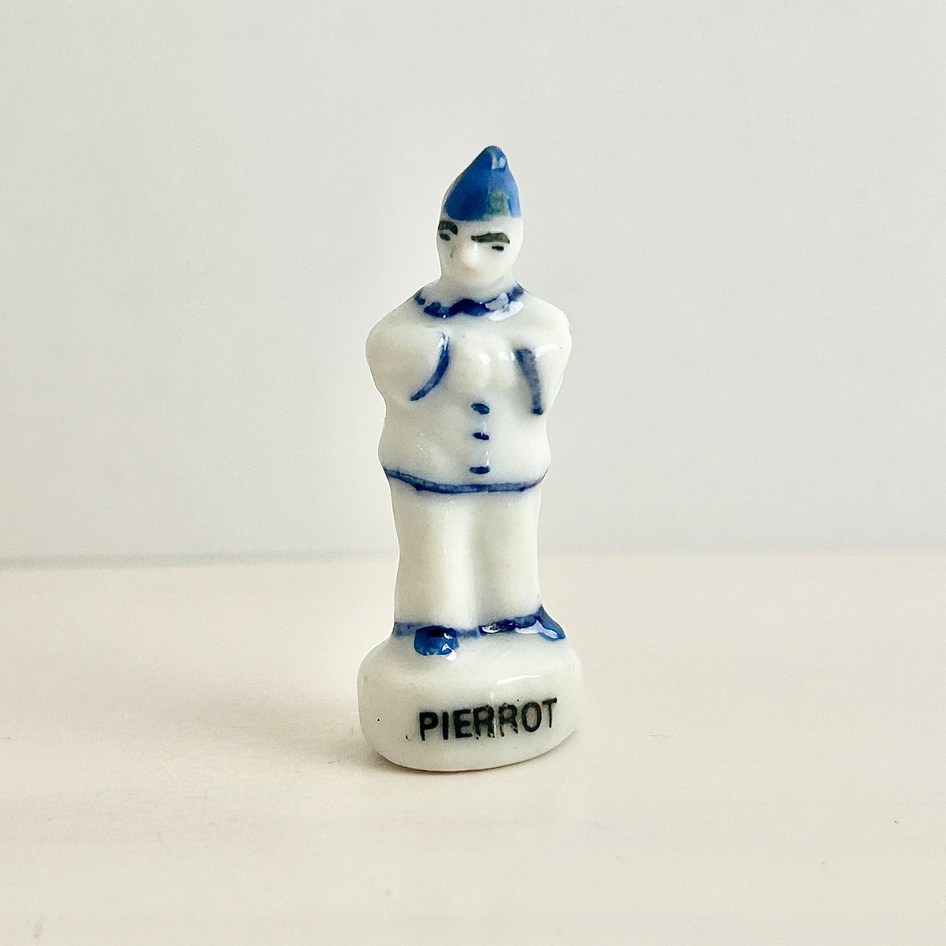 ヴィンテージ 青と白のピエロのフェーヴ フェーブ フランス製 ミニチュア 陶器 雑貨 置物