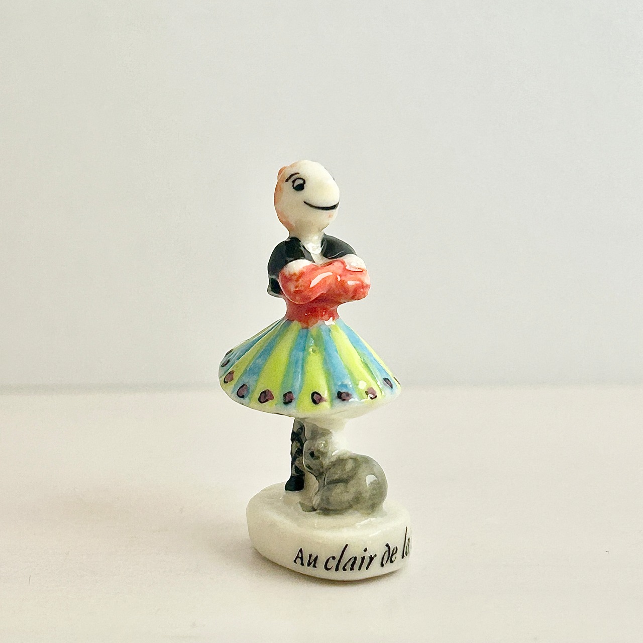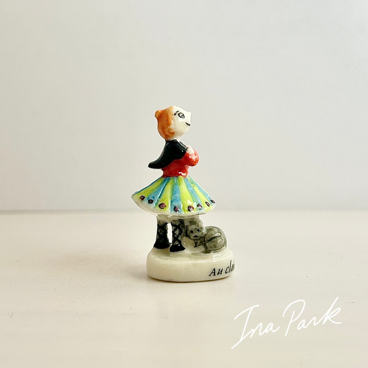 猫とコロンビーヌ 月の光の下で… のフェーヴ フェーブ フランス製 ミニチュア 陶器 雑貨 置物