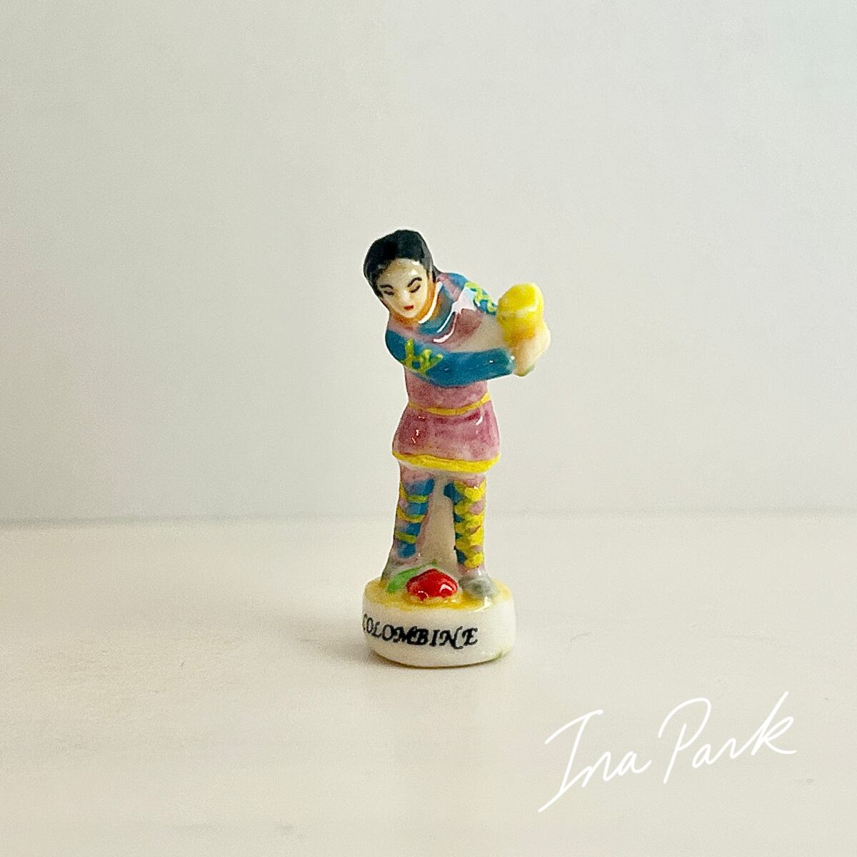 花を落とすコロンビーヌ 月の光の下で… のフェーヴ フェーブ フランス製 ミニチュア 陶器 雑貨 置物