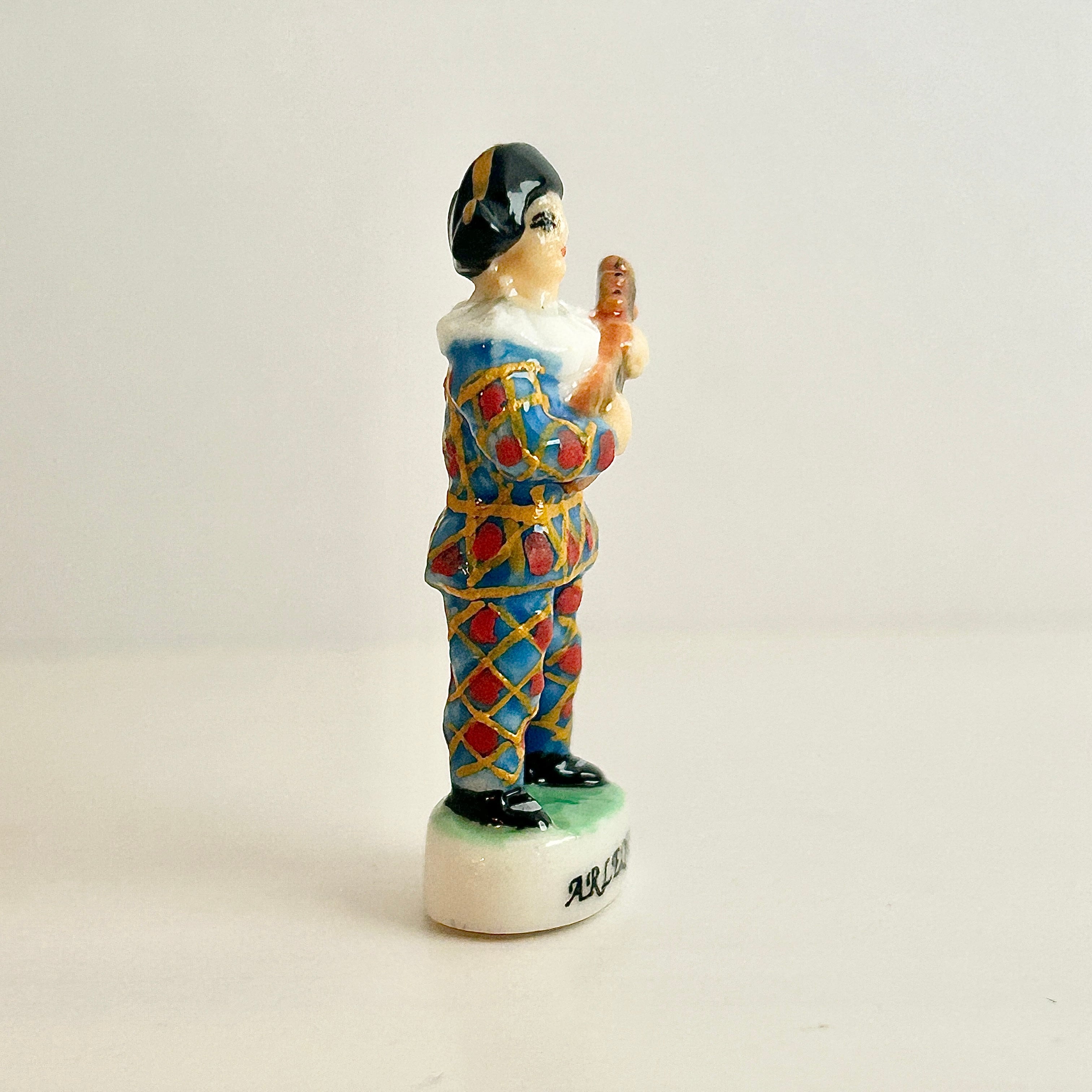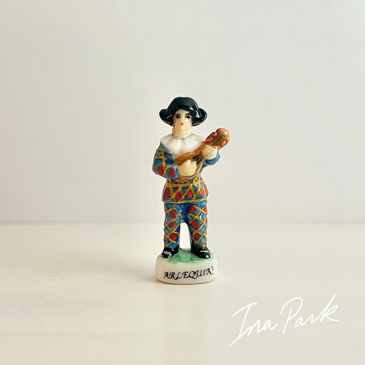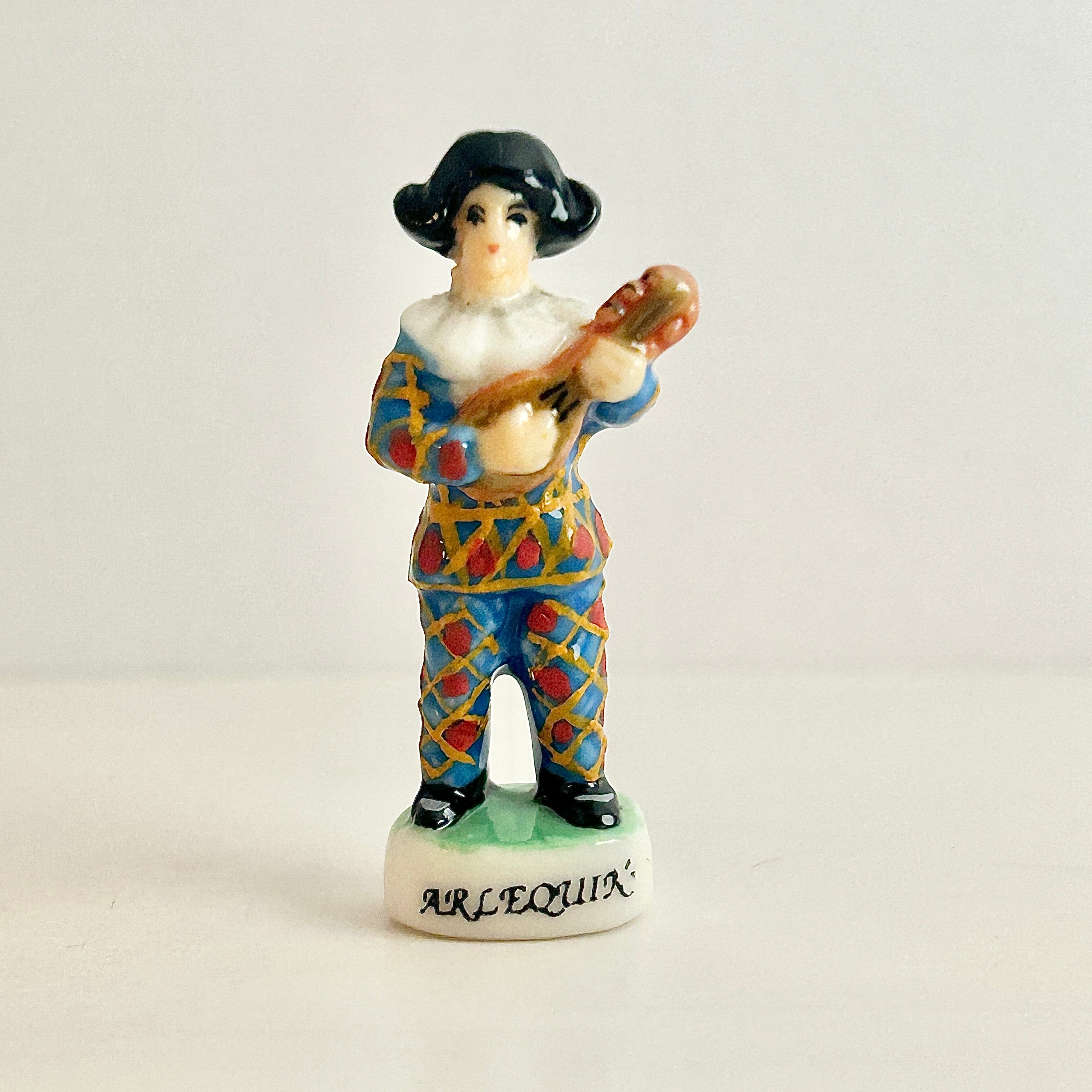 リュートを奏でるアルルカン 月の光の下で… のフェーヴ フェーブ フランス製 ミニチュア 陶器 雑貨 置物