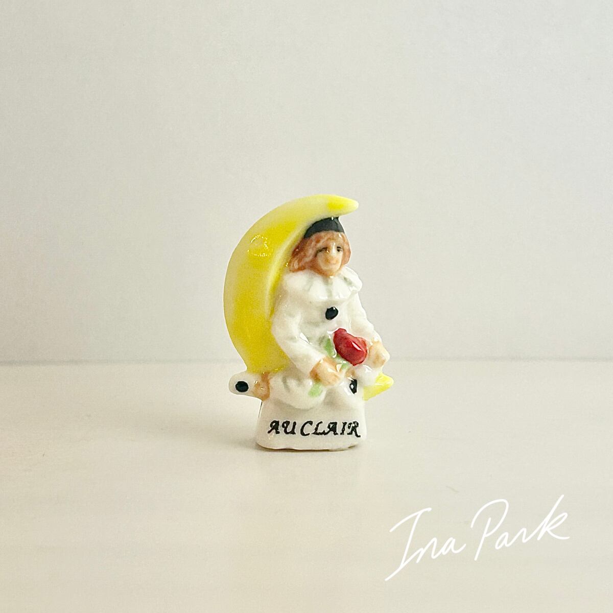 バラを持つピエロ 月の光の下で… のフェーヴ フェーブ フランス製 ミニチュア 陶器 雑貨 置物