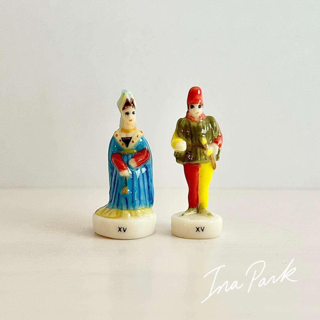 フランスの15世紀の服装 フェーヴ2点セット ドレス フェーブ フランス製 ミニチュア 陶器 雑貨 置物