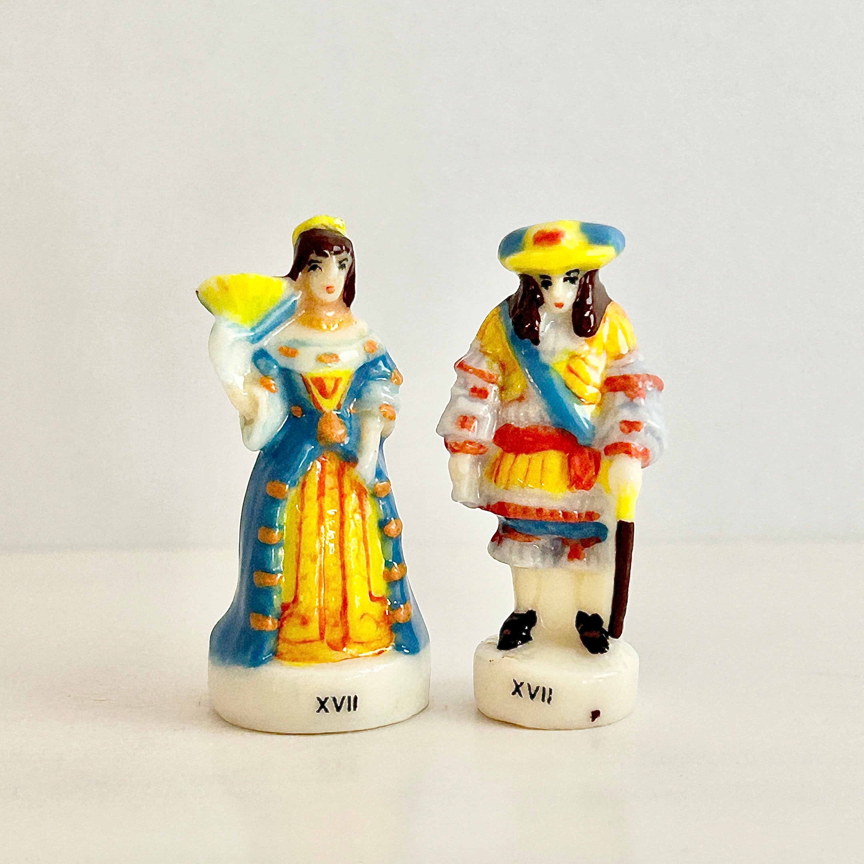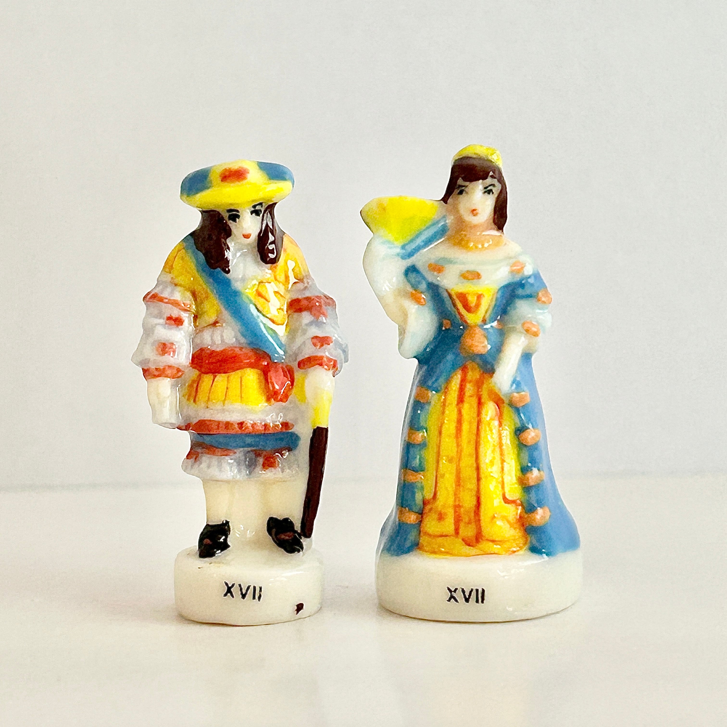 フランスの17世紀の服装 フェーヴ2点セット ドレス フェーブ フランス製 ミニチュア 陶器 雑貨 置物