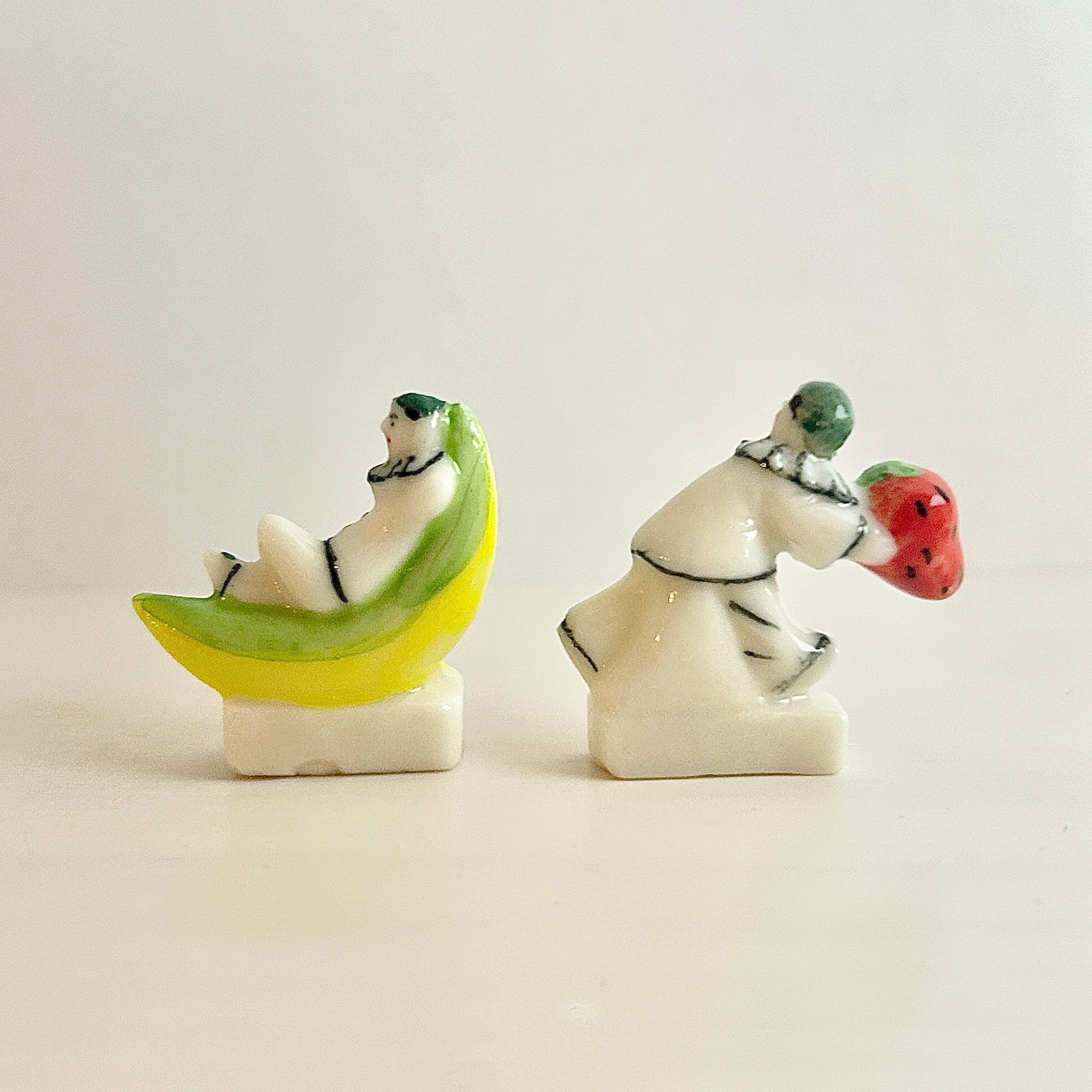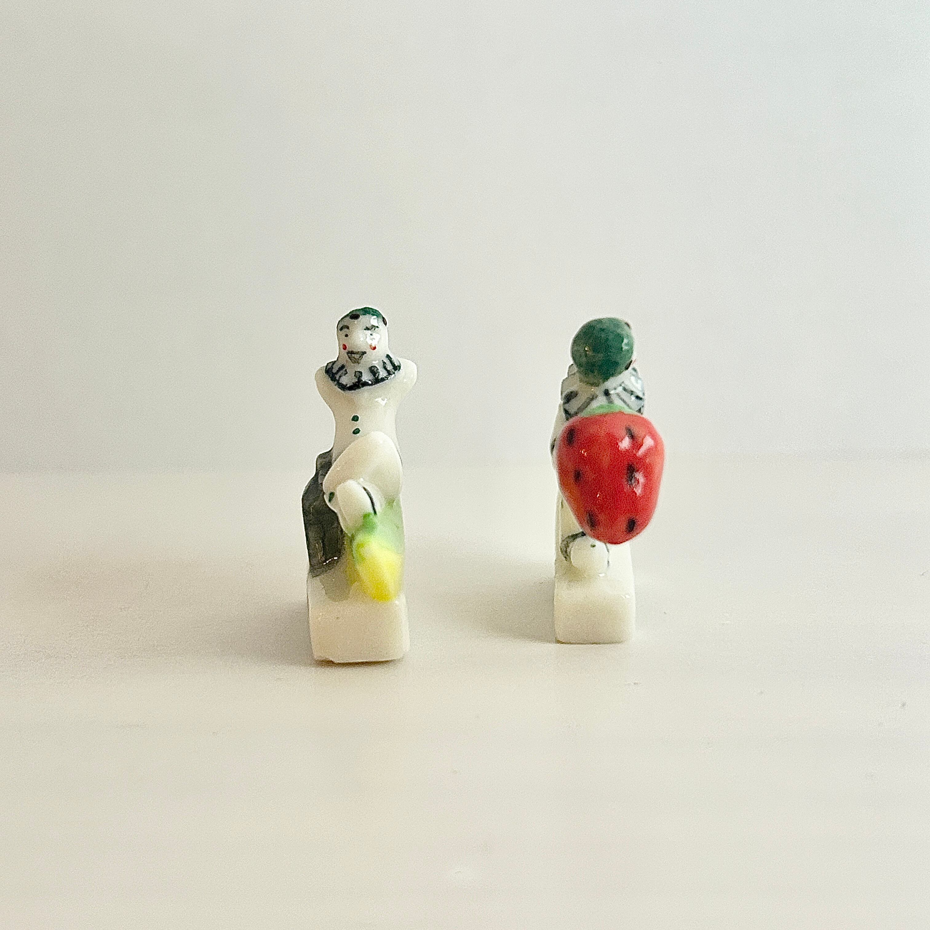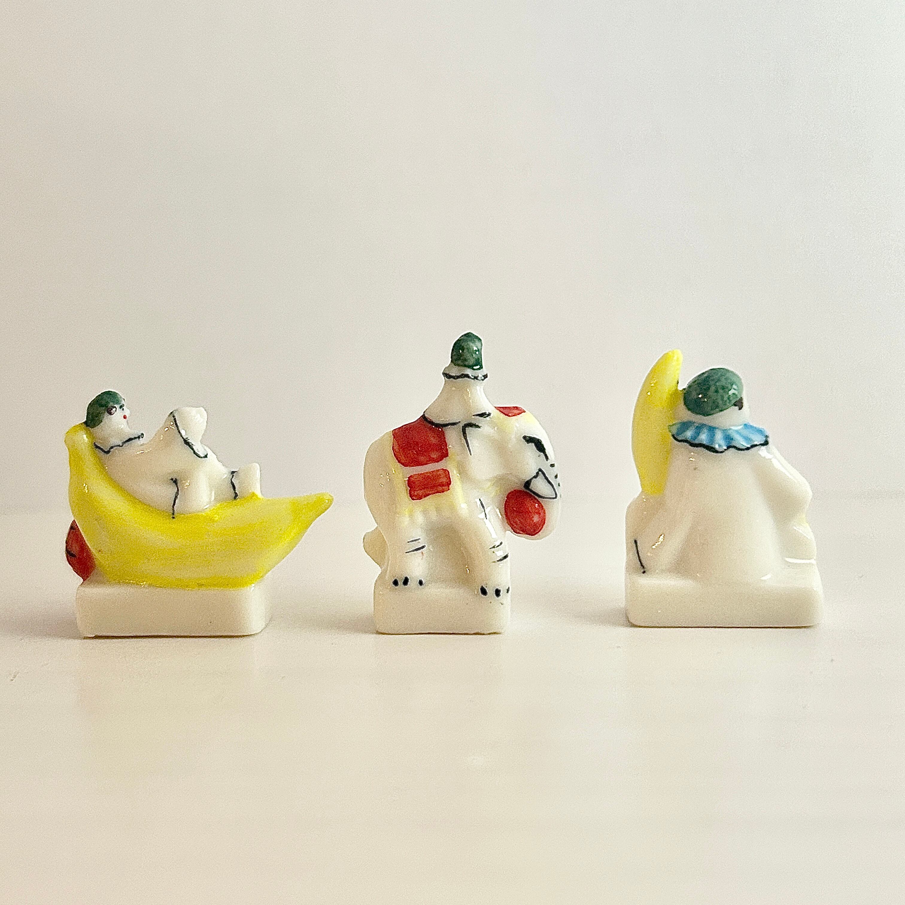 こちらのフェーブには月に乗るピエロ、バナナボートと赤いボンボン、象に乗るピエロなど