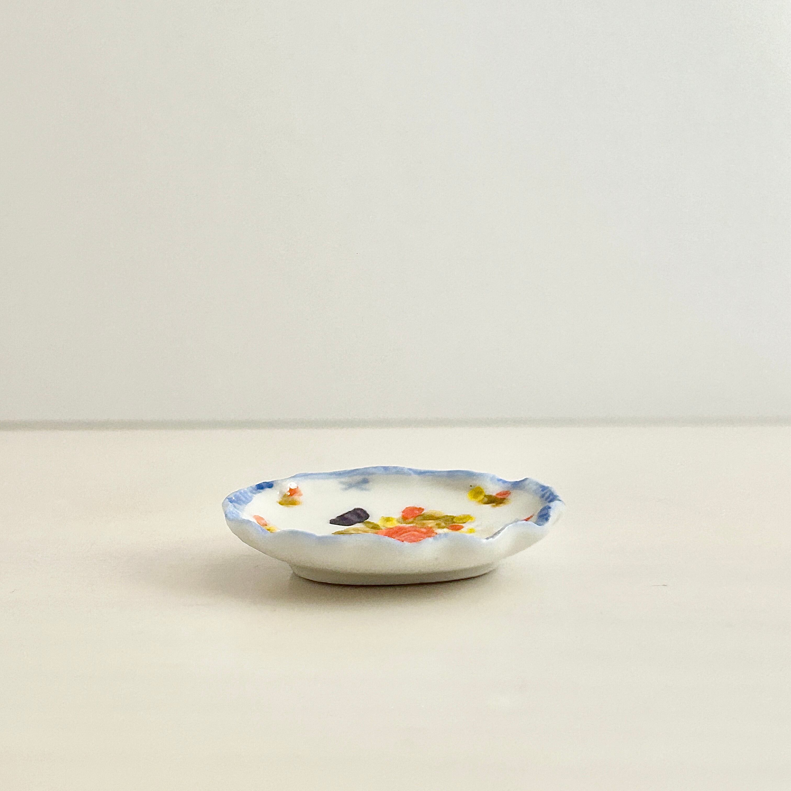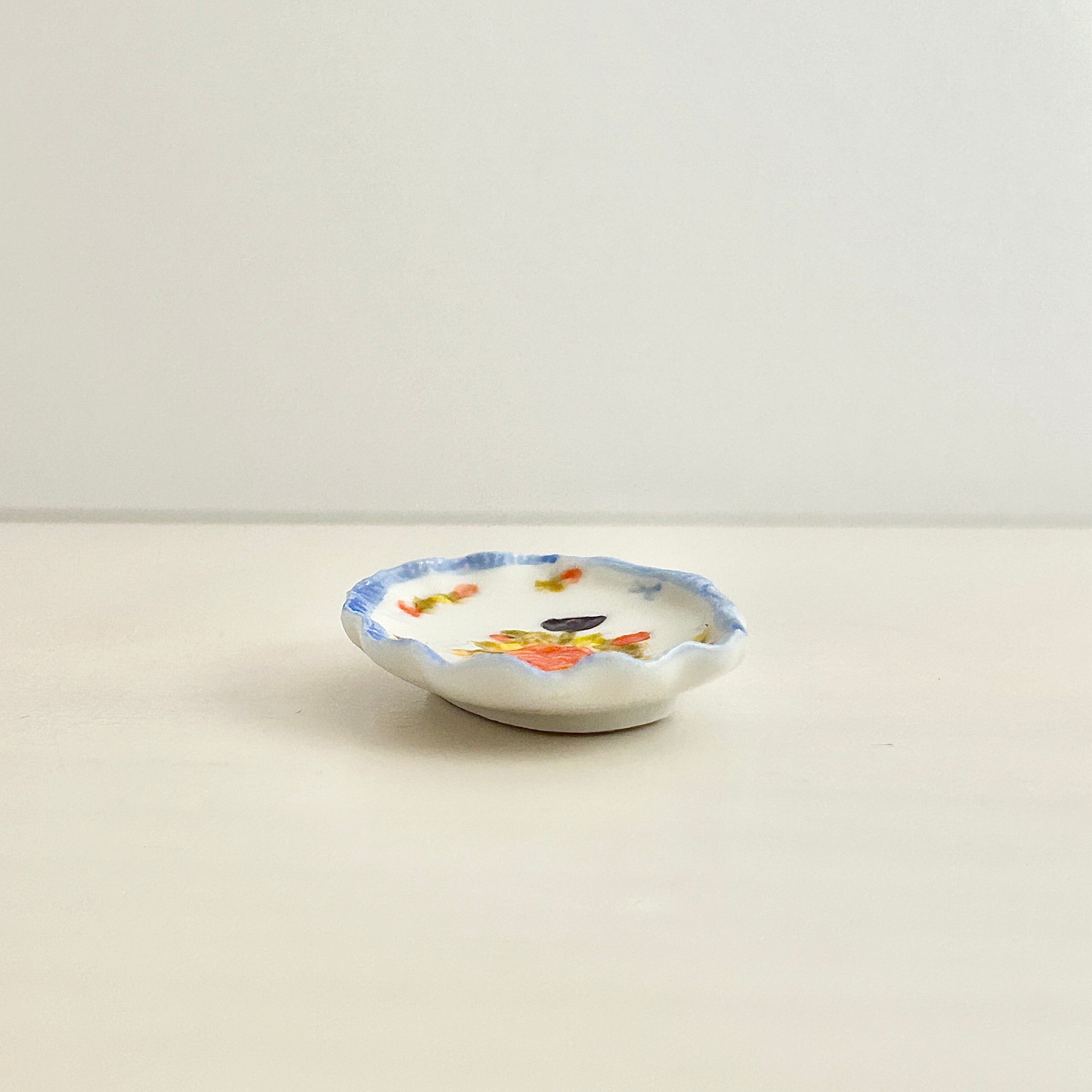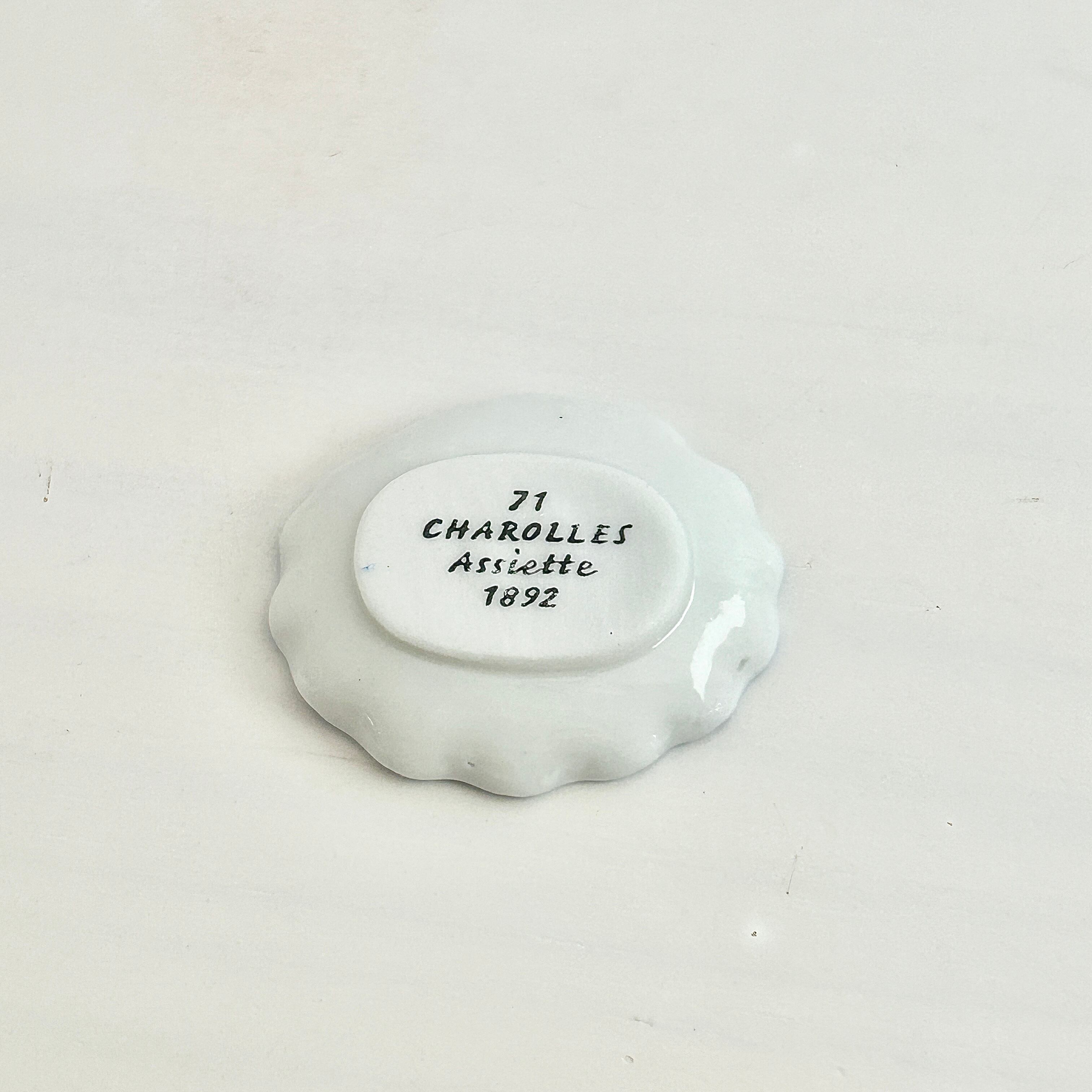 19世紀のシャロル窯の絵皿 バーガンディの高品質な陶磁器のフェーヴ フェーブ フランス製 ミニチュア 陶器 雑貨 置物