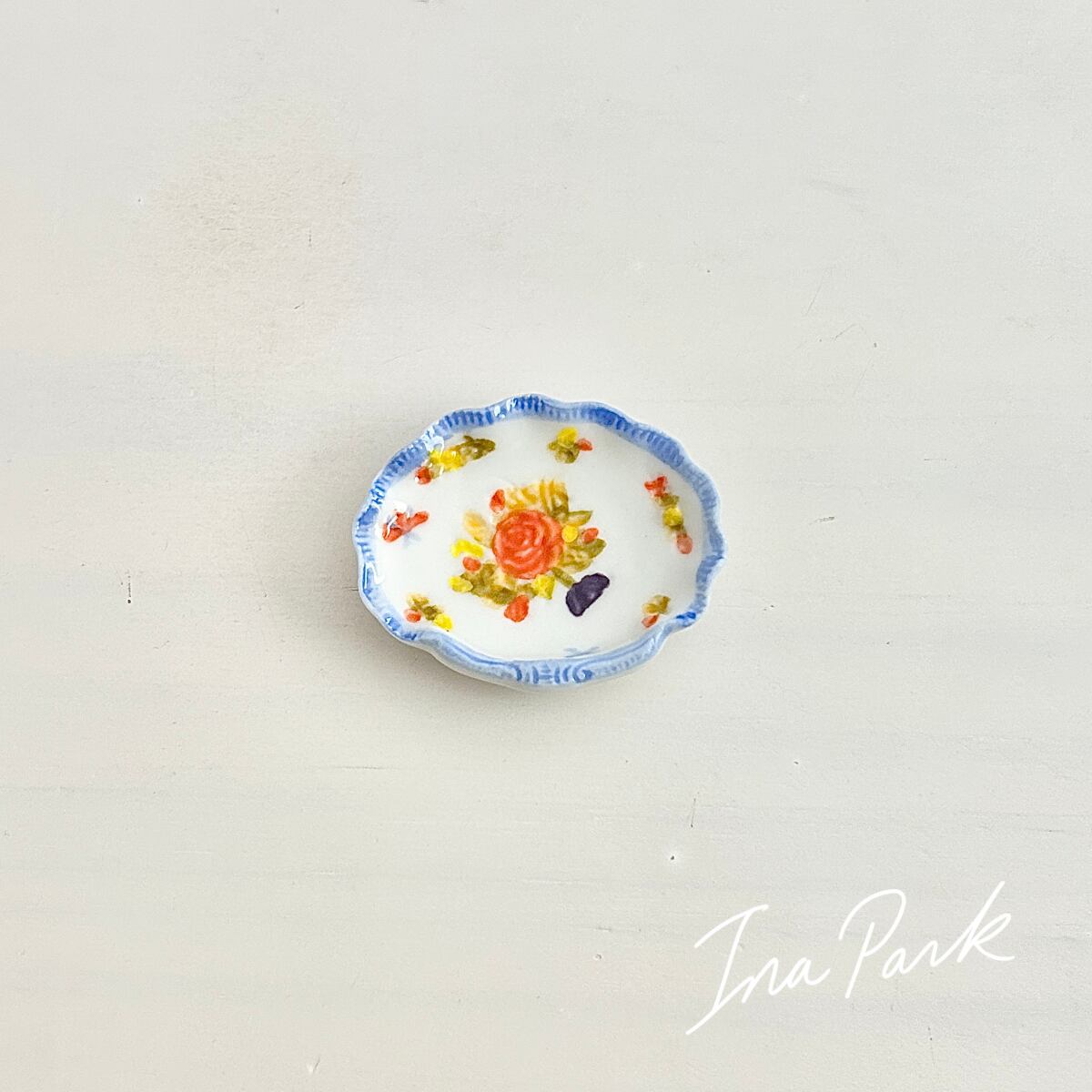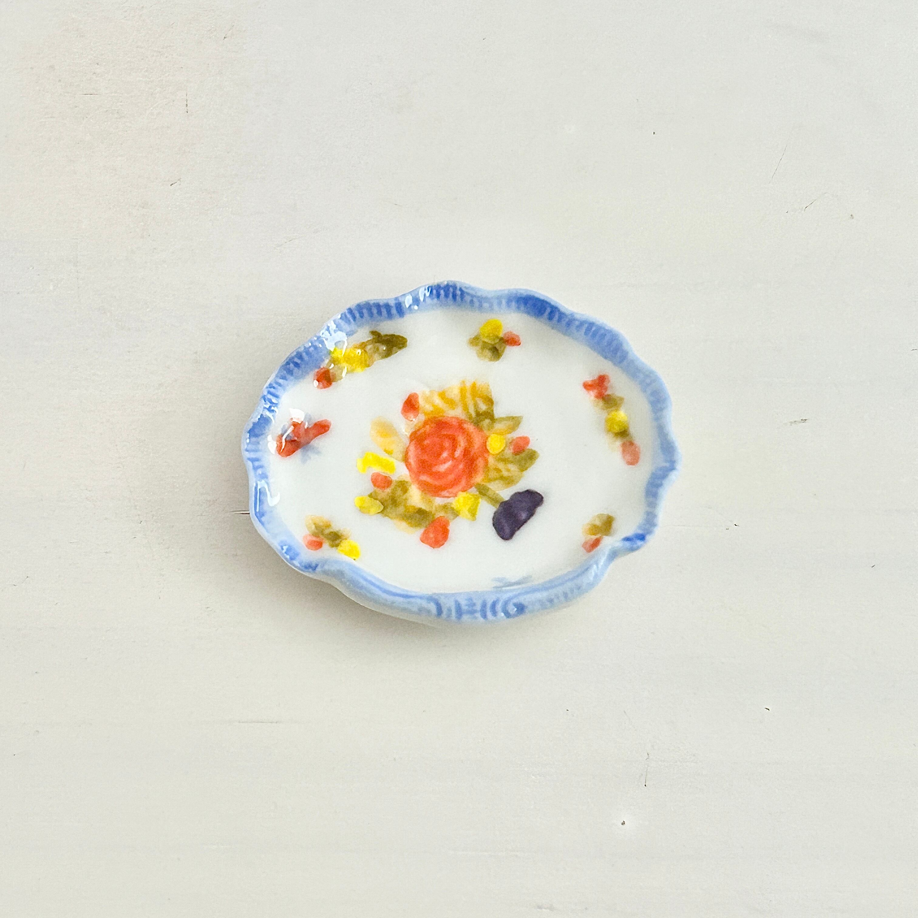 柔らかな花文様を持ち、シャロル窯らしい、温かい花の手描き装飾が美しい平皿。
