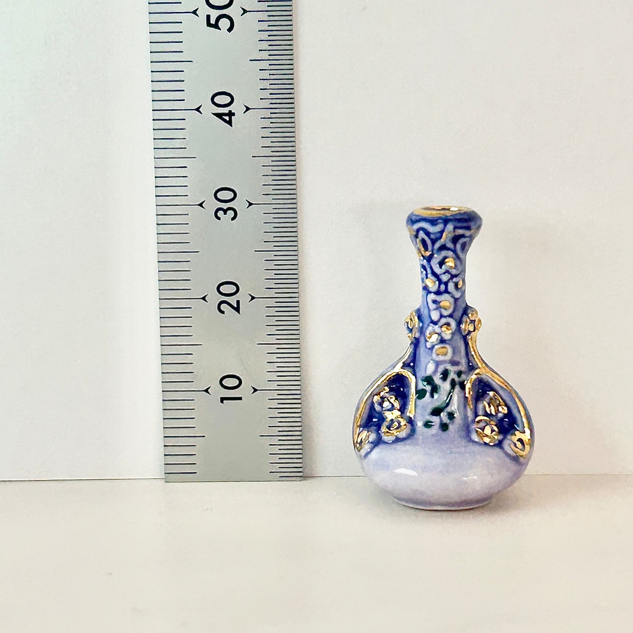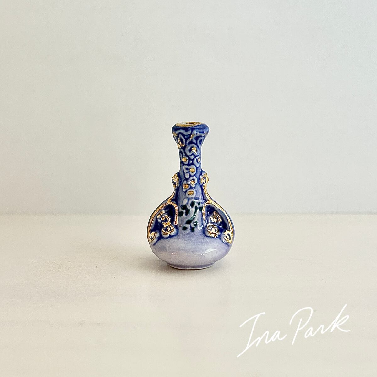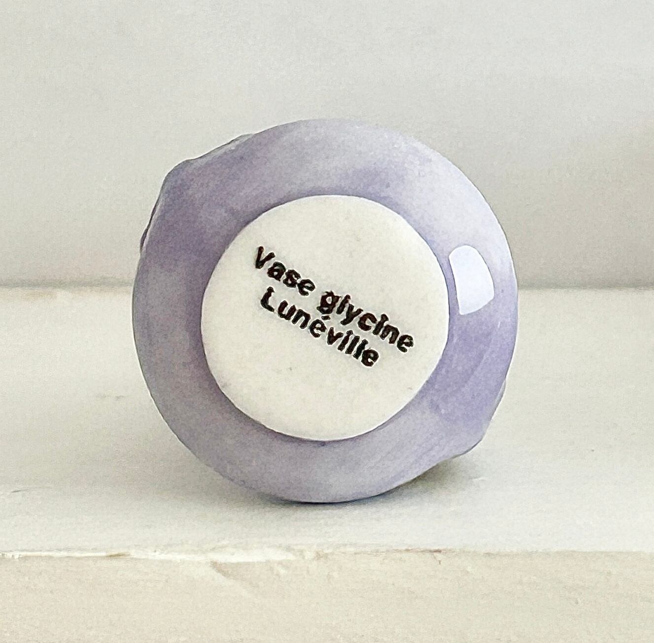 淡いライラック色に藤の花が装飾されたリュネヴィル窯の花瓶を再現したフェーブ。