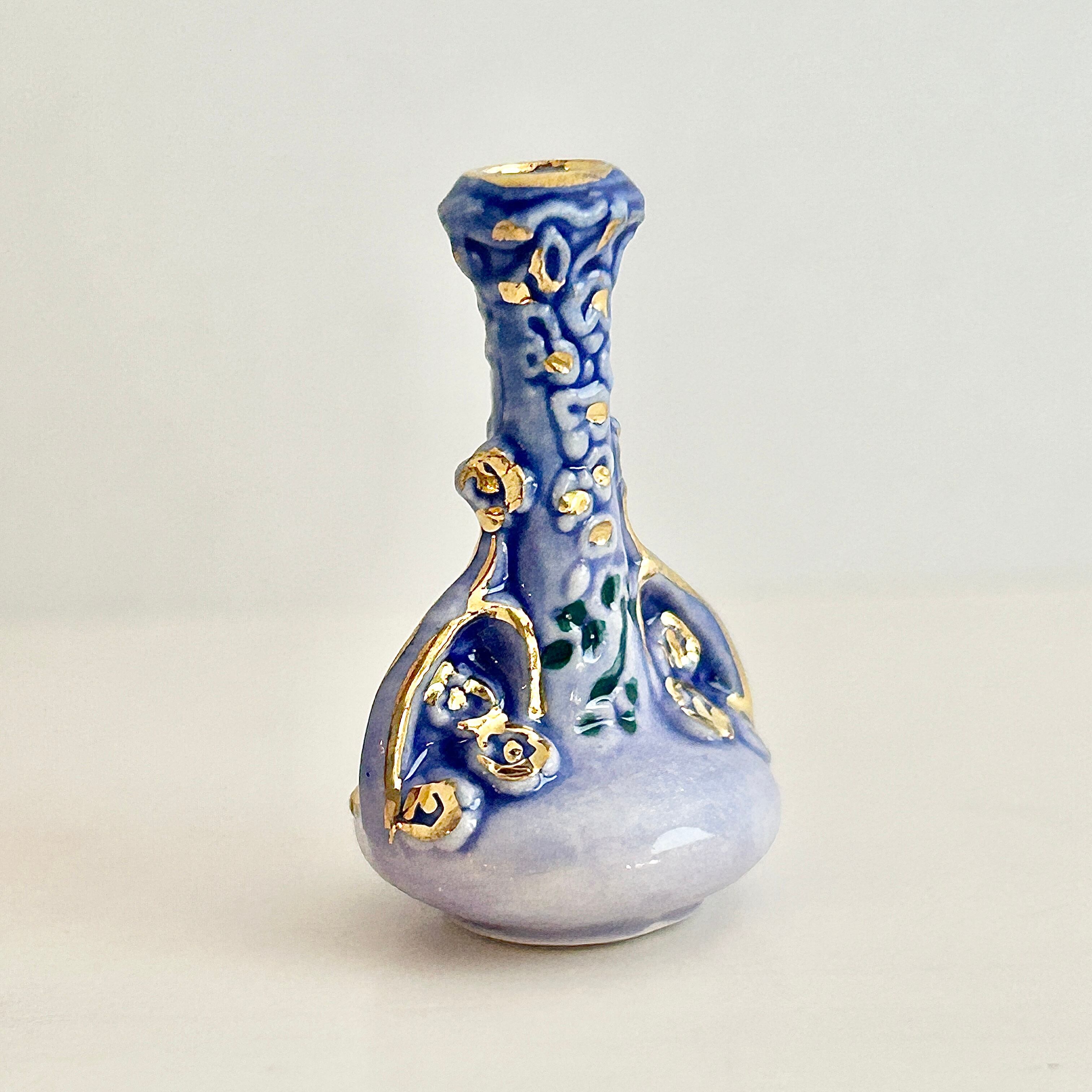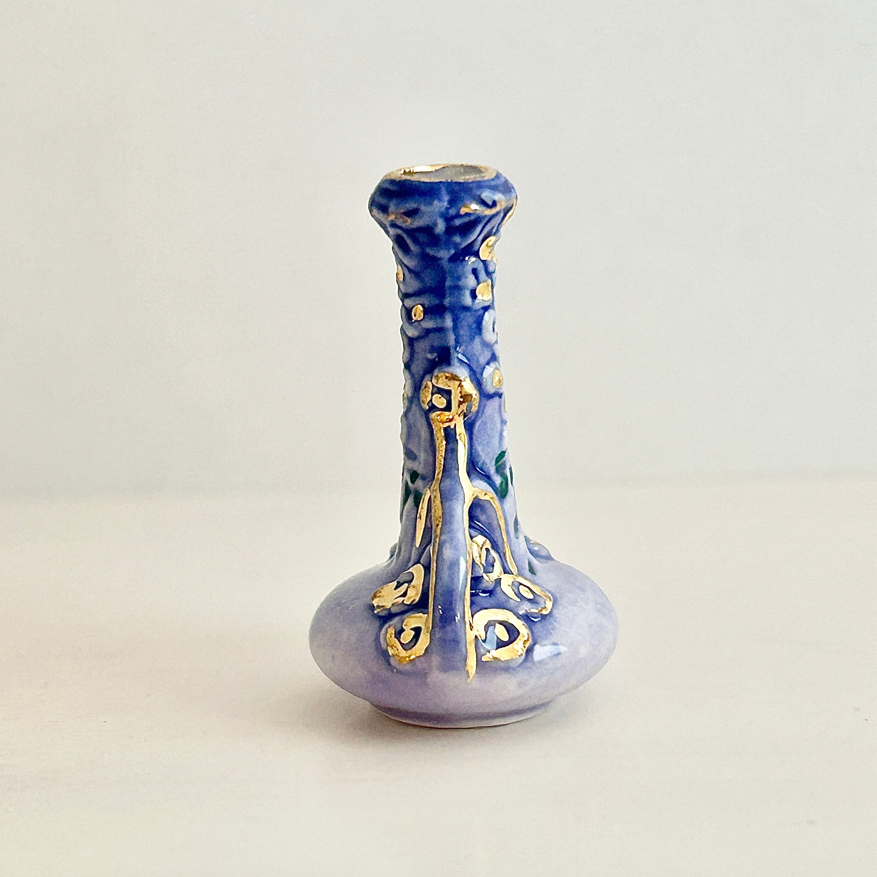 藤の花の花瓶 リュネヴィルの陶磁器 フェーヴ フェーブ フランス製 ミニチュア 陶器 雑貨 置物