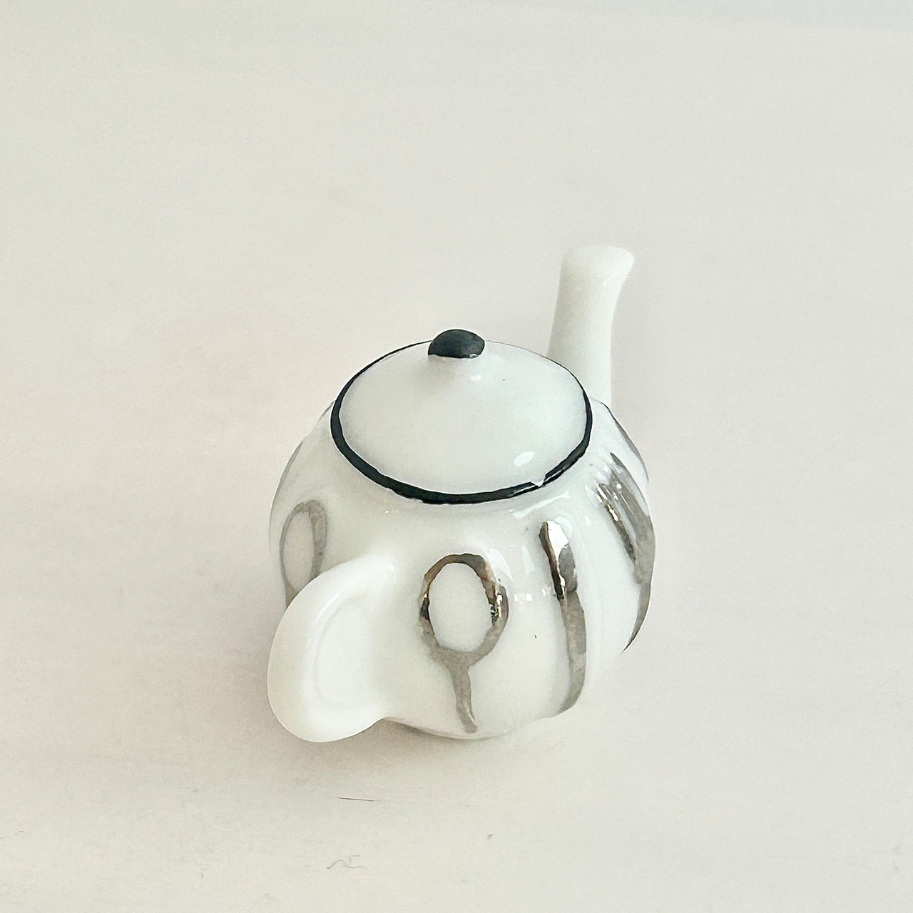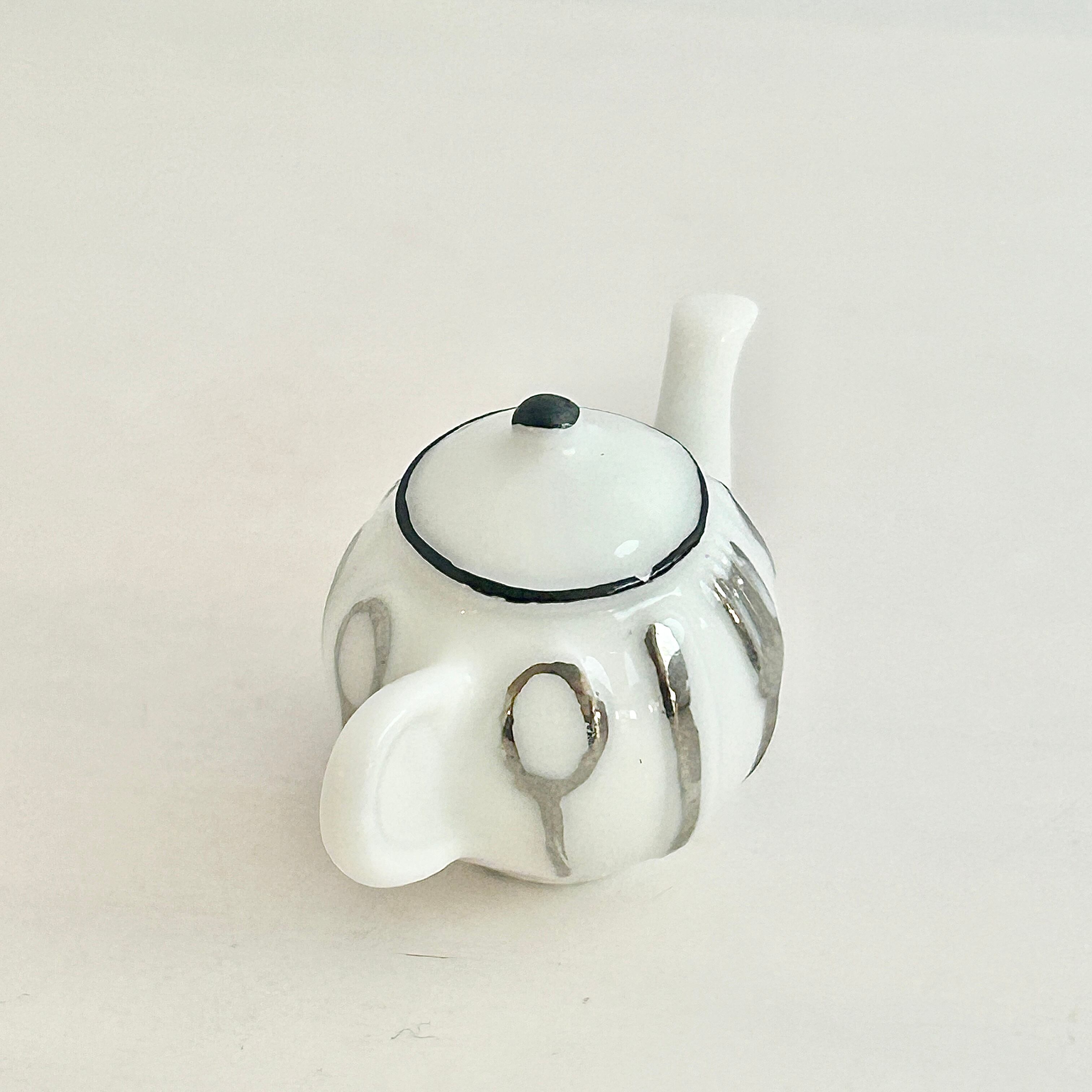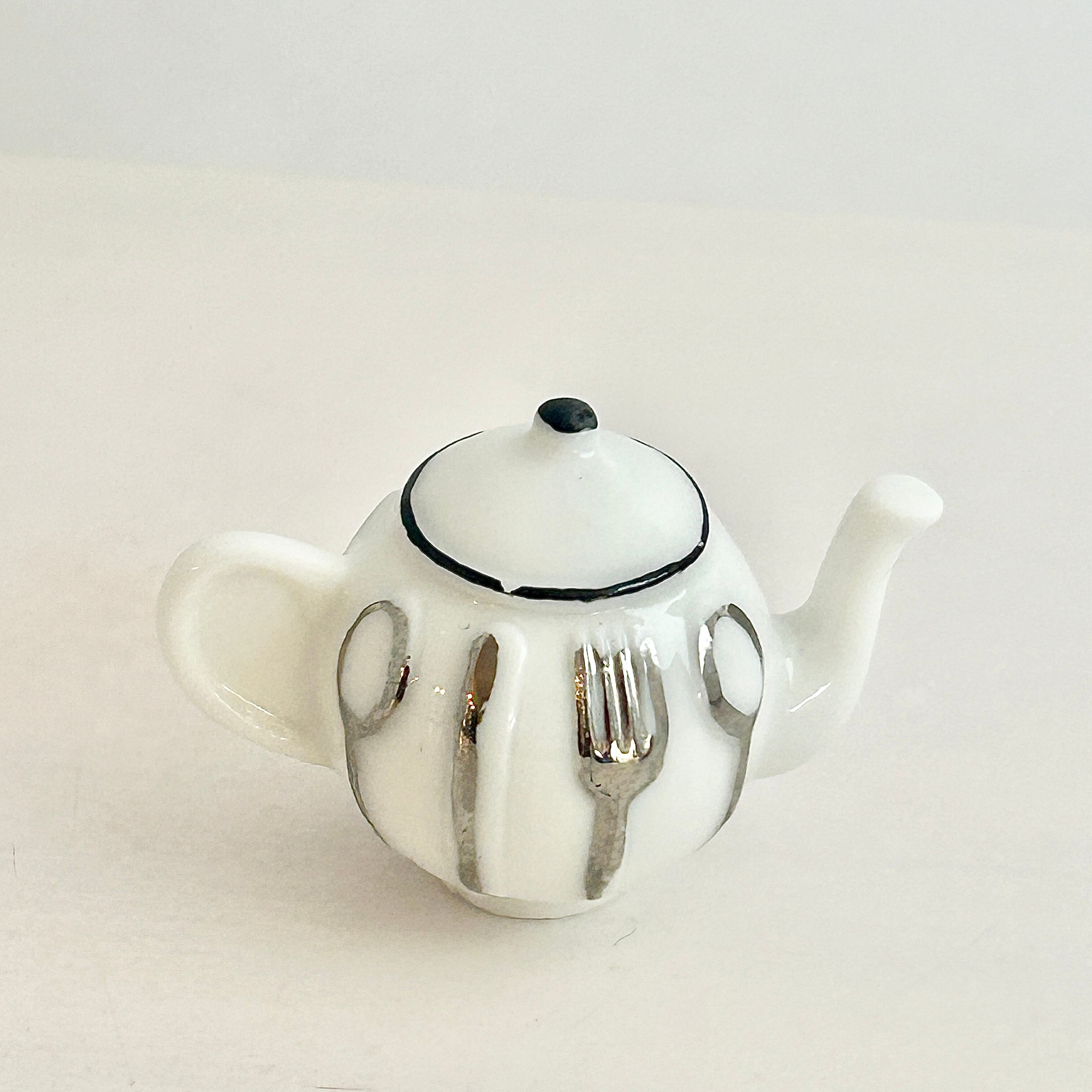 現代イギリス カトラリーのあしらわれたティーポットのフェーヴ フェーブ フランス製 ミニチュア 陶器 雑貨 置物