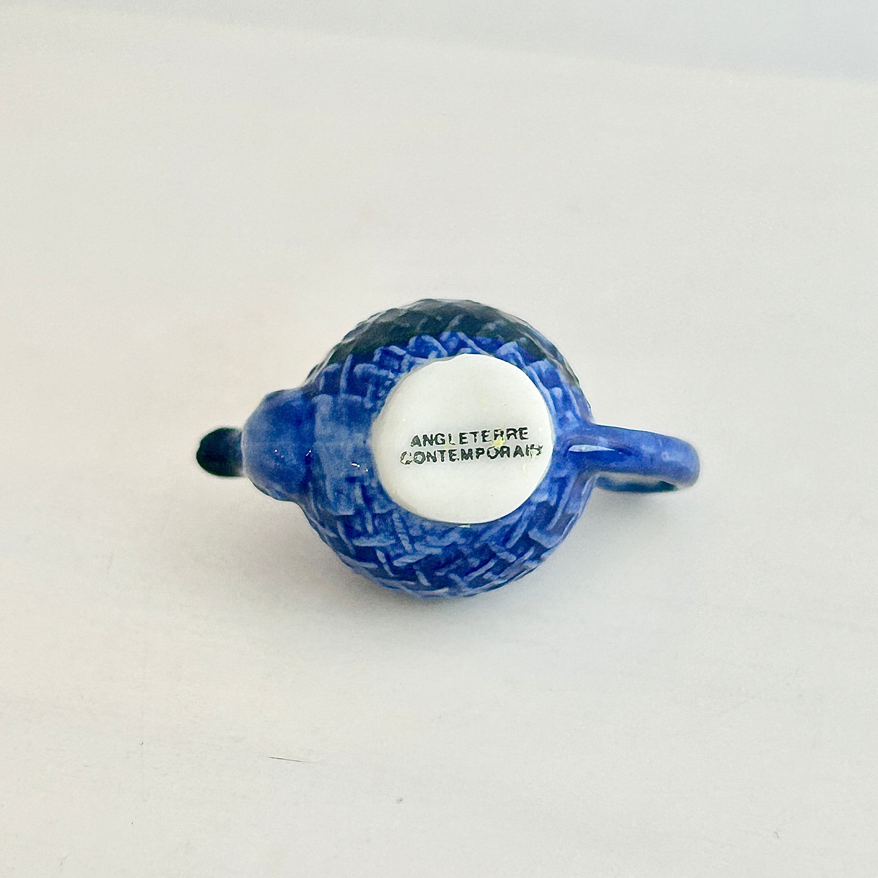 濃い青の釉薬が特徴の英国現代陶器。紅茶文化の国らしい、深みのある青とよく見たら凝った作り。