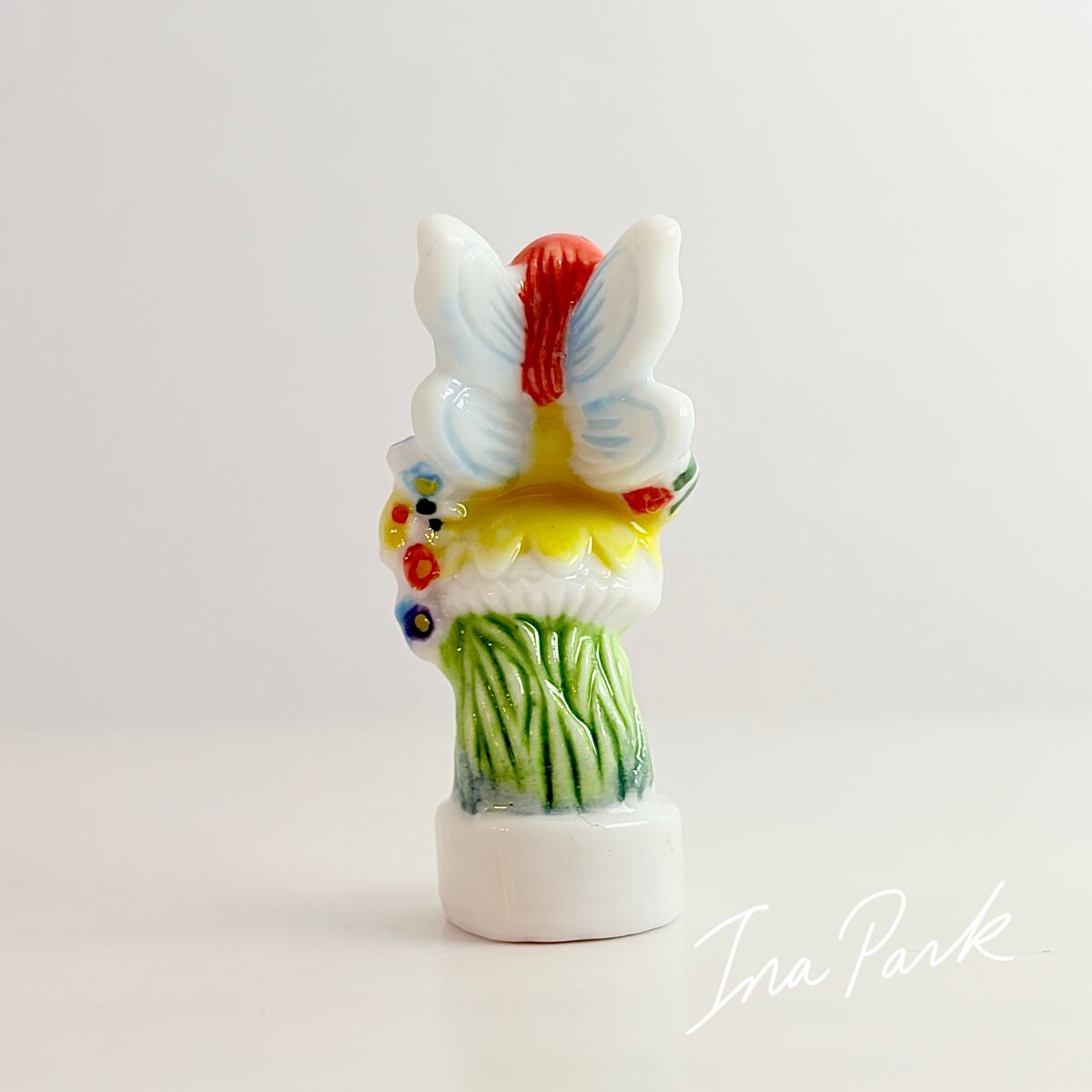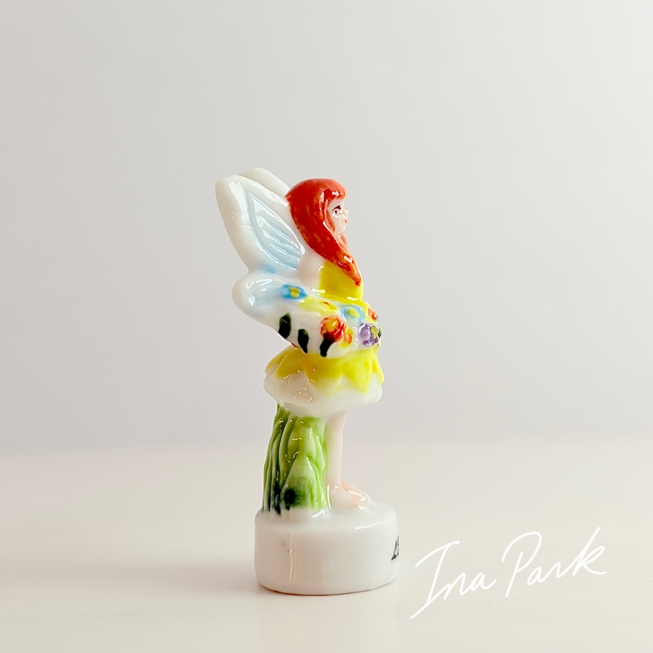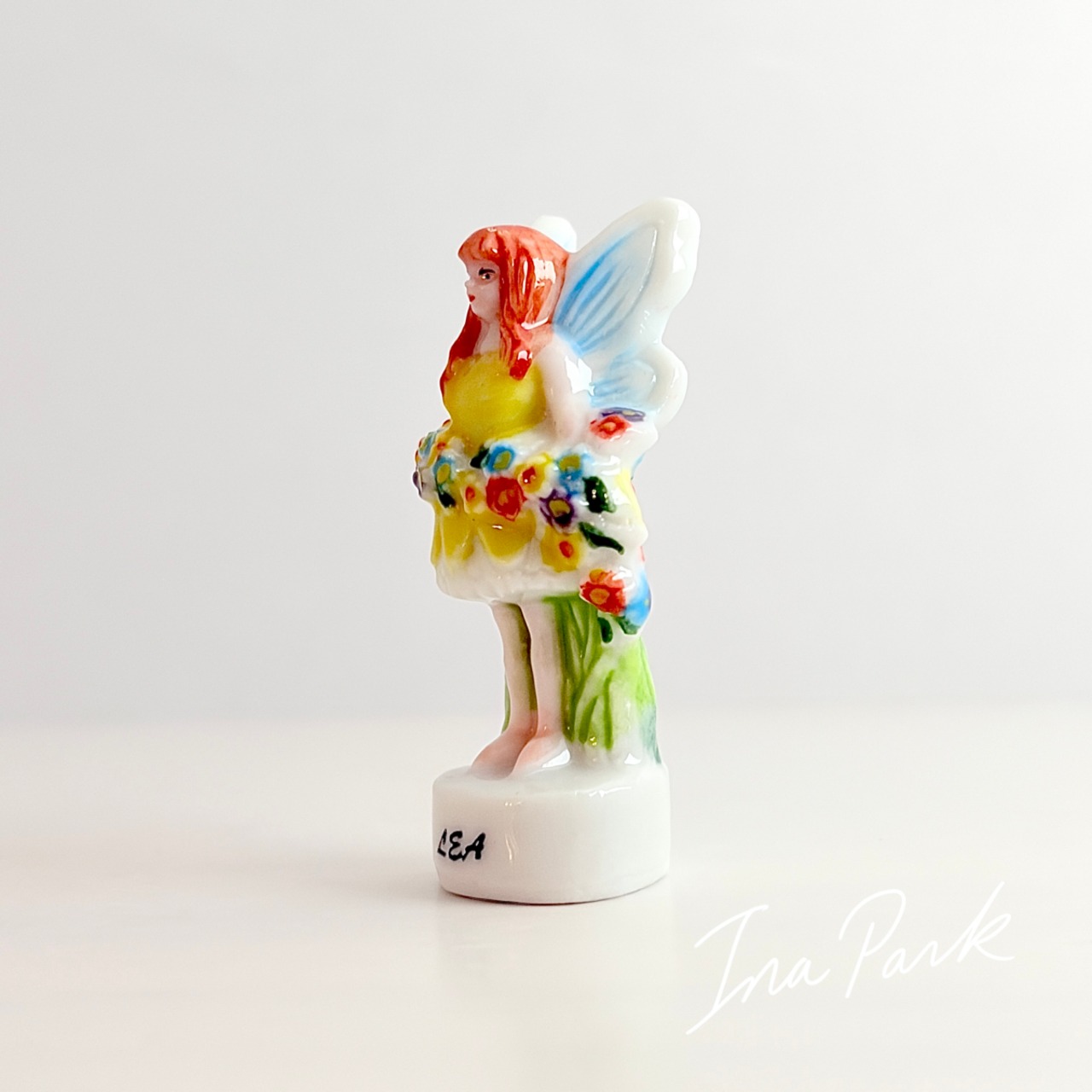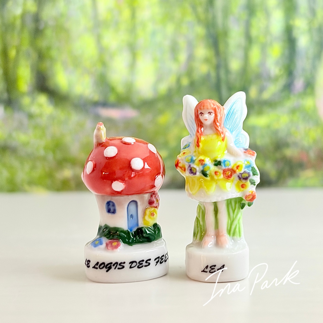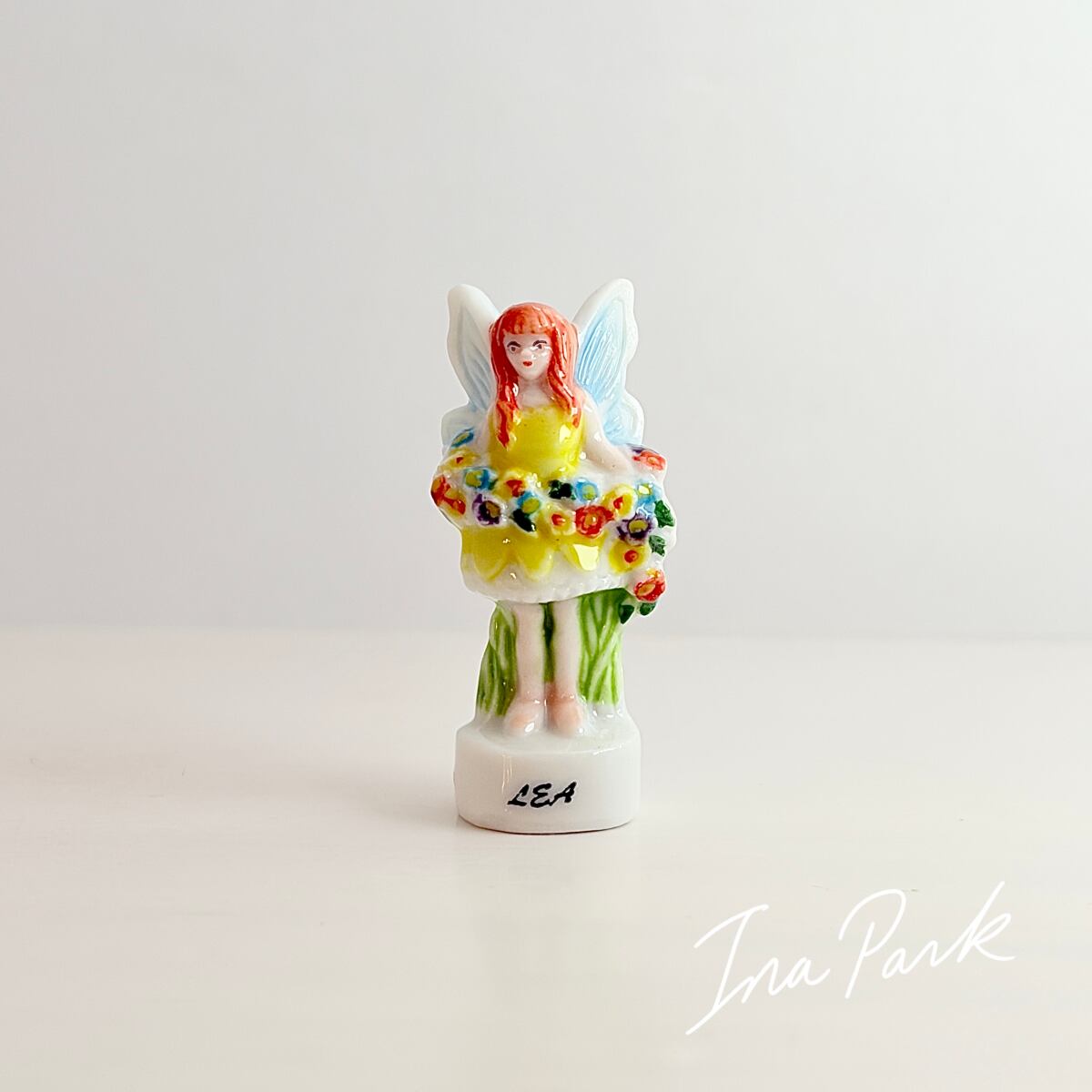 花かざりを持つ妖精のフェーヴ フェーブ フランス製 ミニチュア 陶器 雑貨 置物