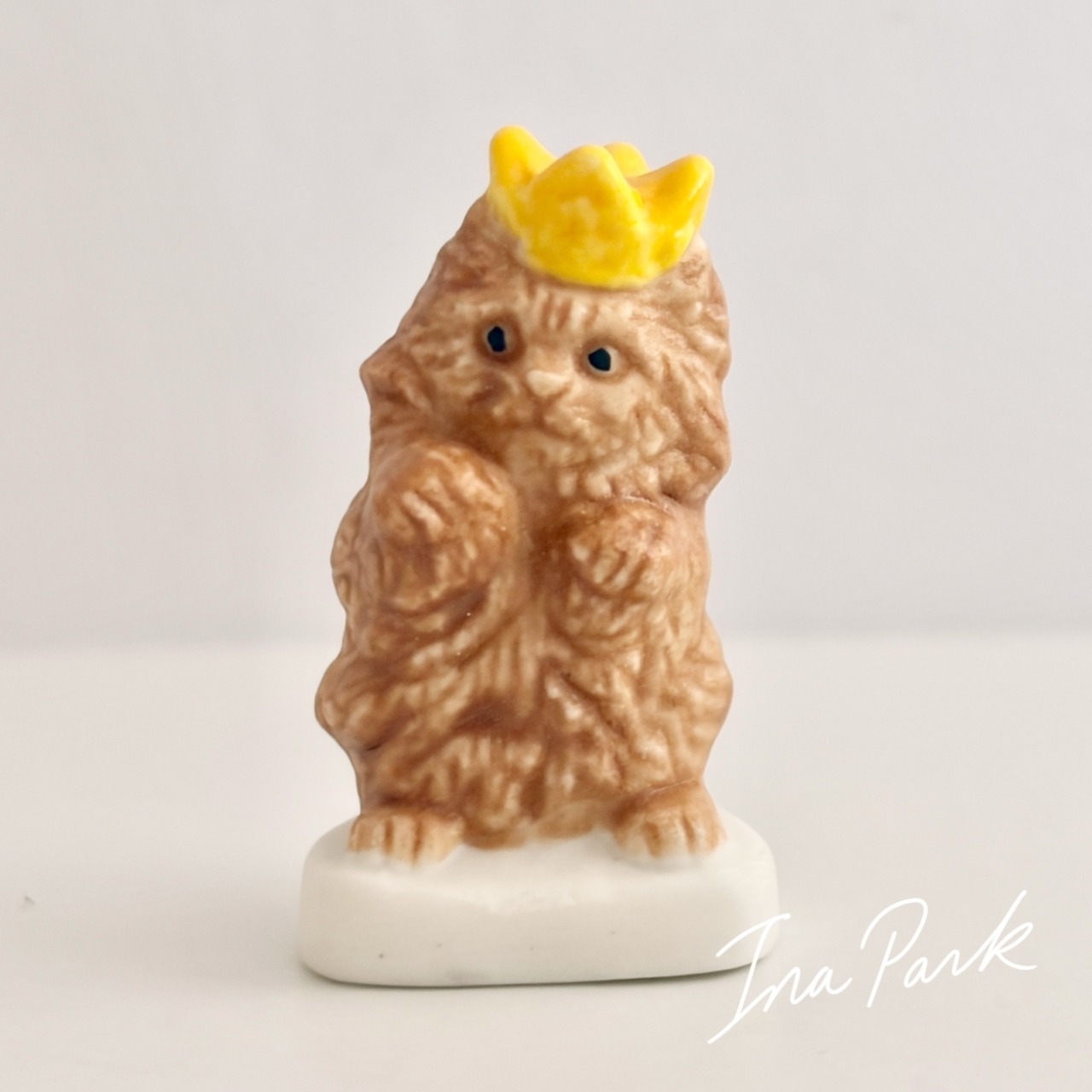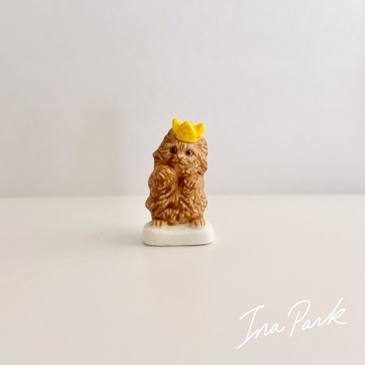 王冠をかぶった猫 ねこ のフェーヴ フェーブ フランス製 ミニチュア 陶器 雑貨 置物