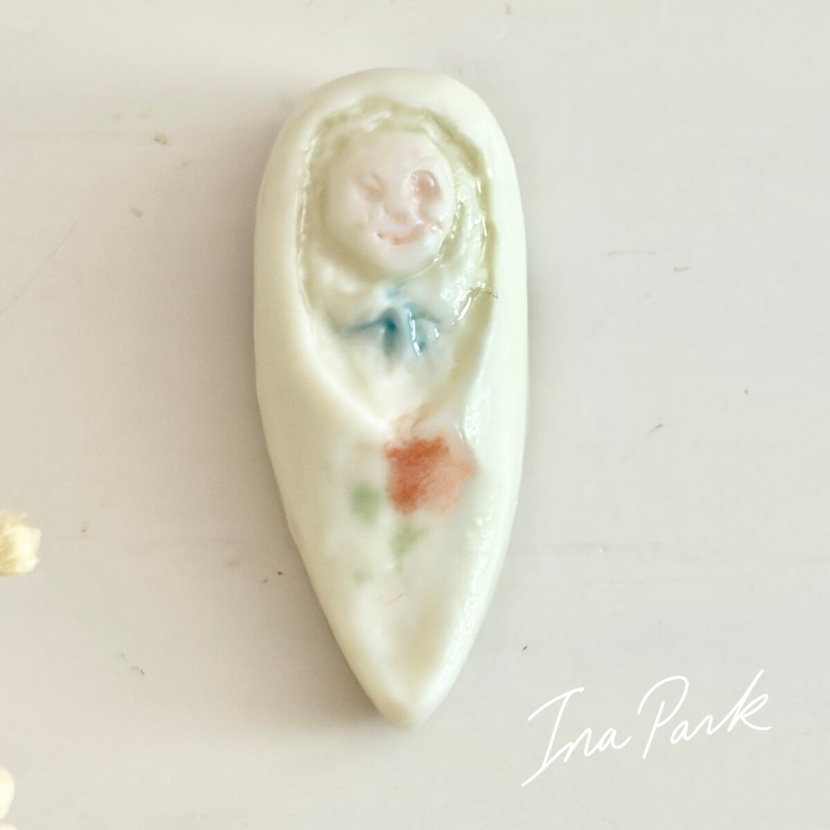 【希少】2003 ミッドガール サボに入った赤ちゃんのフェーヴ Midgard 工房のフェーブ フランス製 ミニチュア 陶器 雑貨 置物