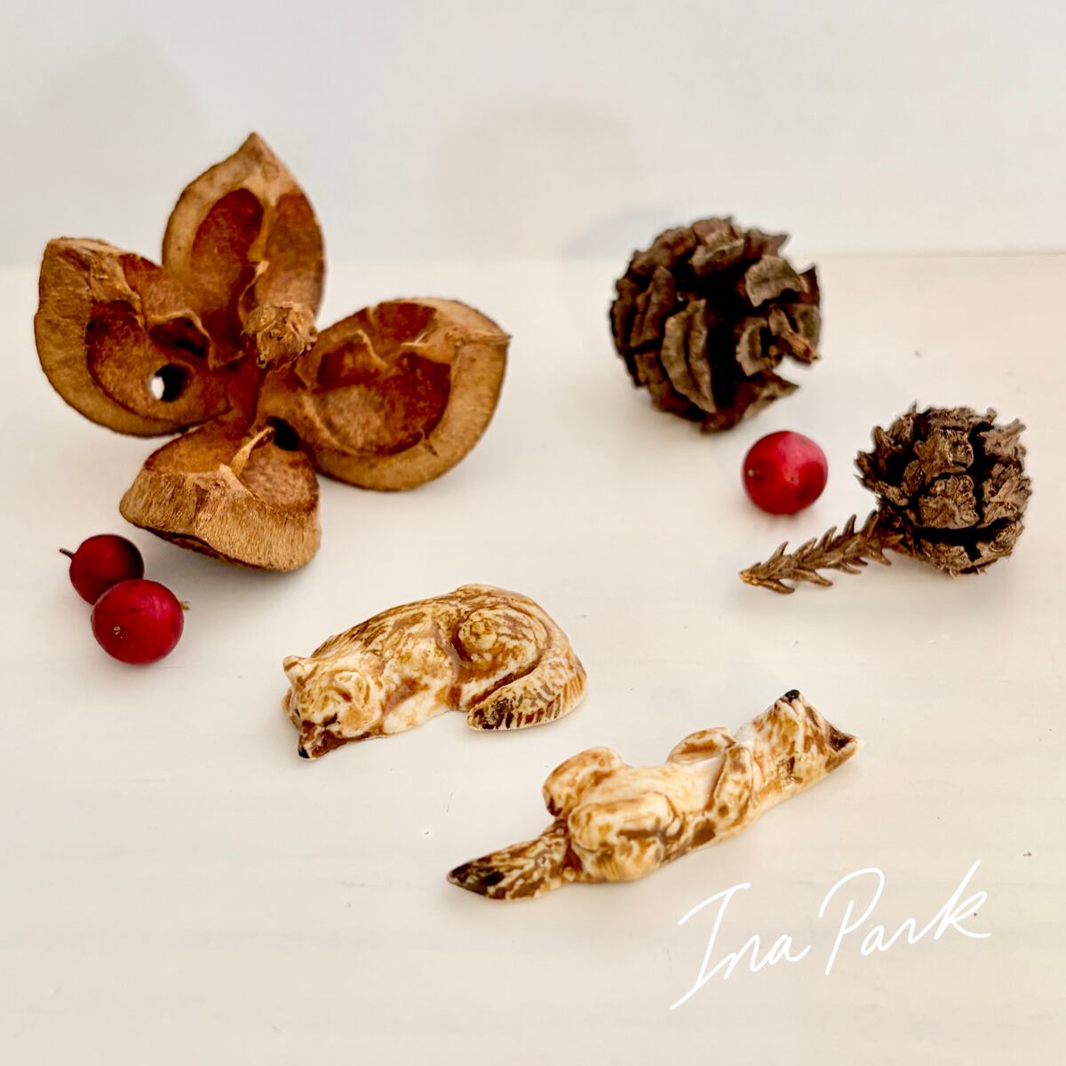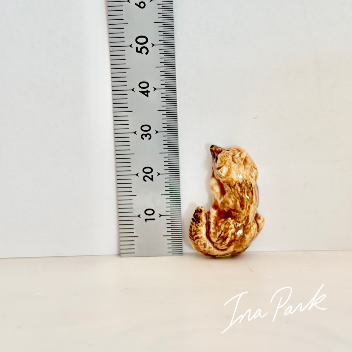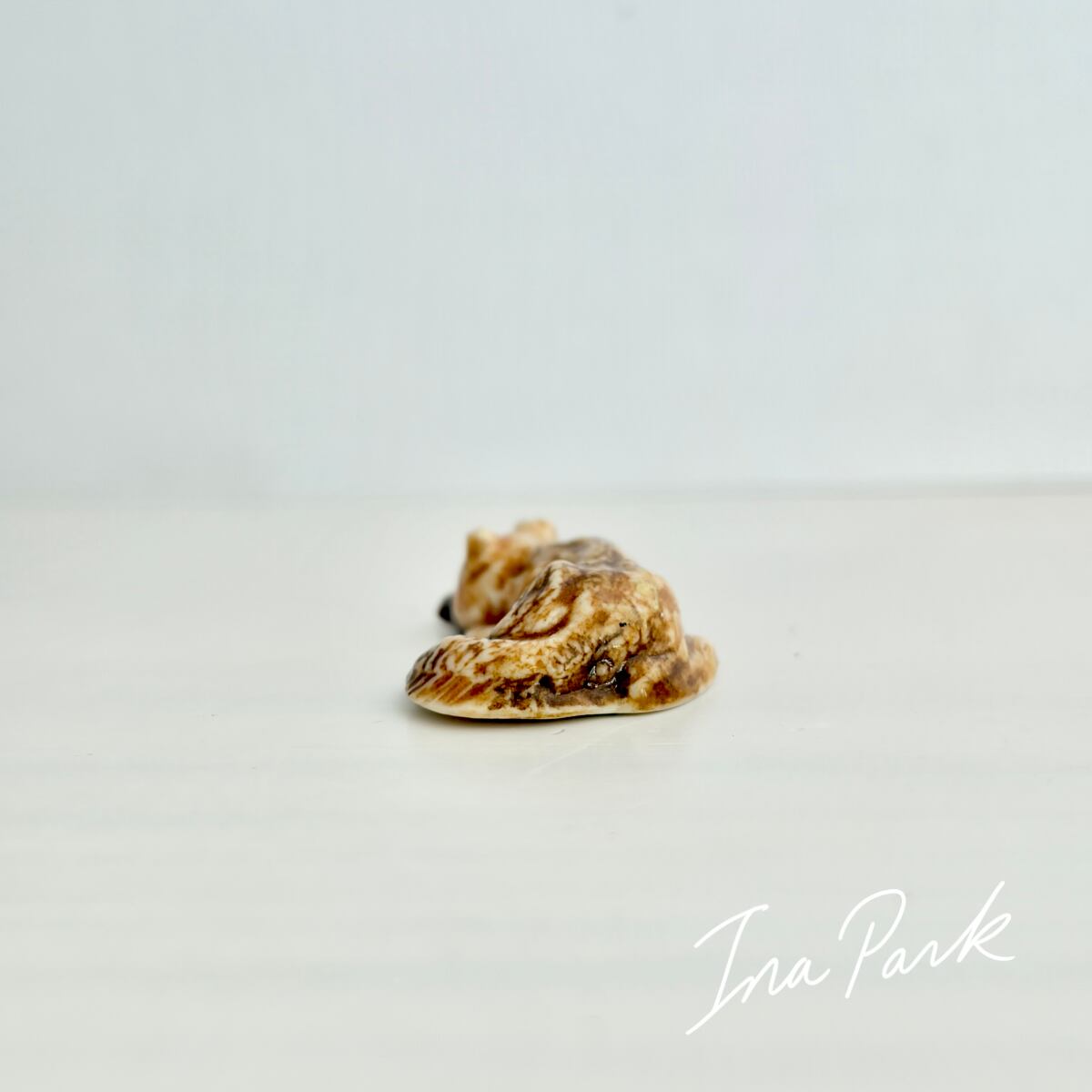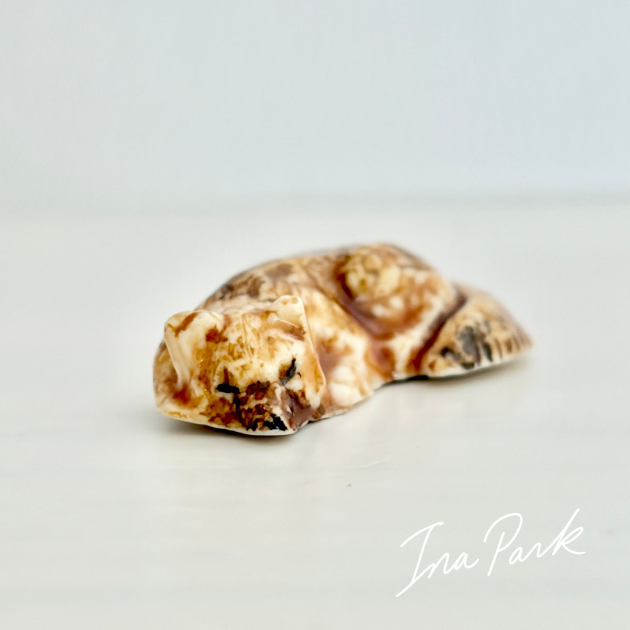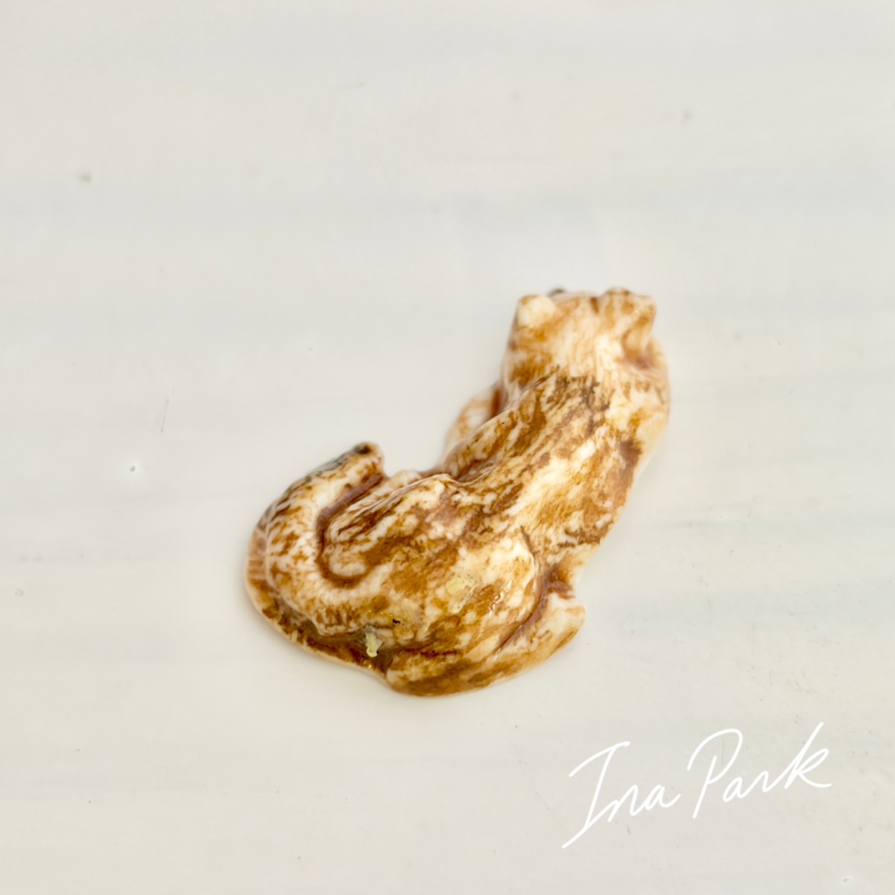 平面が多いこちらの工房作品では少ない立体のフェーブ。まるで本物のキツネが小さくなって微睡んでいるかのような雰囲気を讃えています。