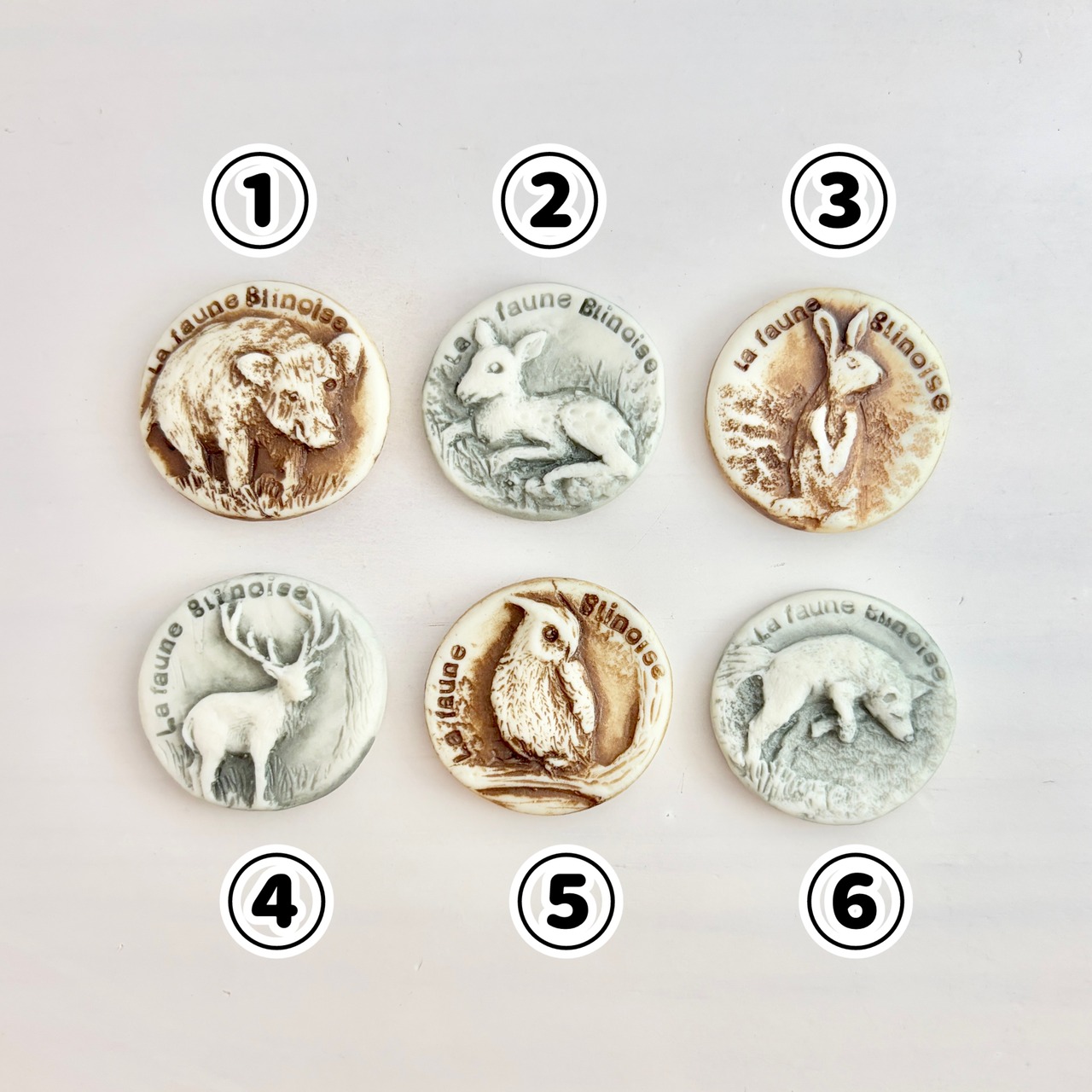 フランスの自然区域に見られる代表的な野生動物がモチーフ。