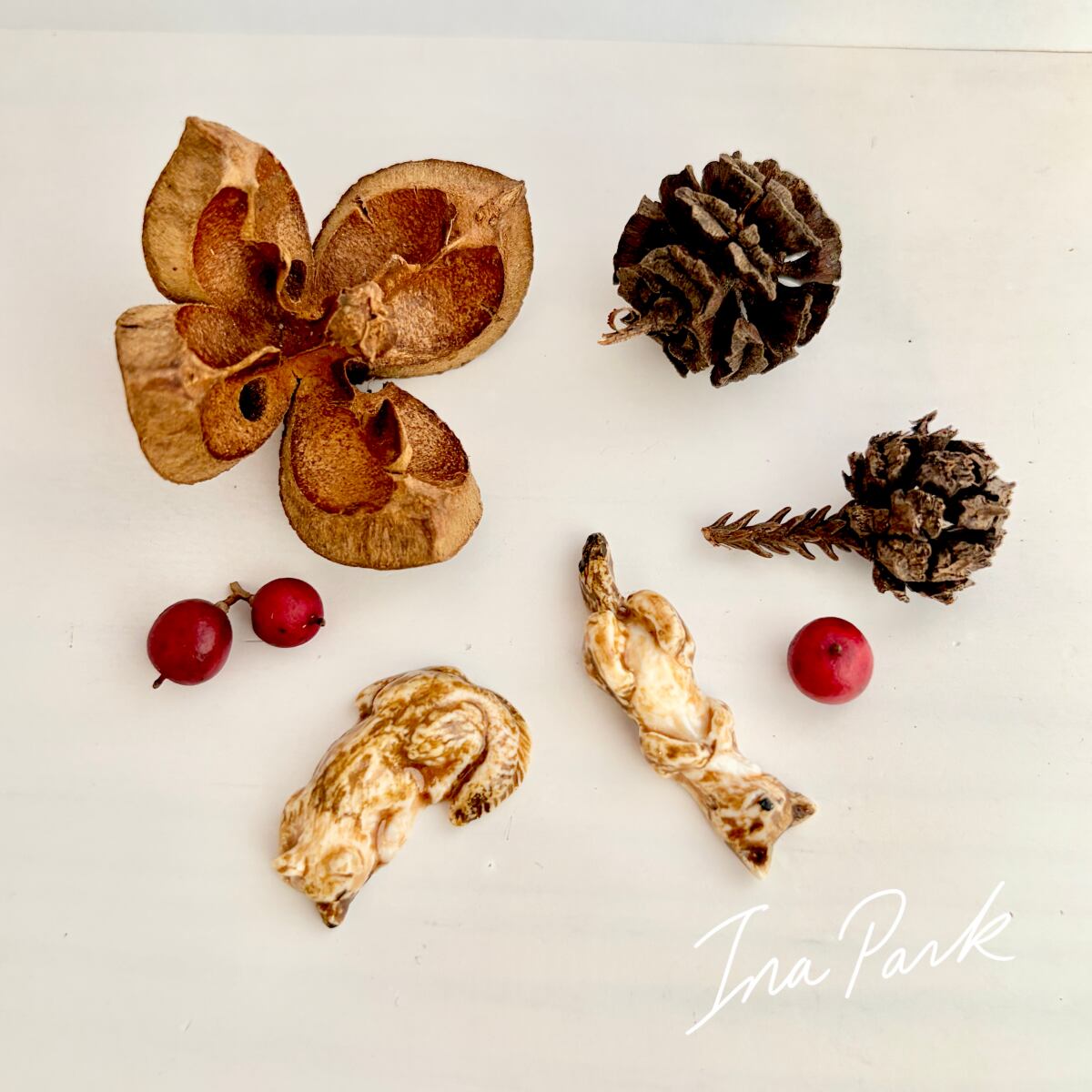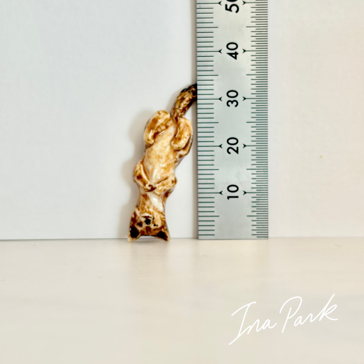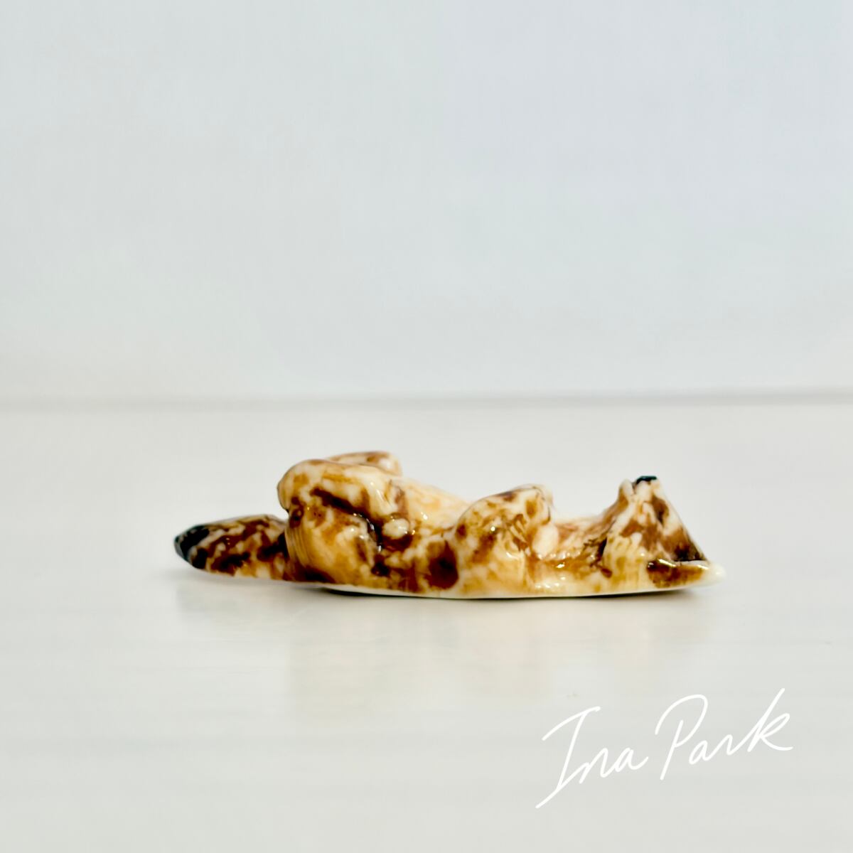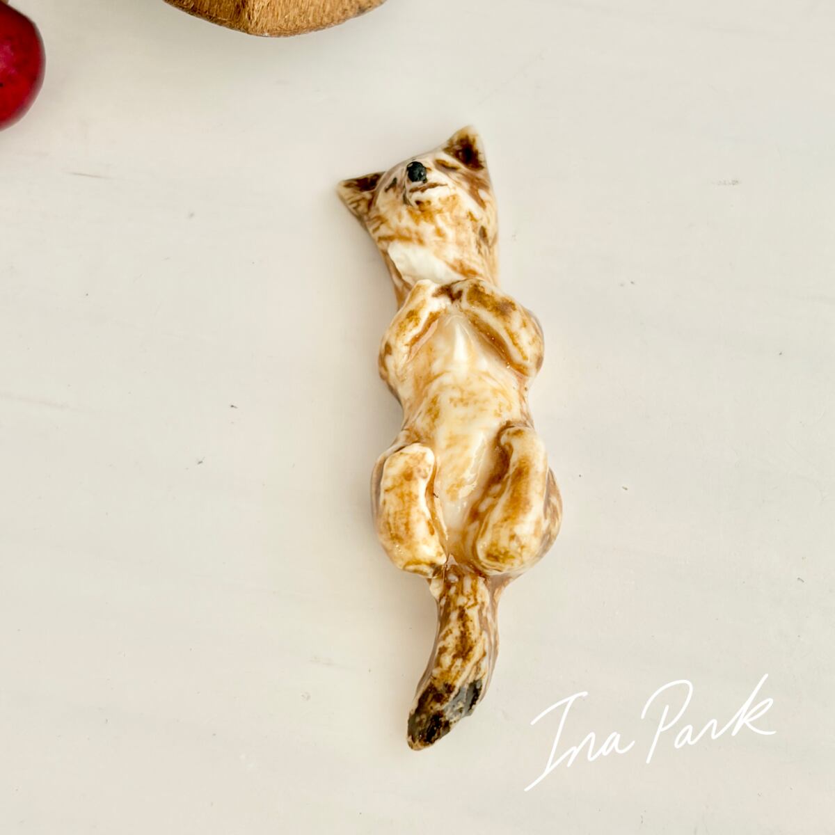 平面が多いこちらの工房作品では少ない立体のフェーブ。まるで本物のキツネが小さくなって微睡んでいるかのような雰囲気を讃えています。