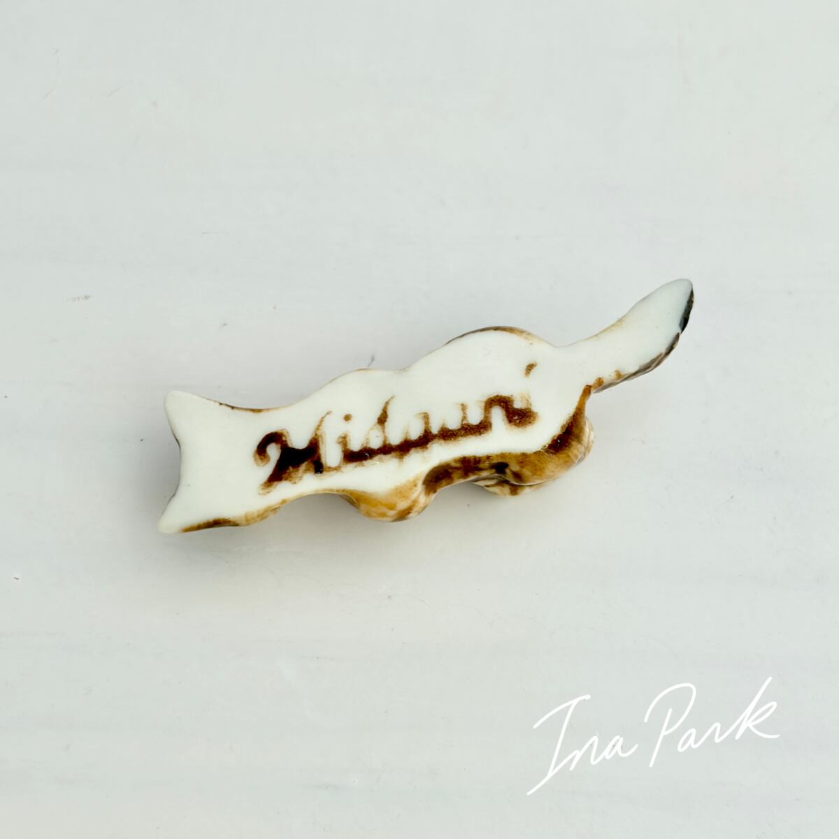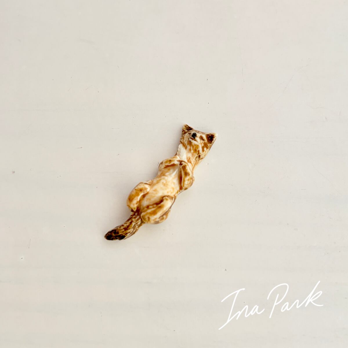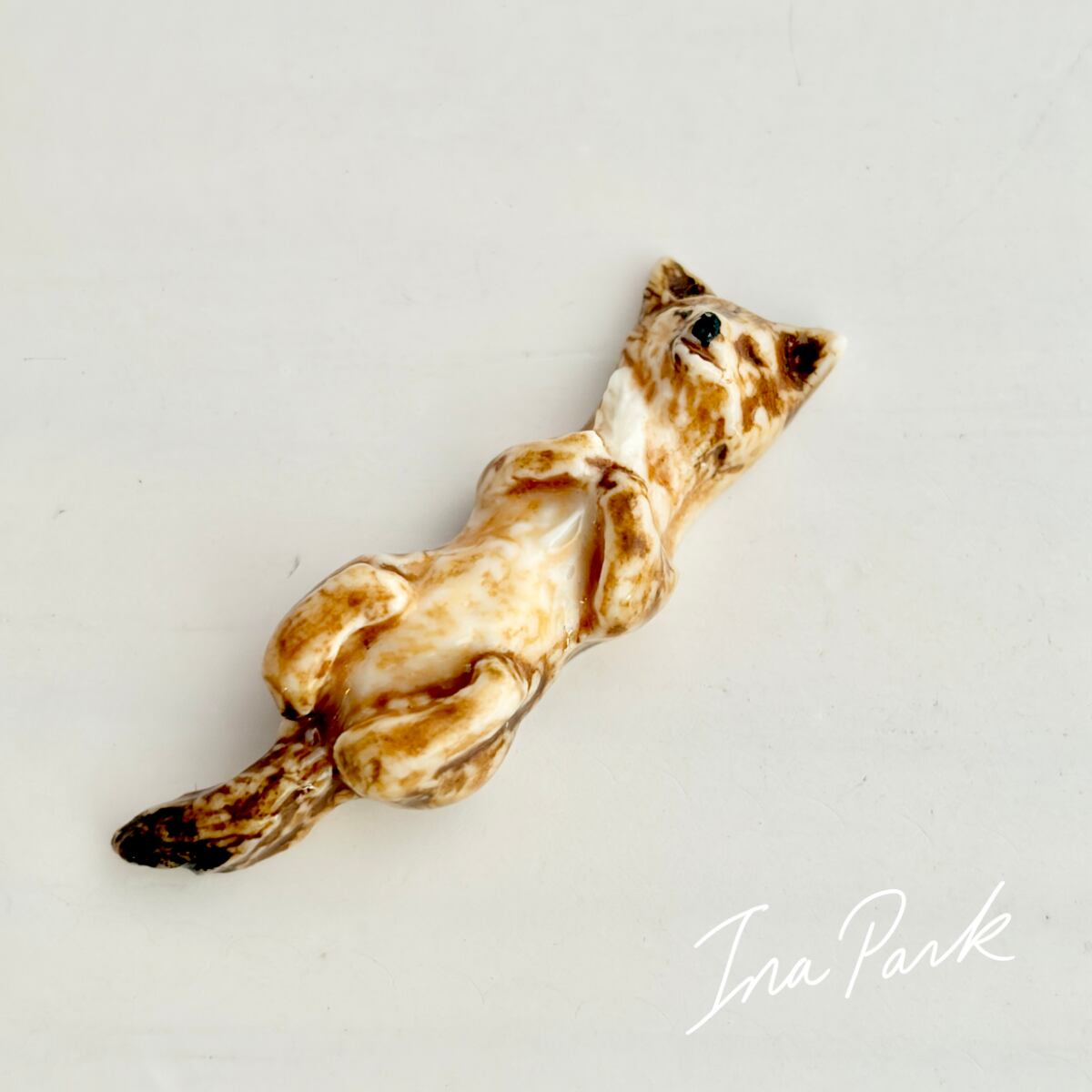 【希少フェーヴ】2001 ミッドガール 仰向けのキツネのフェーヴA Midgard 工房のフェーブ フランス製 ミニチュア 陶器 雑貨 置物