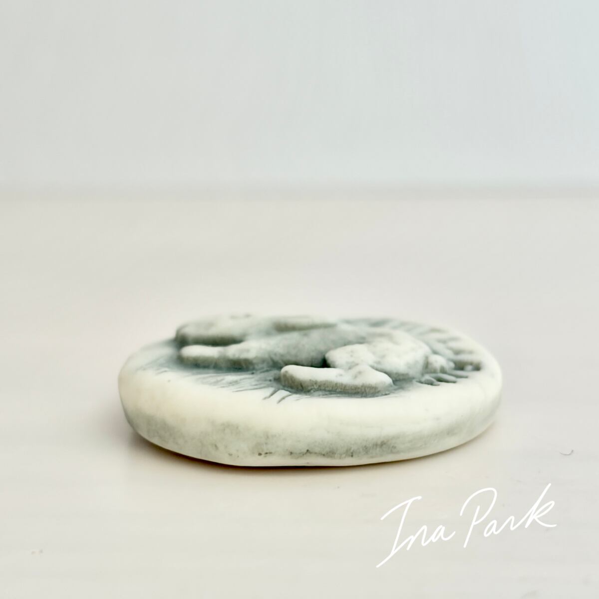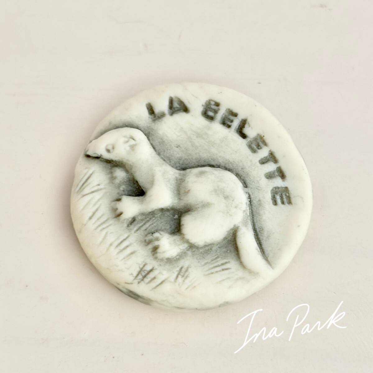 1996 ミッドガール フォンテーヌ寓話の動物たち オリーブグレー 褐色 フェーヴ Midgard 工房のフェーブ フランス製 ミニチュア 陶器 雑貨 置物