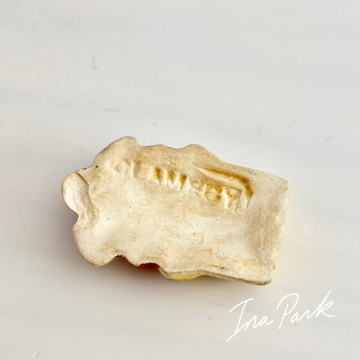 現在はあまり見かけない造形のクラムシーです。製造年・製造時期を示す確実な資料が確認できなかったため年代は不明ですが、造形の雰囲気や厚みのある作りから、比較的古い時期のヴィンテージ品の可能性があると考えています。