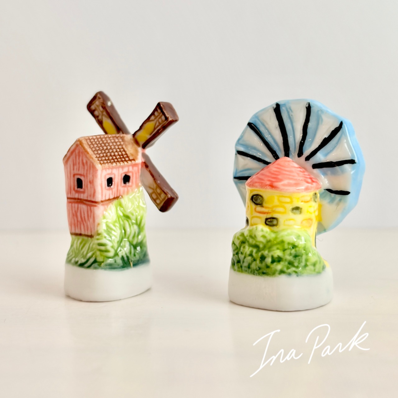 2007年 ヨーロッパの風車のフェーヴ フェーブ フランス製 ミニチュア 陶器 雑貨 置物