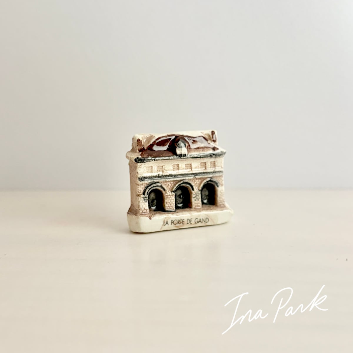 ヴィンテージ ル・ムーラン・ア・ユイル ラ・ポルト・ド・ガンのフェーヴ 建物 フェーブ フランス製 ミニチュア 陶器 雑貨 置物