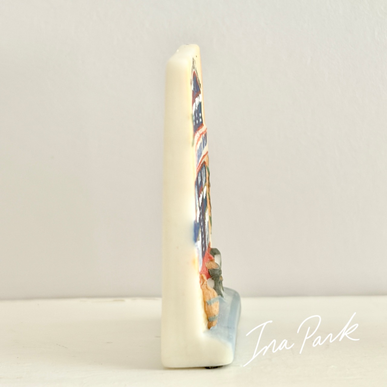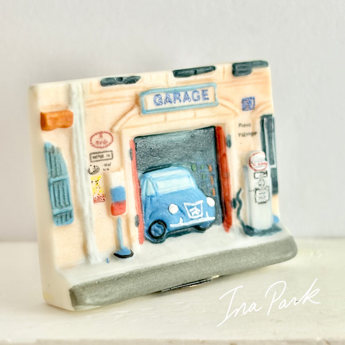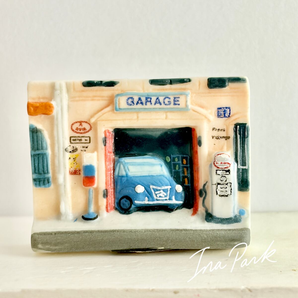 手押し車や、カフェテーブルなど、店舗前に置かれたものがところどころ立体になっているところもとても魅力的です。並べると商店街のようになって、前に人や乗り物を置いても楽しいです。→最後の写真