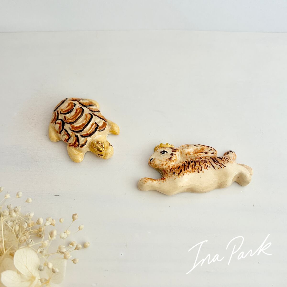 こちらは有名な寓話であるうさぎとカメを題材としたテーマの作品です。 ウサギもカメも王冠をかぶっているため、勝敗に関わらずどちらも王様だよという意味が込められているのかもしれません。 エリック・エジル作品らしい優しい世界観が感じられます。