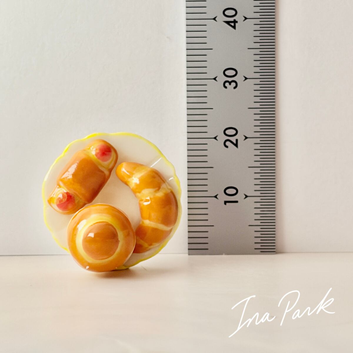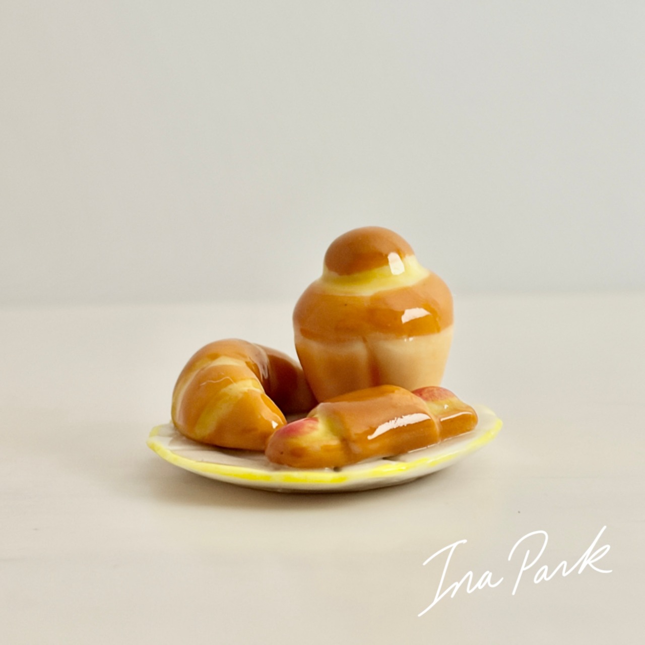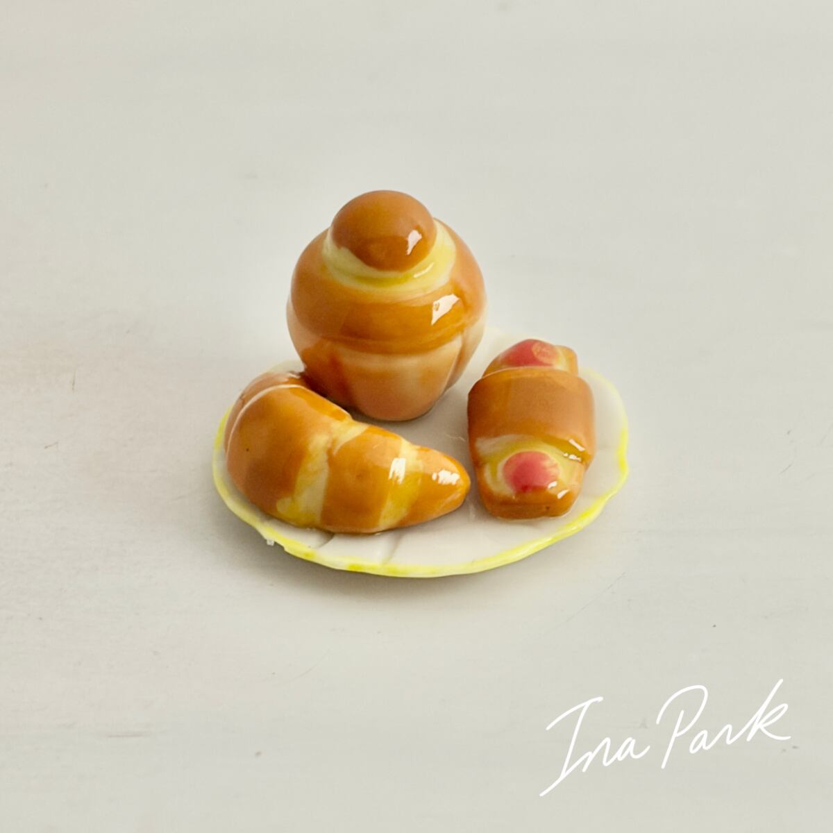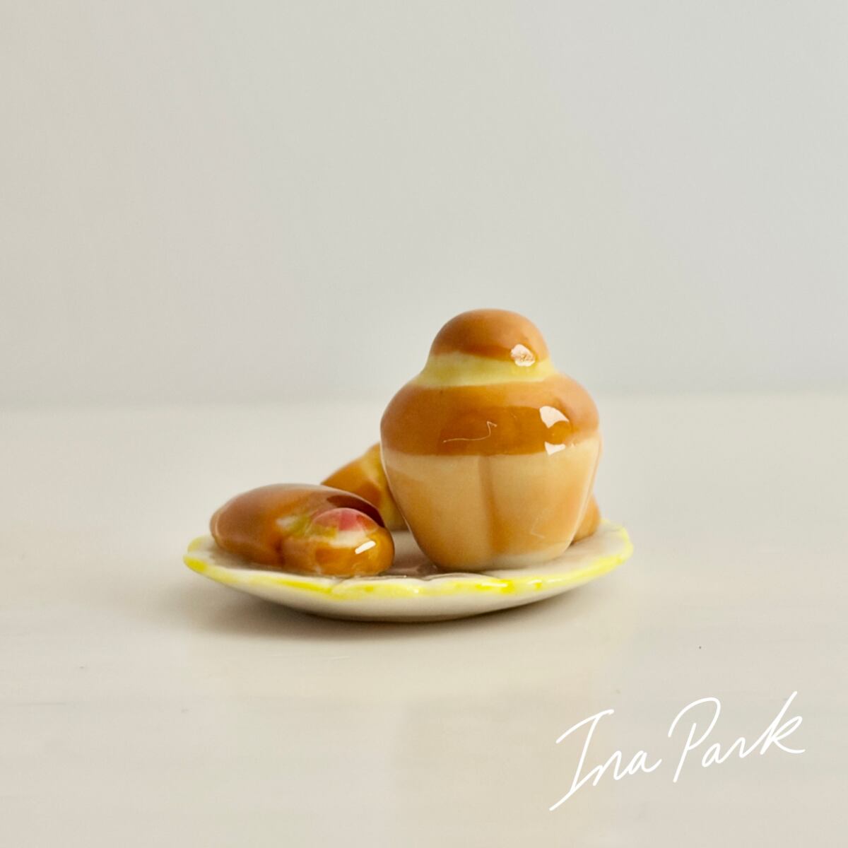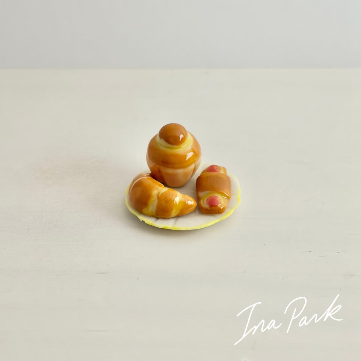 パンが3つ乗ったお皿 フェーヴ フェーブ フランス製 ミニチュア 陶器 雑貨 置物