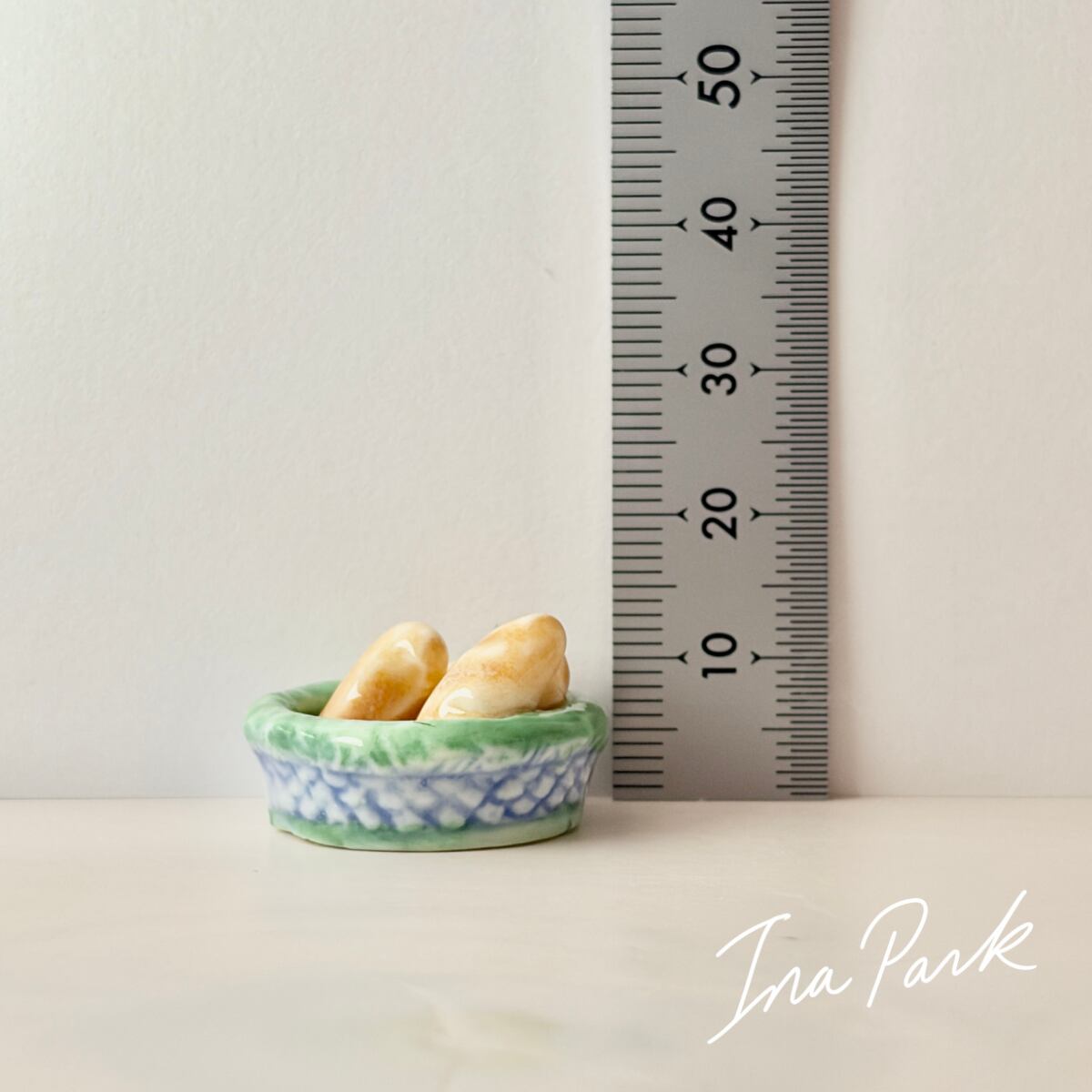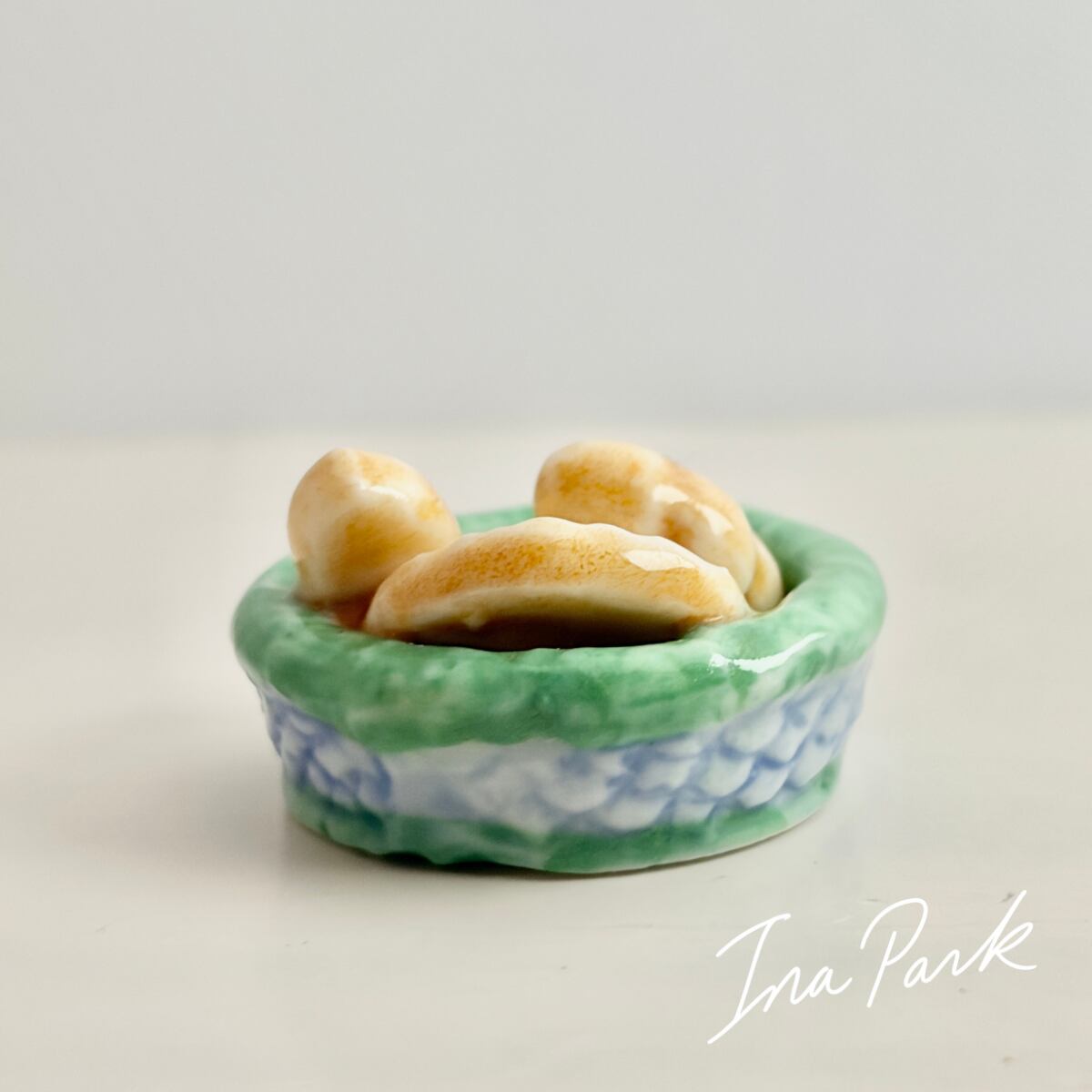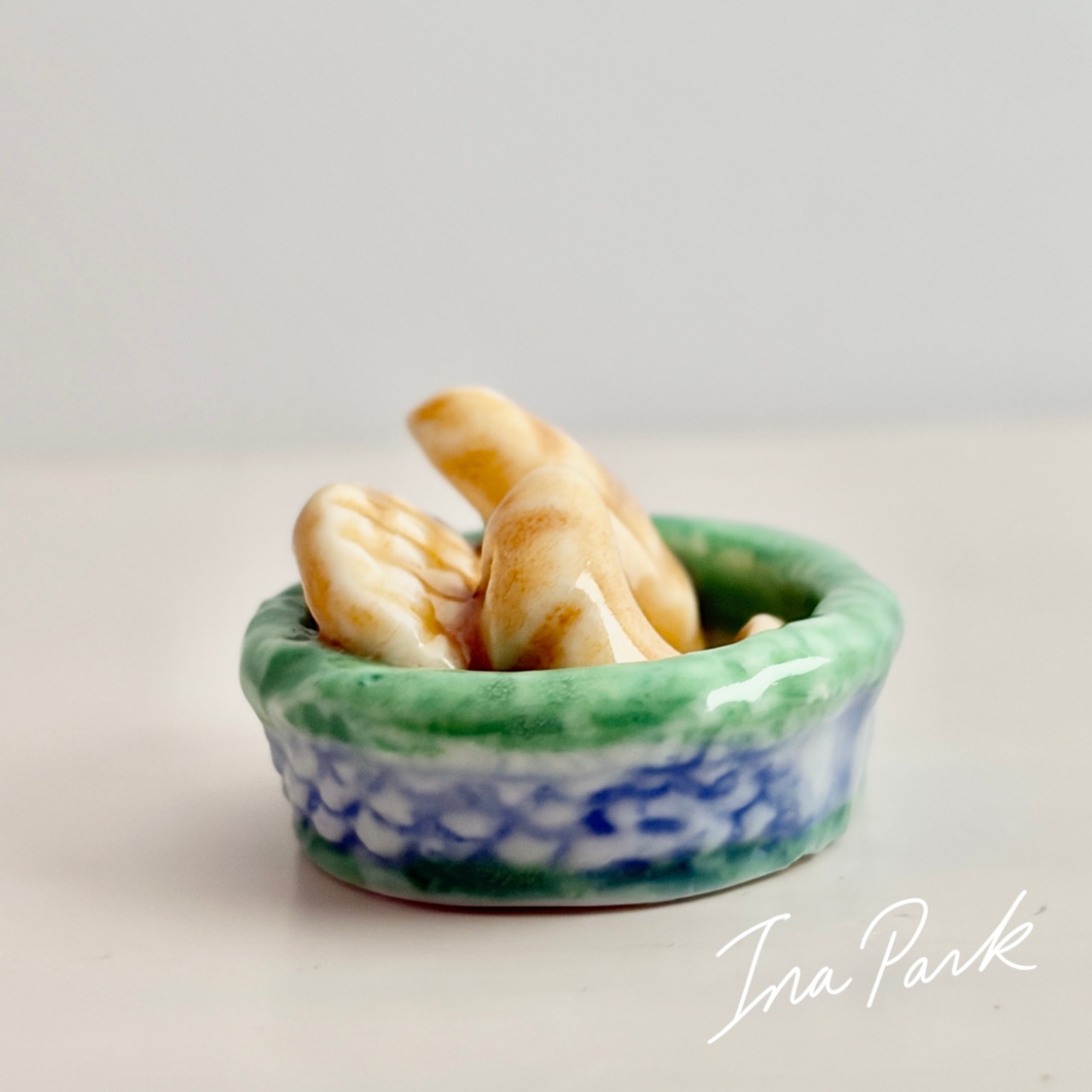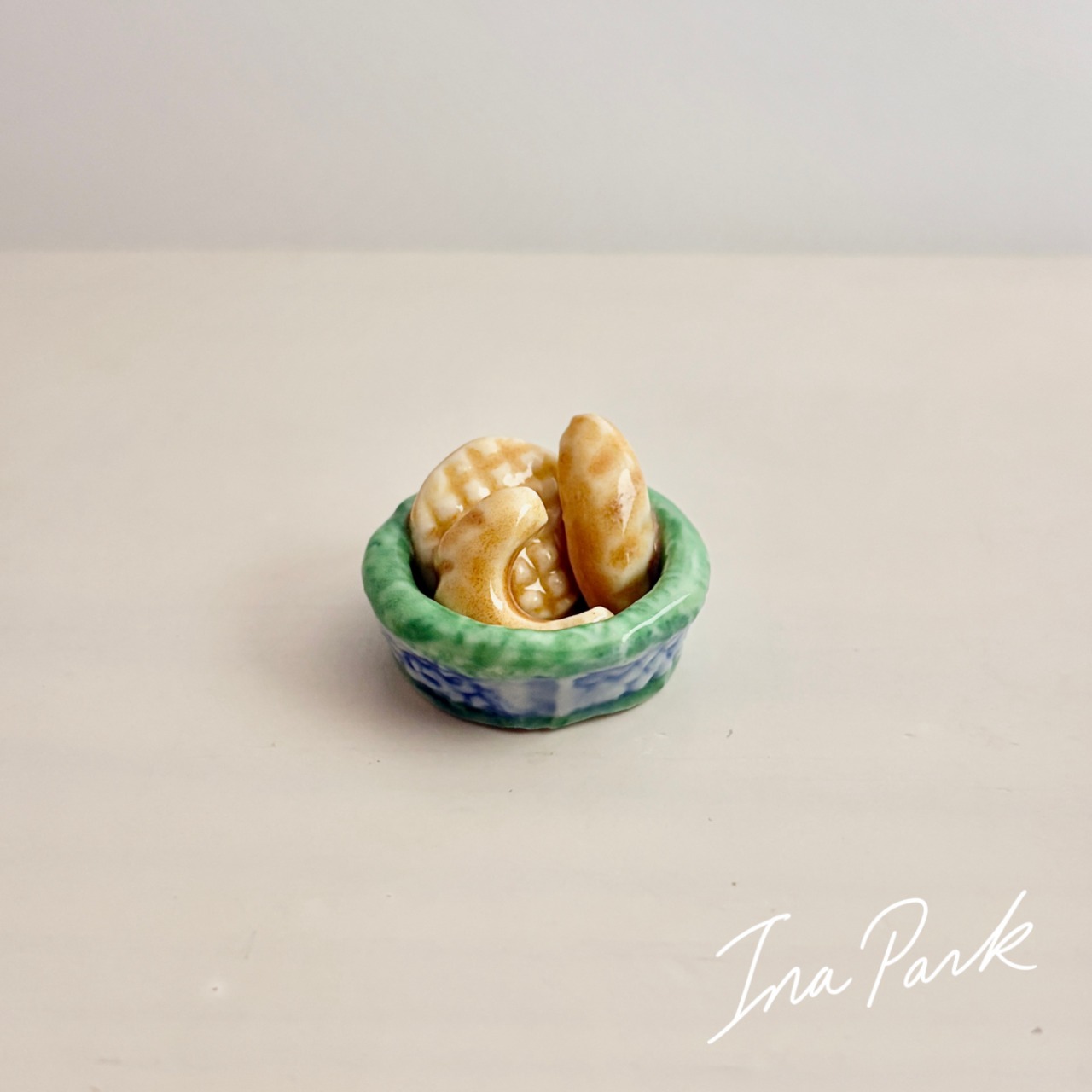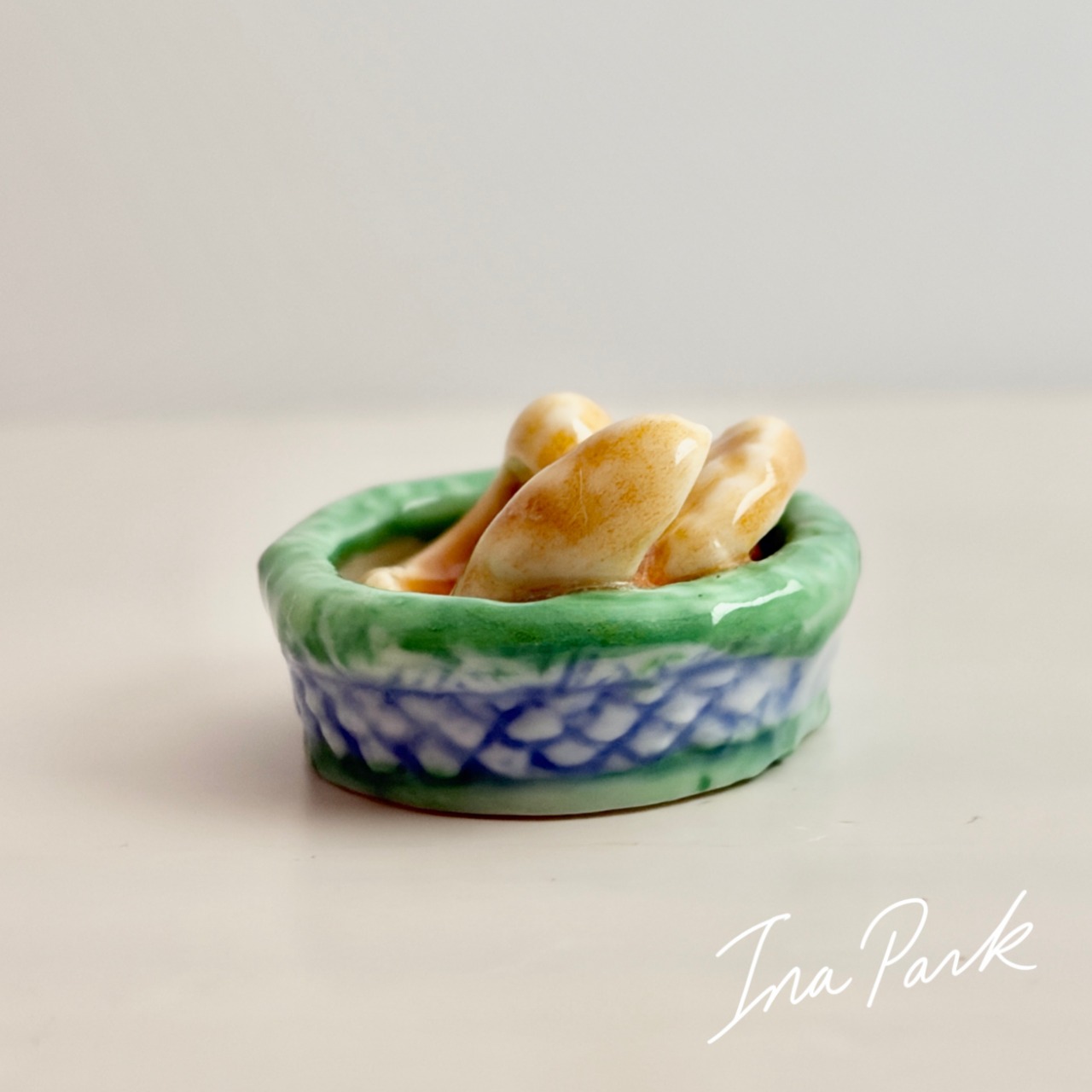 ヴィンテージフェーヴ パンが3つ入ったカゴA フェーブ フランス製 ミニチュア 陶器 雑貨 置物