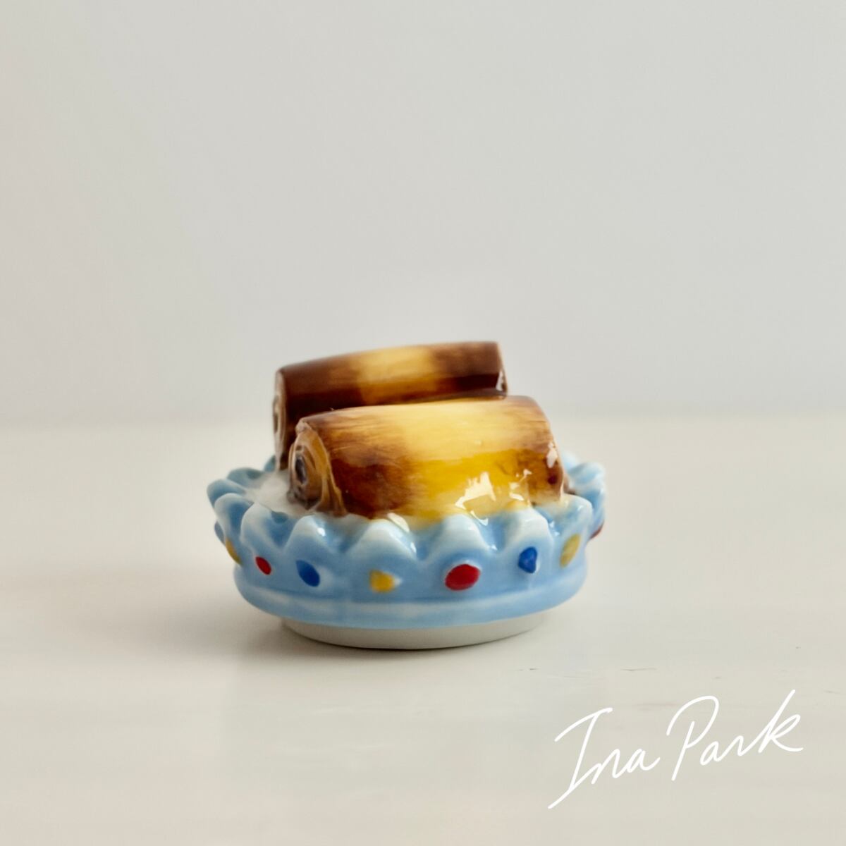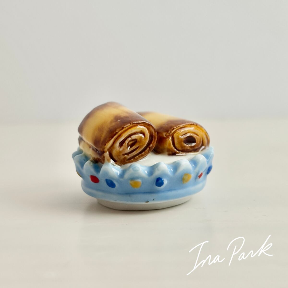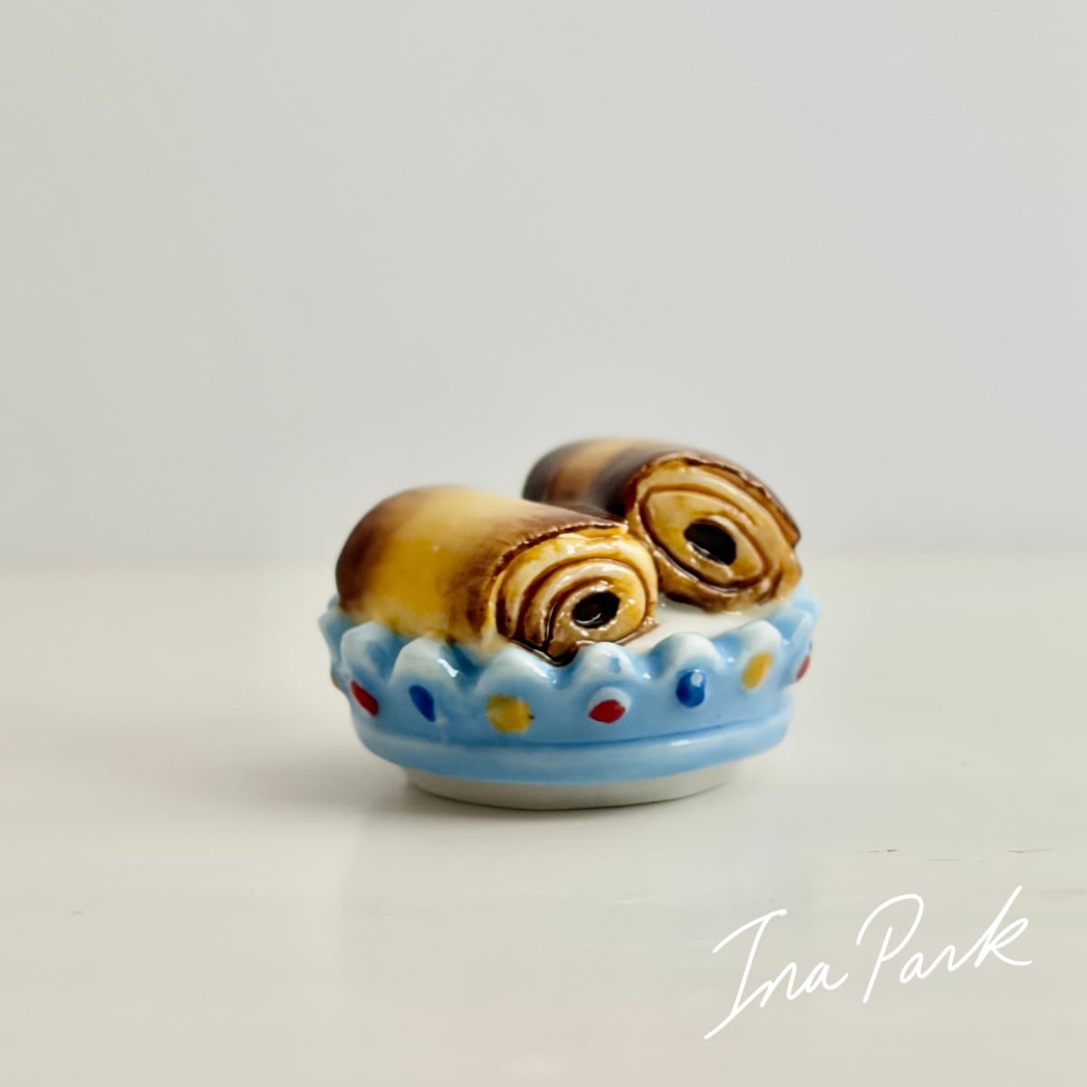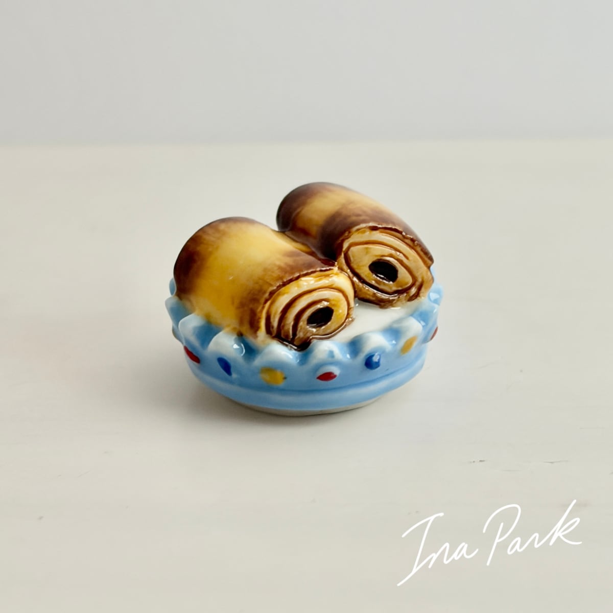王冠の上のパン・オ・ショコラのフェーヴ フェーブ フランス製 ミニチュア 陶器 雑貨 置物