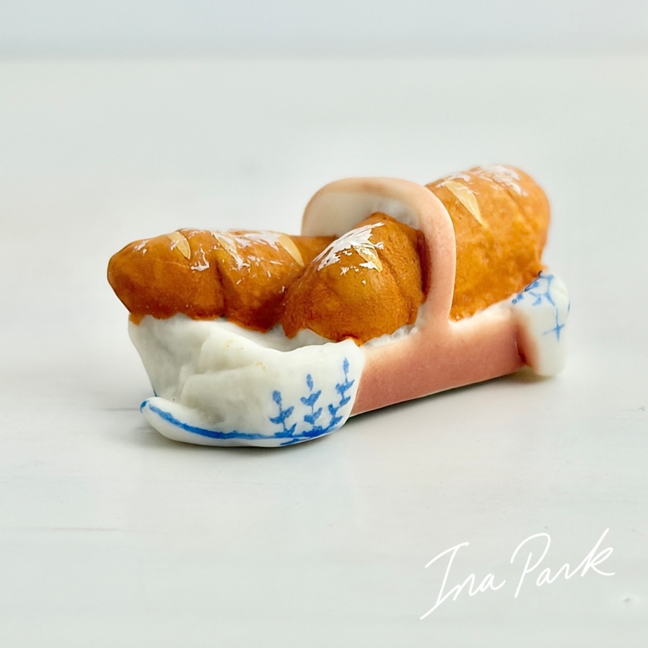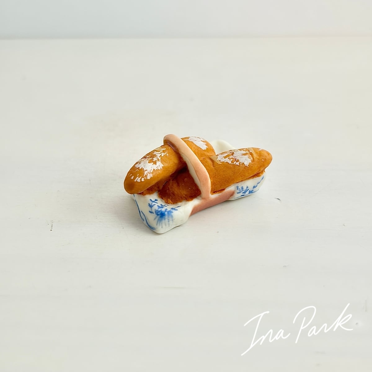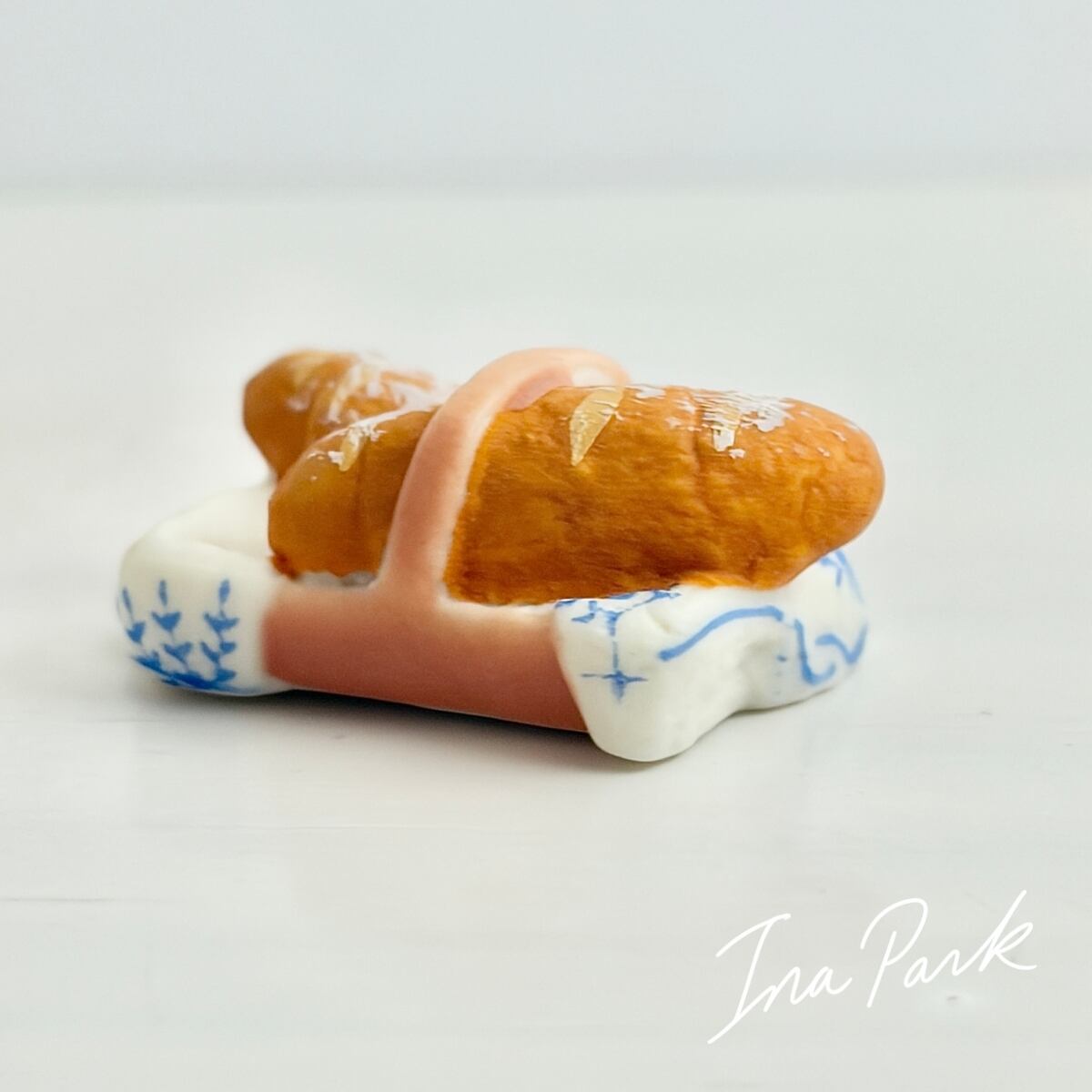 小さなカゴにはいったバゲットのフェーヴ フェーブ フランス製 ミニチュア 陶器 雑貨 置物
