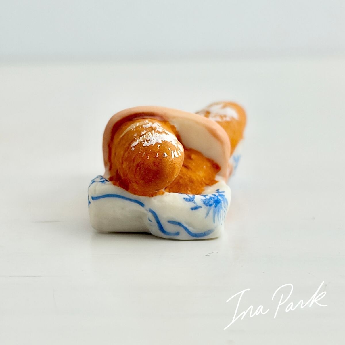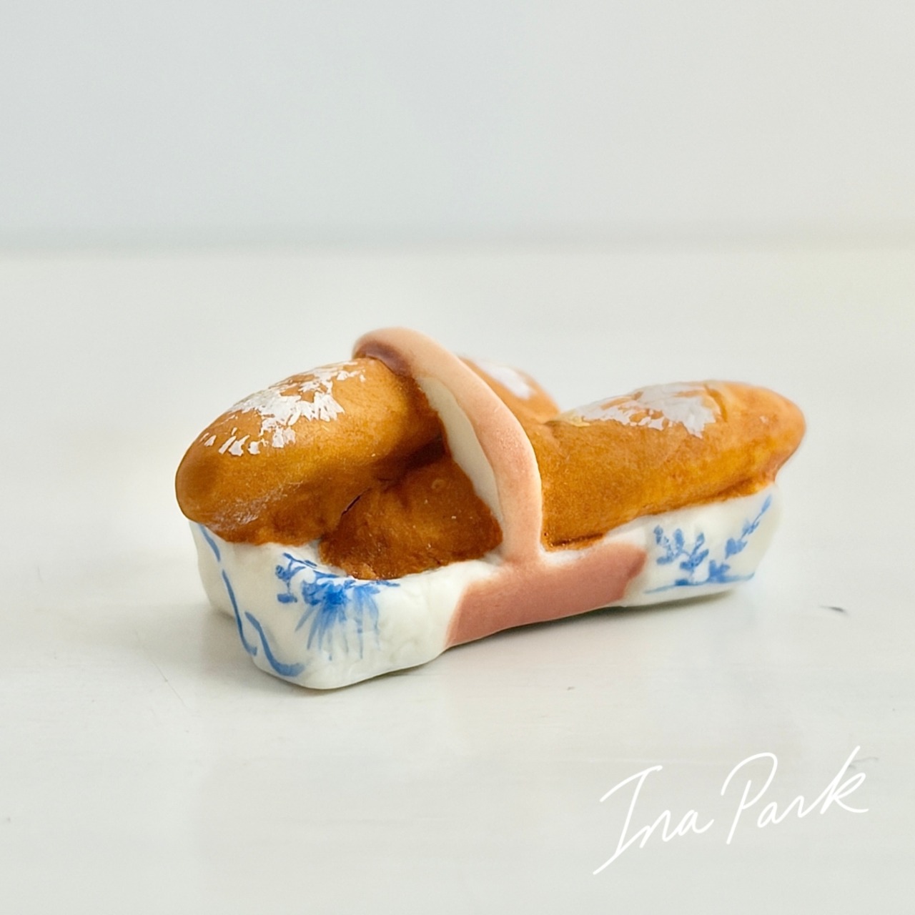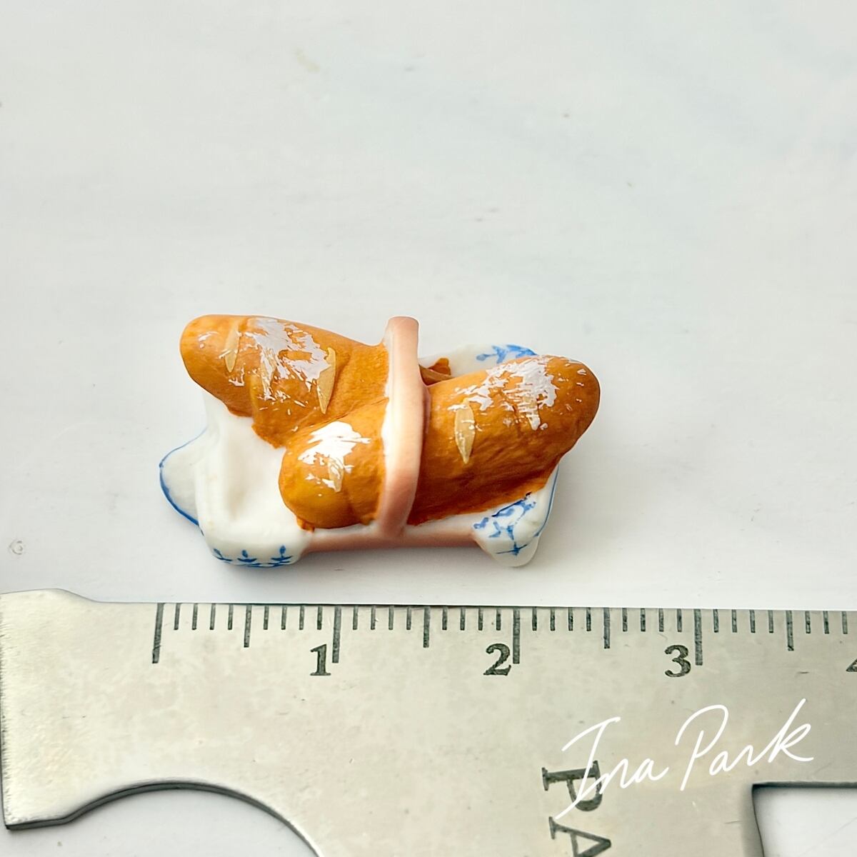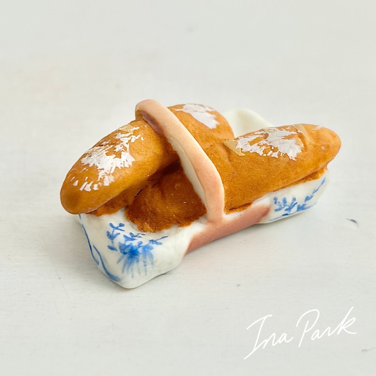 小さなカゴにはいったバゲットのフェーヴ フェーブ フランス製 ミニチュア 陶器 雑貨 置物