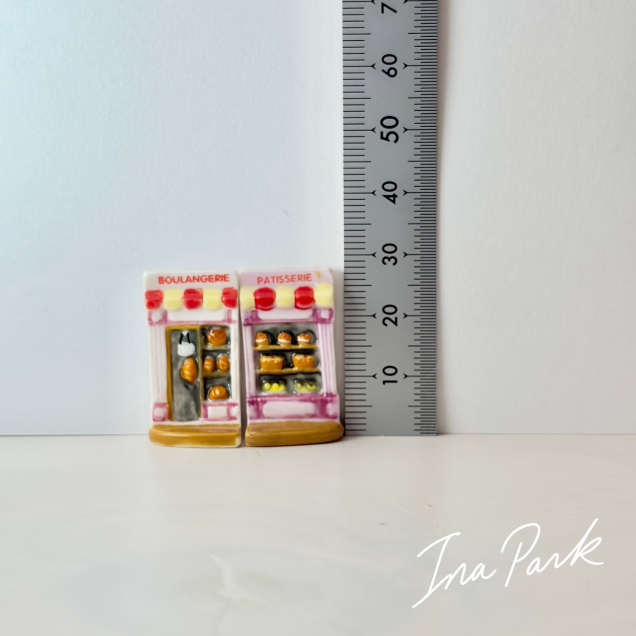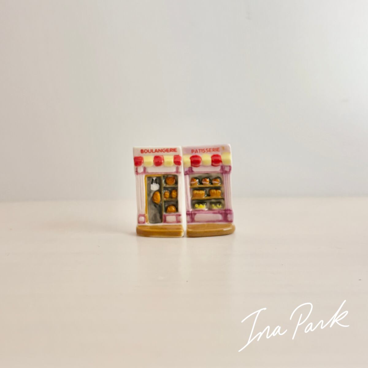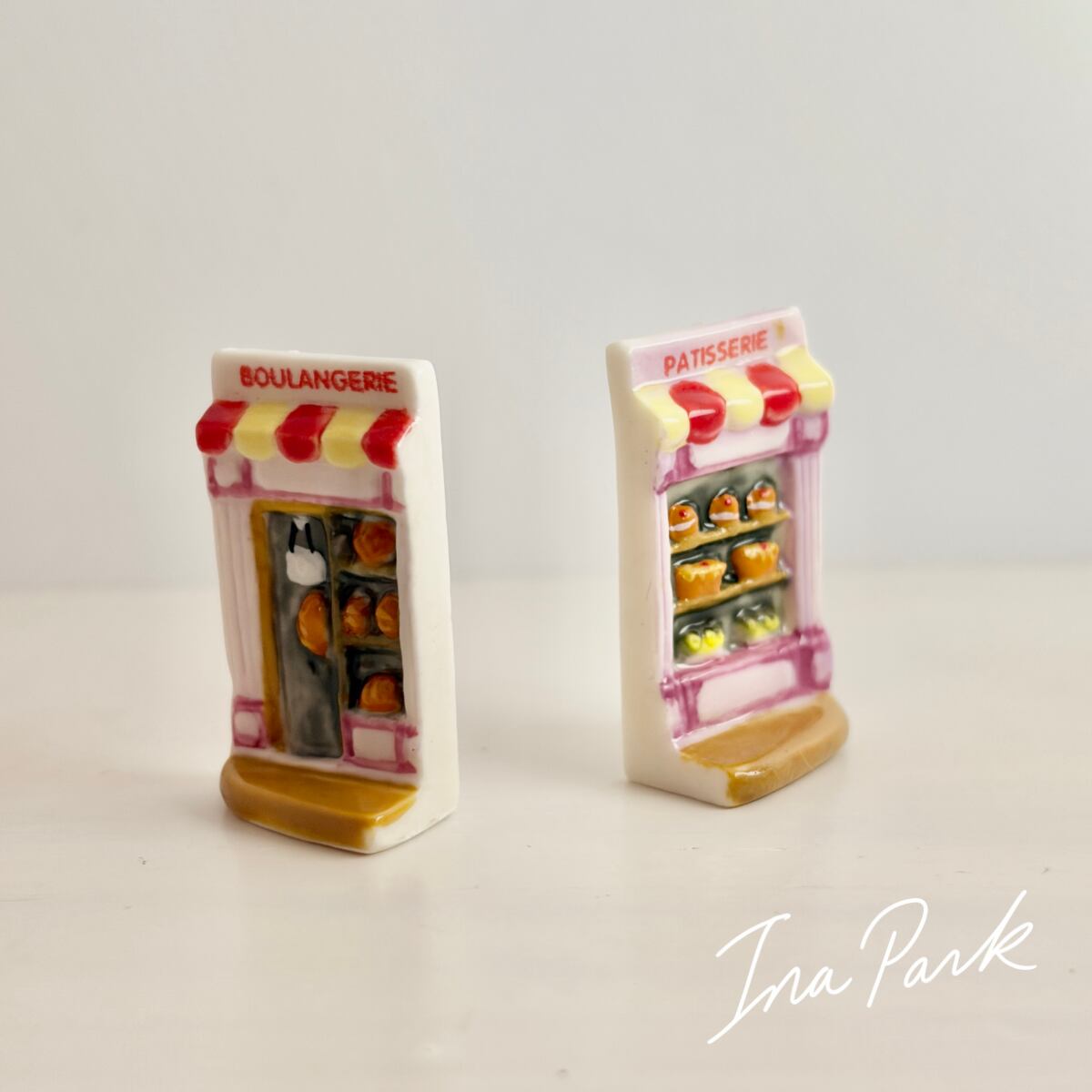 2点セット ブーランジェリーとパティスリーのファサードのフェーヴ フェーブ フランス製 ミニチュア 陶器 雑貨 置物