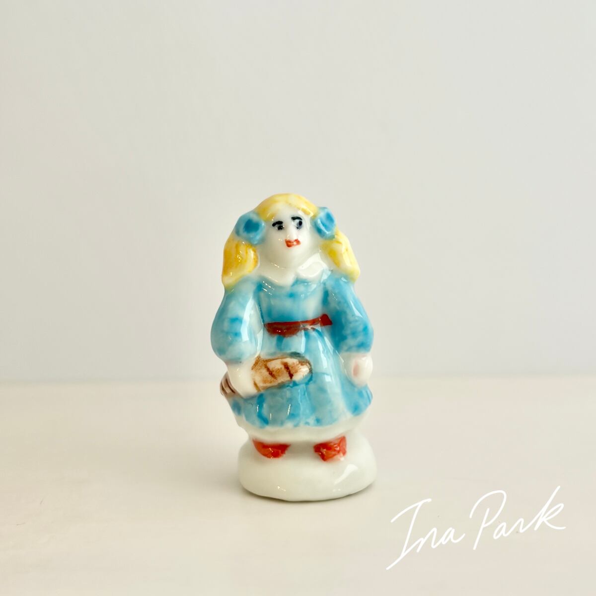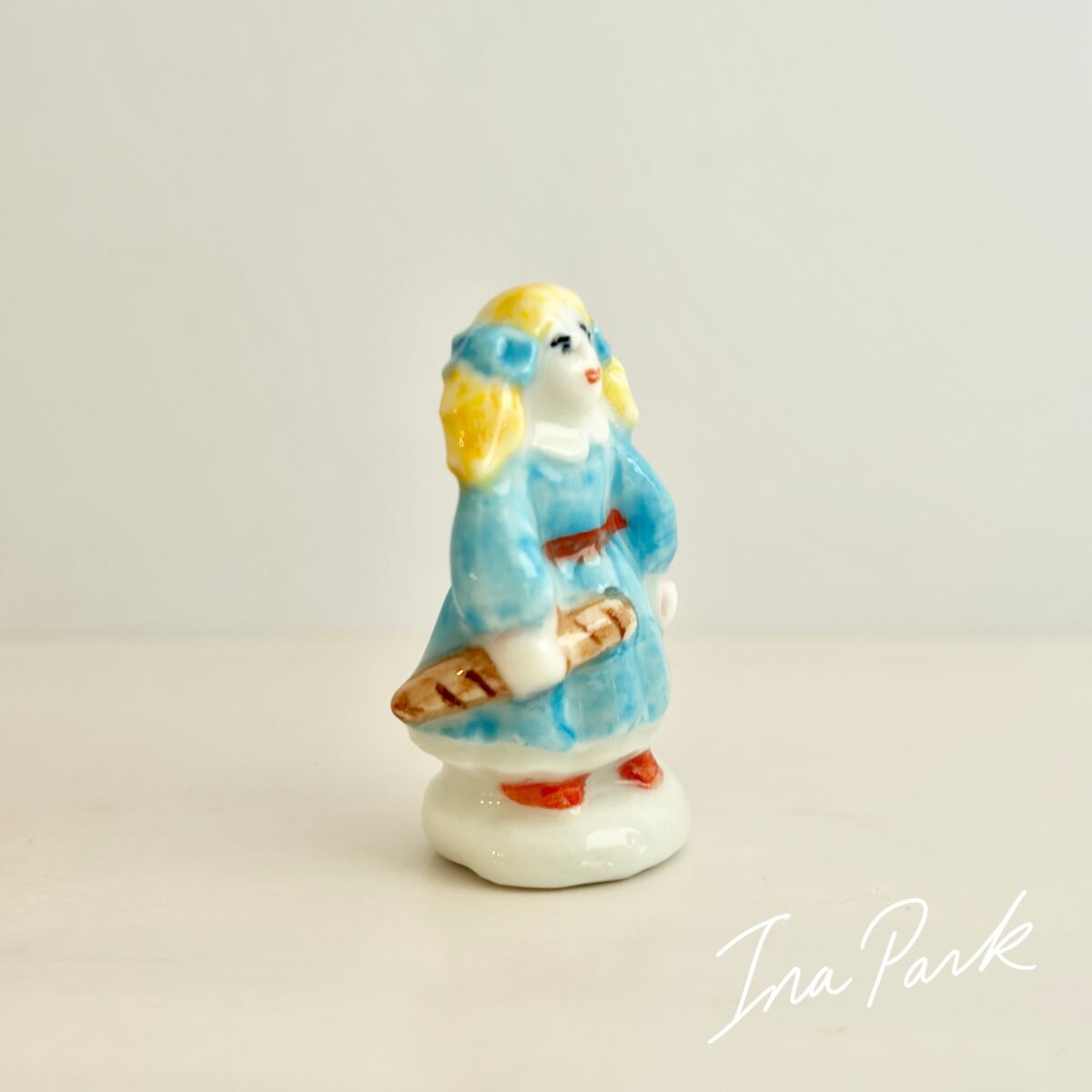 90sヴィンテージ パンを持つ女の子のフェーヴ フェーブ フランス製 ミニチュア 陶器 雑貨 置物