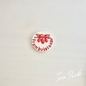 アルザスの蒸留所 Massenez によるフランボワーズリキュール Framboisines® のロゴをモチーフにしたプロモーションフェーブ。