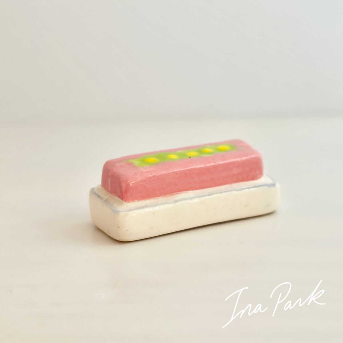 ミニマルな造形ですが、ピンクとグリーンのカラーが可愛く、ユニークな存在感があります。