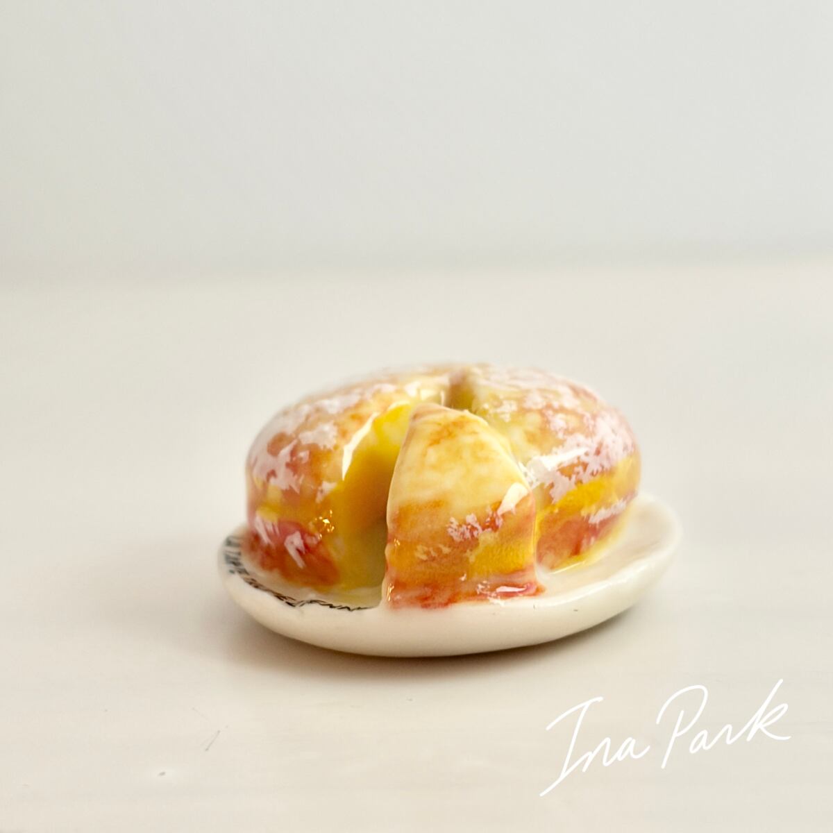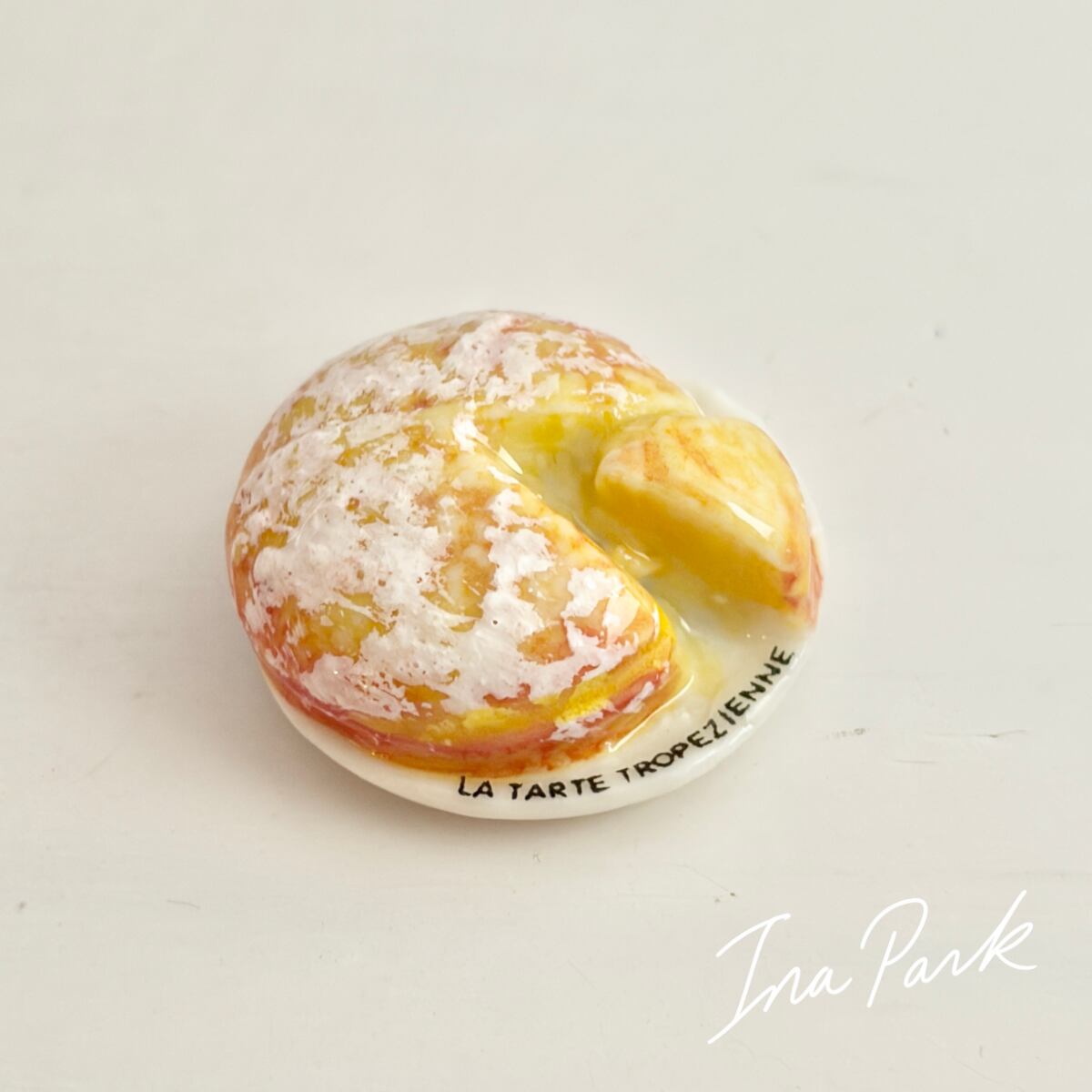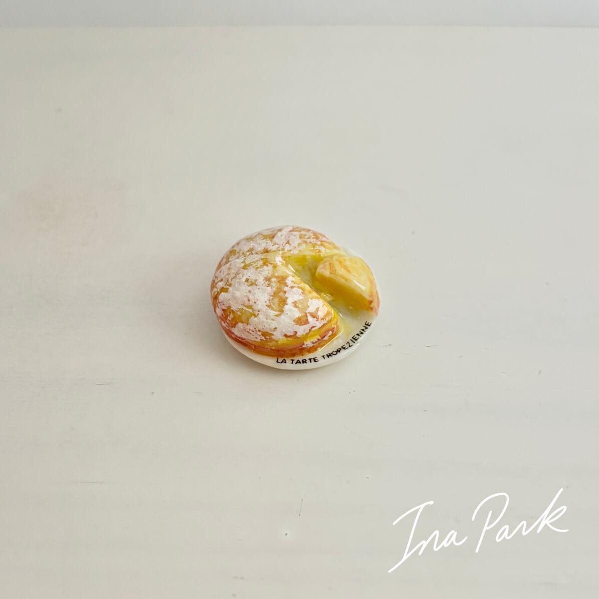 お皿に乗ったタルト・トロペジェンヌ お菓子のフェーヴ フェーブ フランス製 ミニチュア 陶器 雑貨 置物