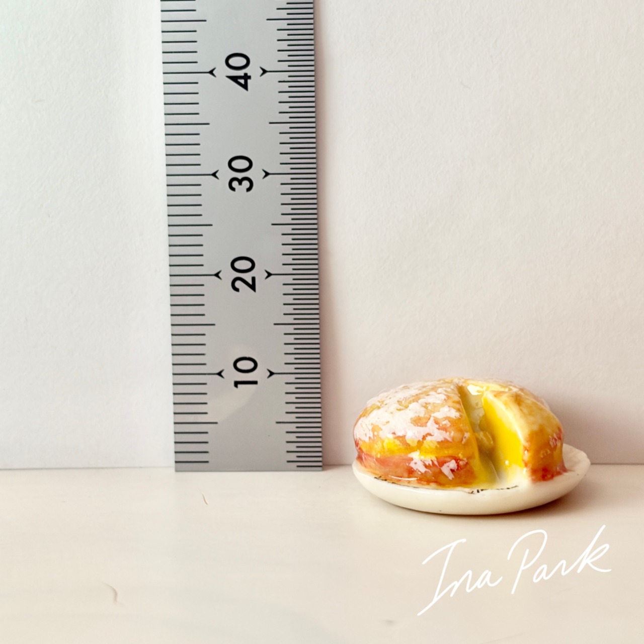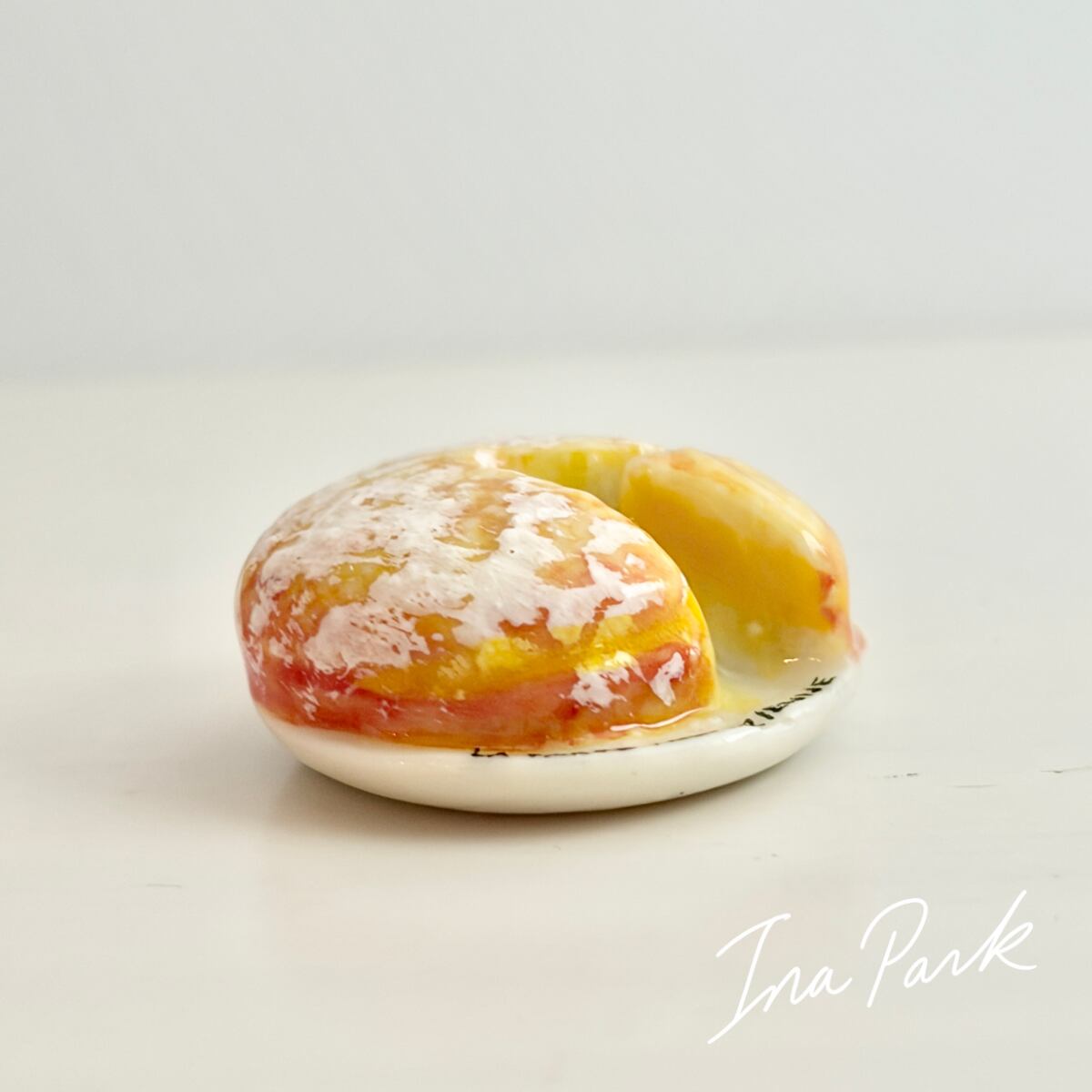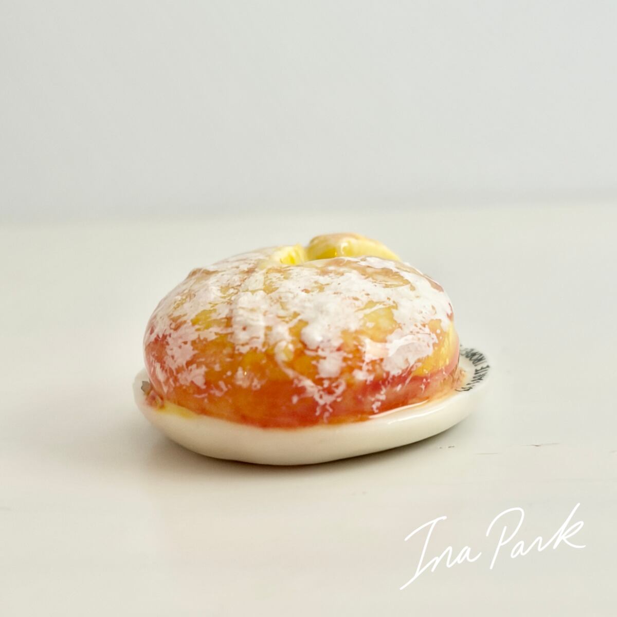 お皿に乗ったタルト・トロペジェンヌ お菓子のフェーヴ フェーブ フランス製 ミニチュア 陶器 雑貨 置物