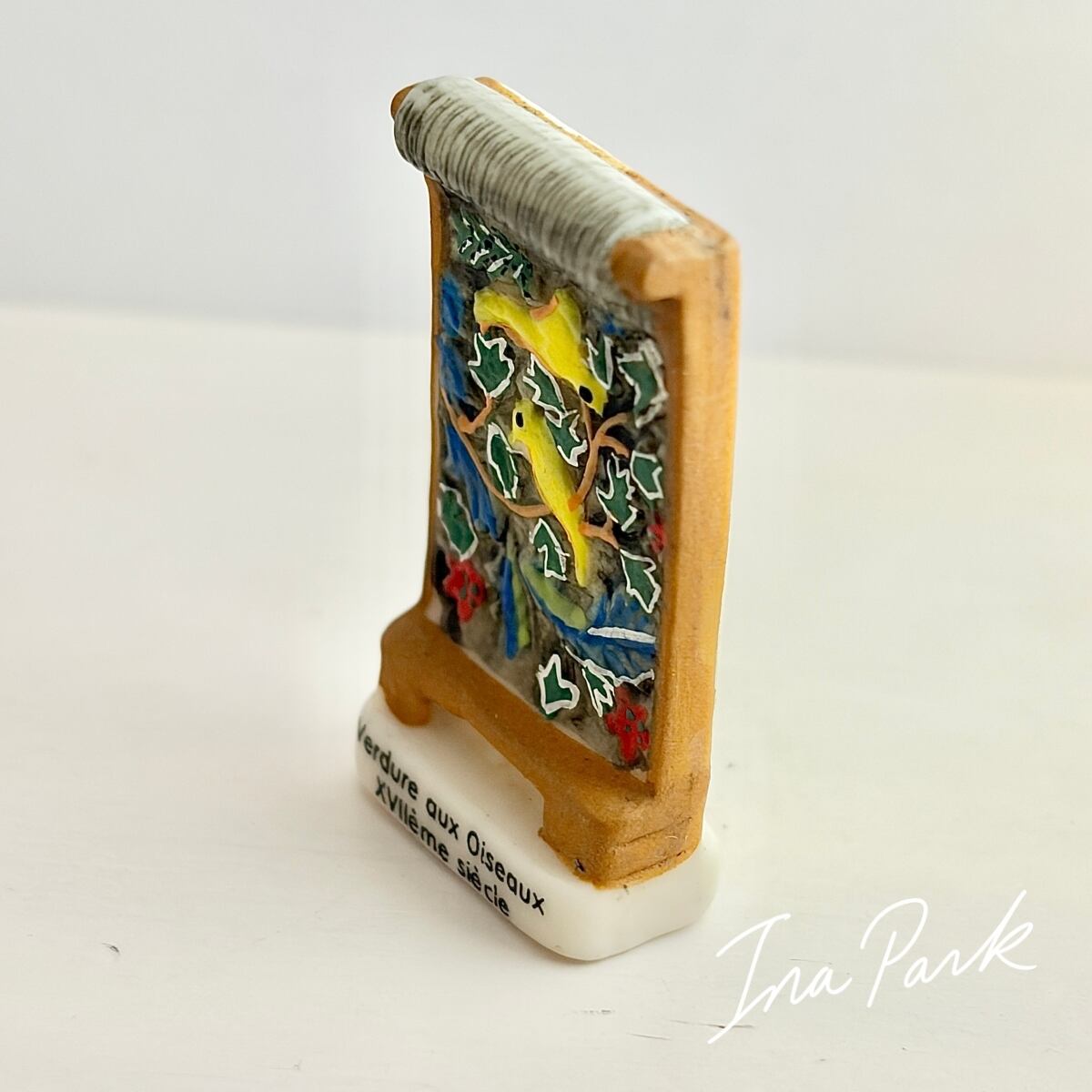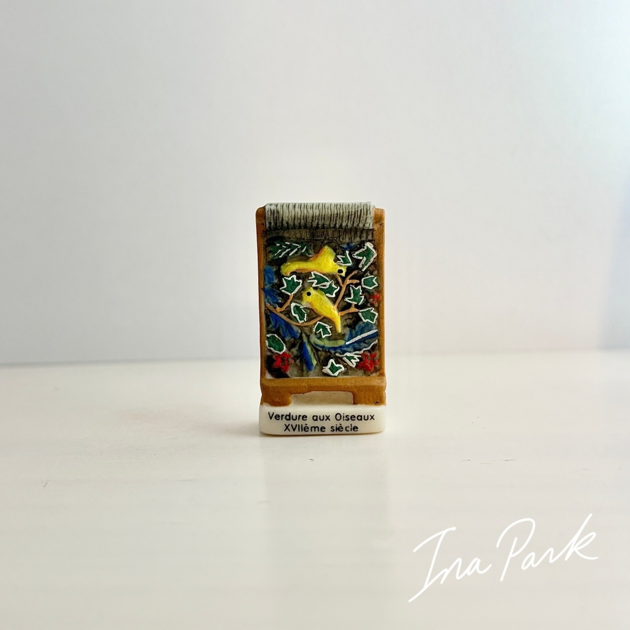 2006フランス製 古のタペストリーのフェーヴ 鳥のいるヴェルデュール フェーブ ミニチュア 陶器 雑貨 置物