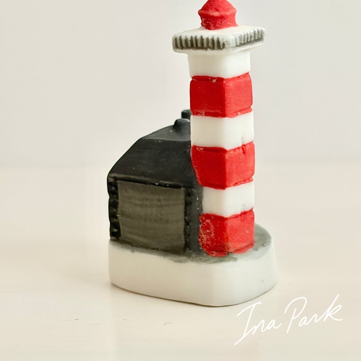 赤と白の横縞模様の塔と、灯台守の家が並ぶ姿が再現されています。