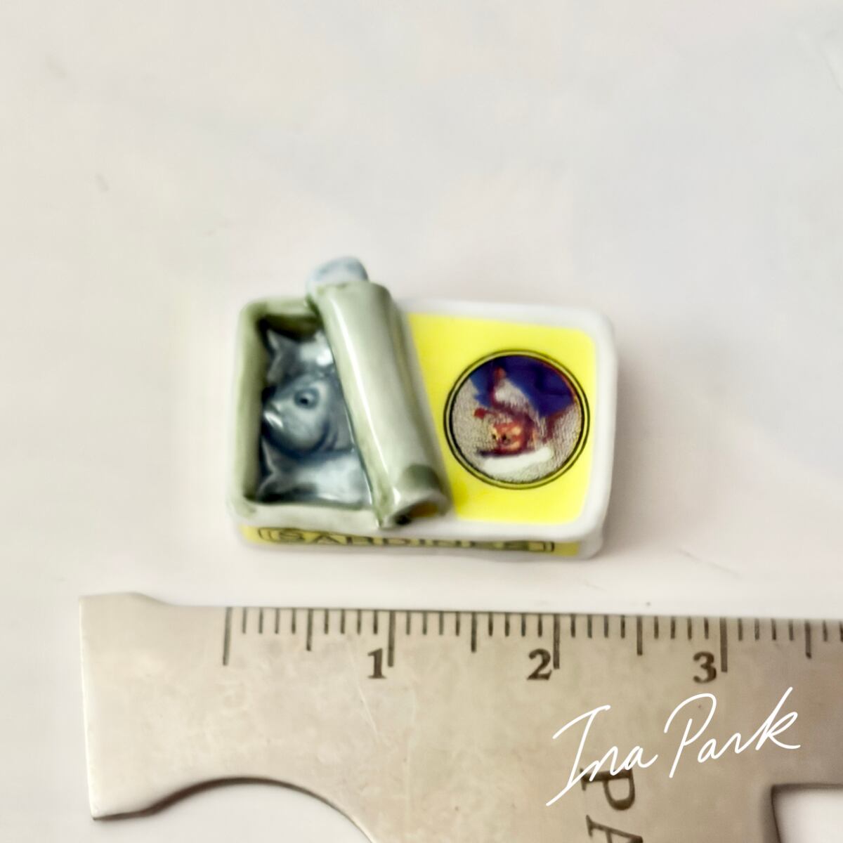 オイルサーディンの缶詰のフェーヴ フェーブ フランス製 ミニチュア 陶器 雑貨 置物