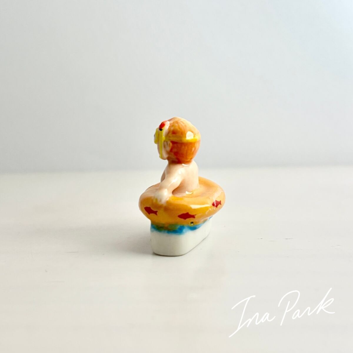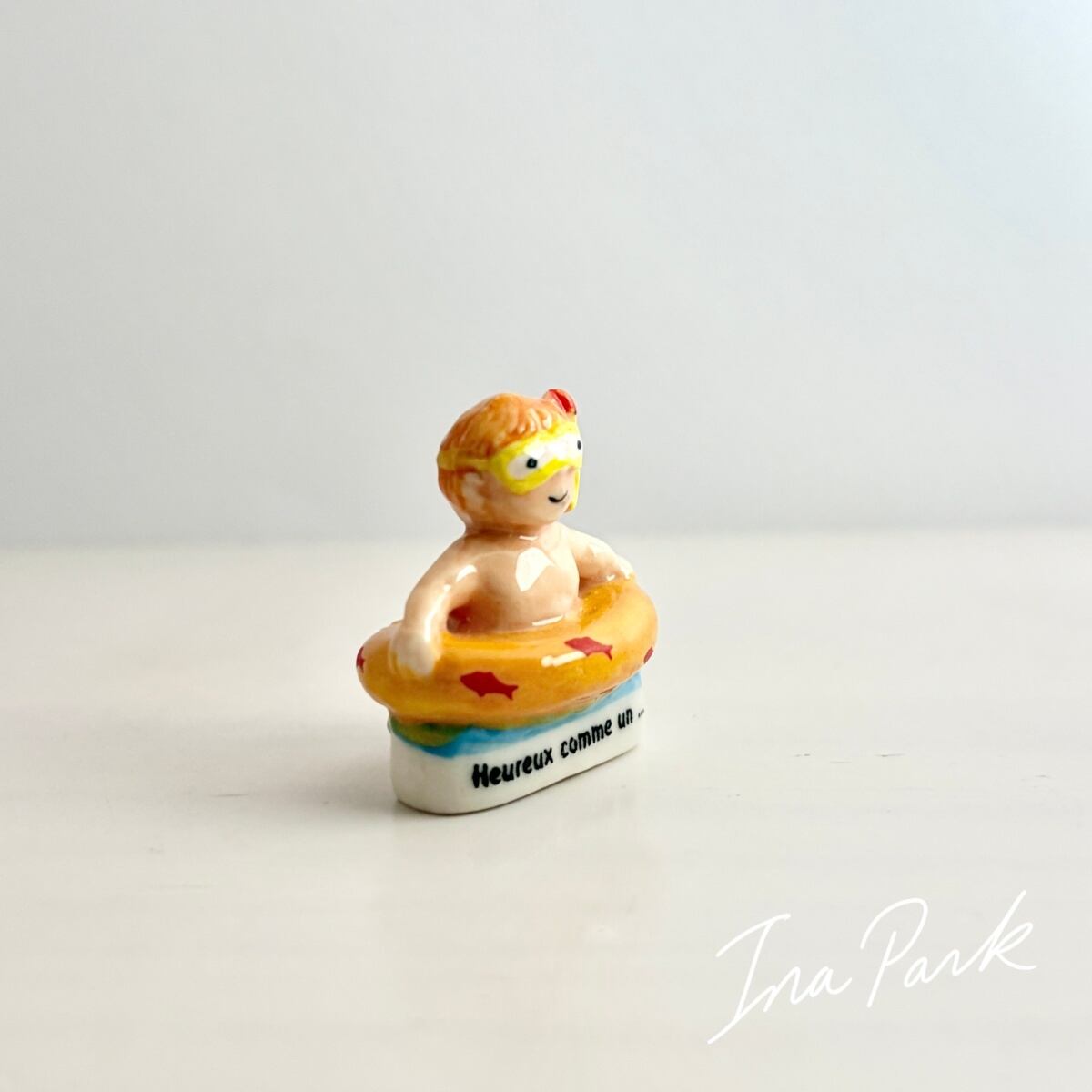 浮き輪の少年のフェーヴ フェーブ フランス製 ミニチュア 陶器 雑貨 置物