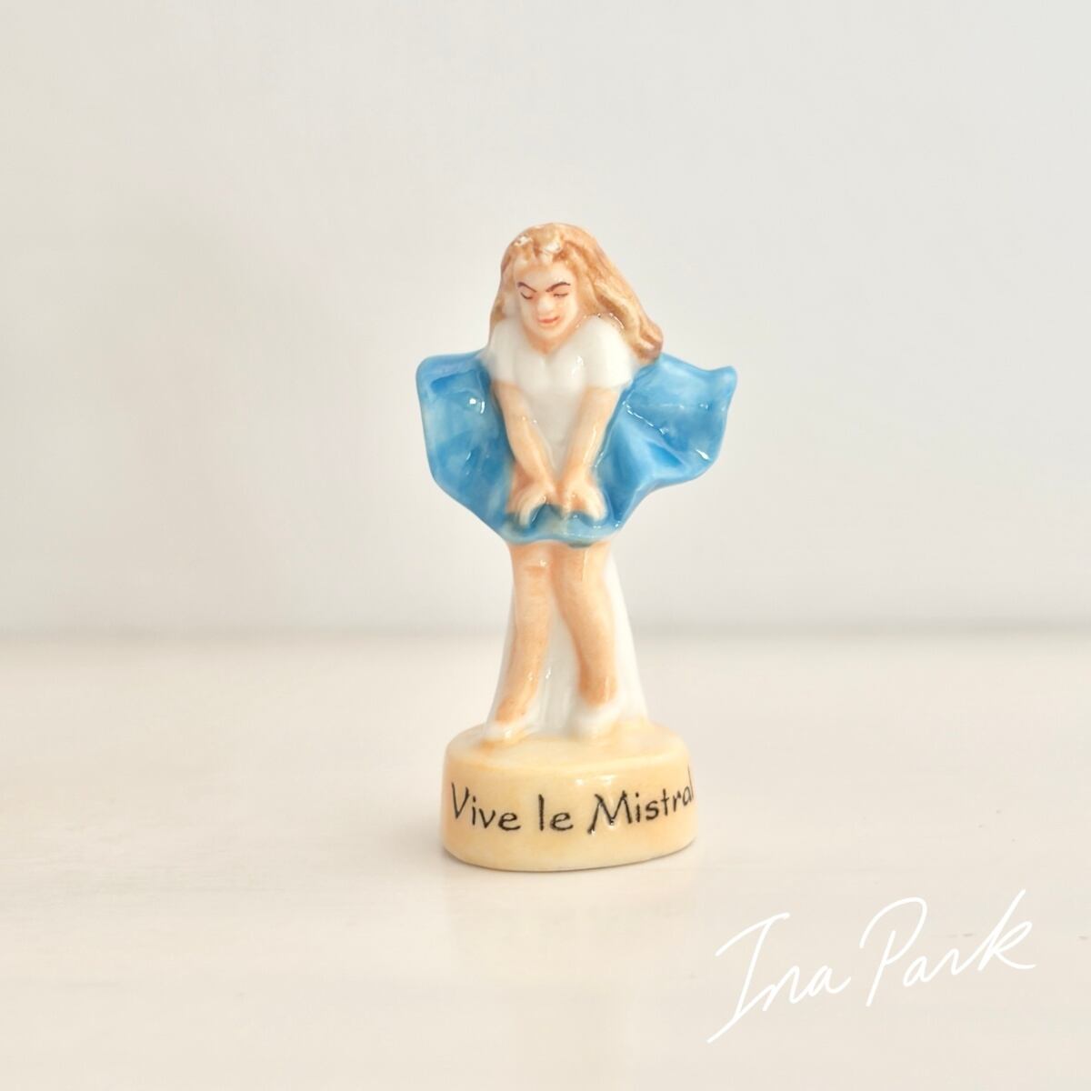 ⚠︎有 ミストラルでスカートがめくれる女性のフェーブ プロヴァンス 南仏 フェーヴ フランス製 ミニチュア 陶器 雑貨 置物