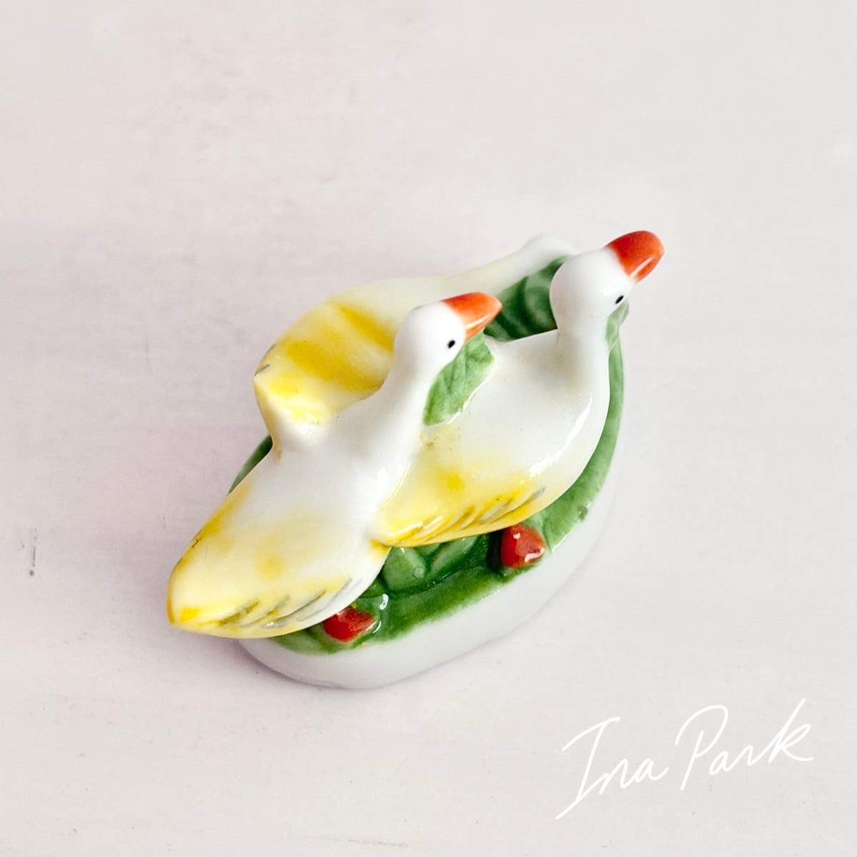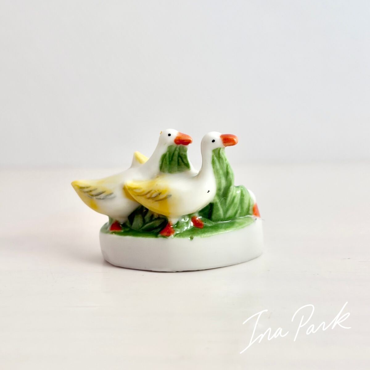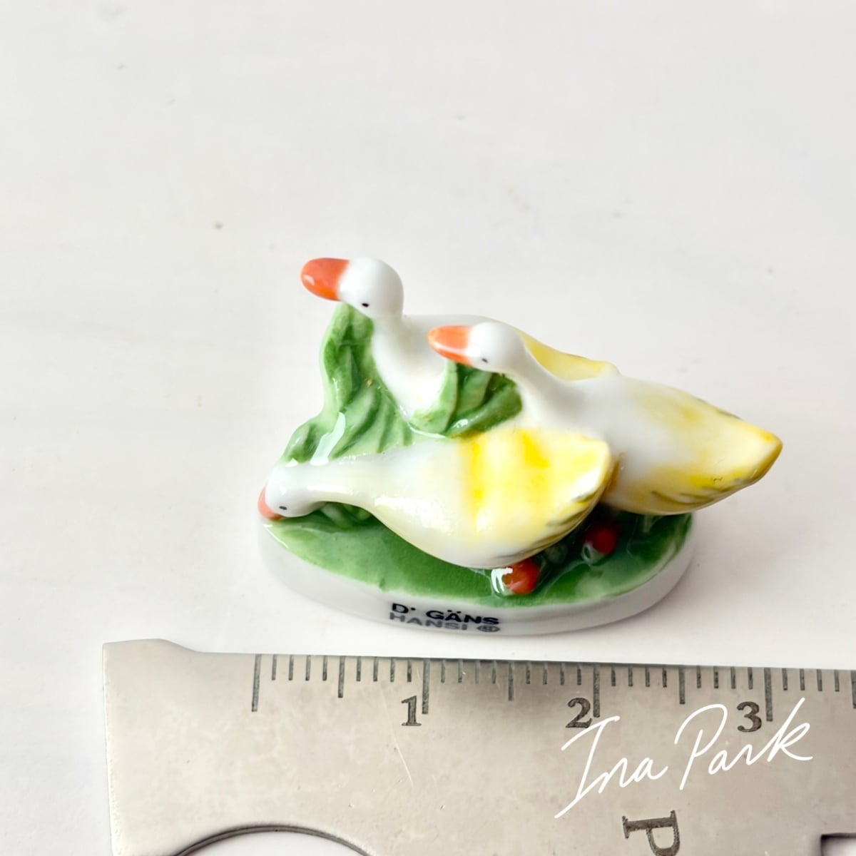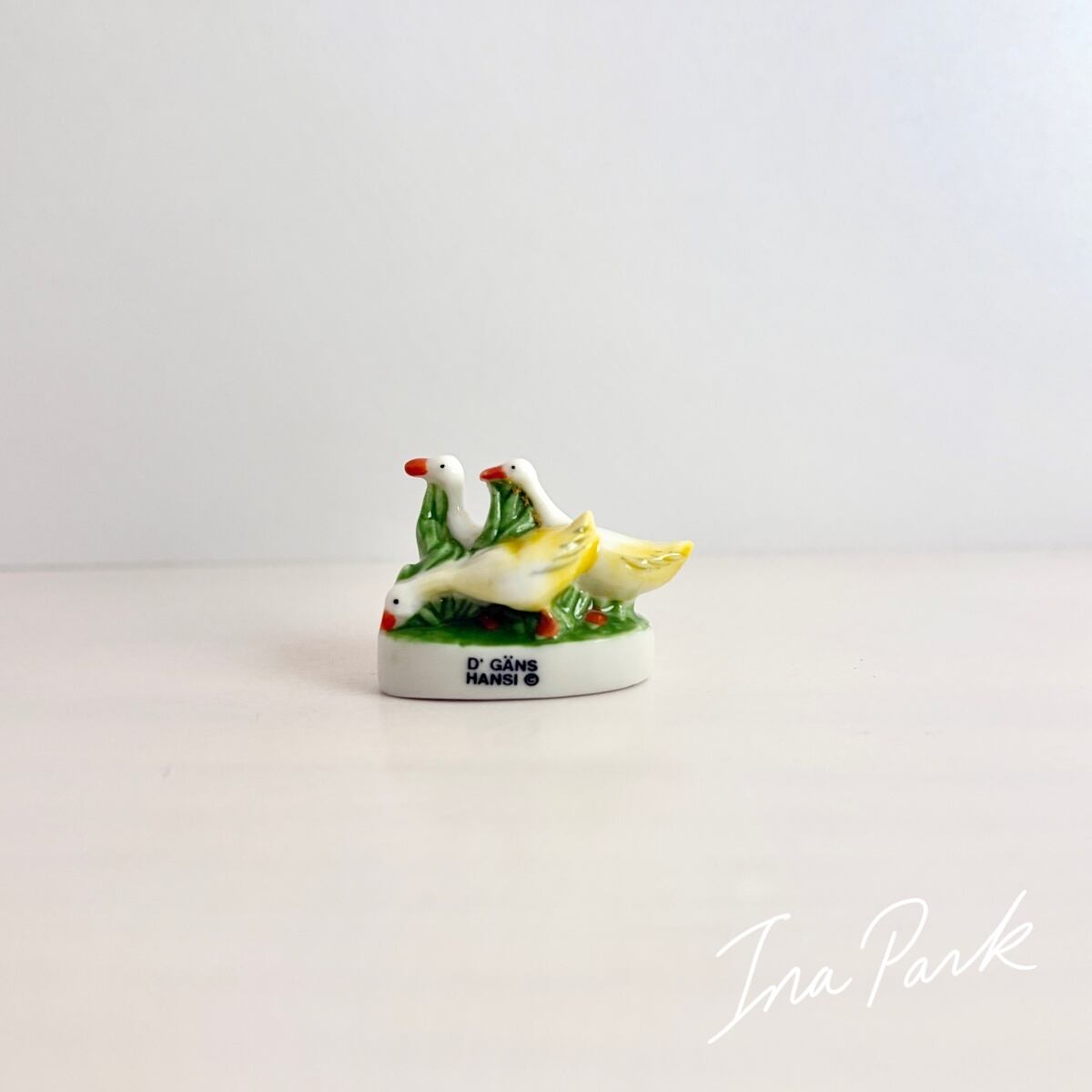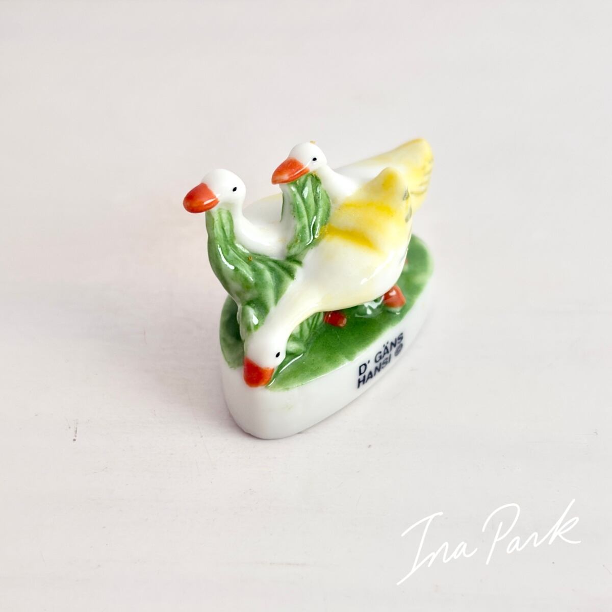 ヴィンテージ ハンシのアルザス 3羽のガチョウのフェーヴ フェーブ フランス製 ミニチュア 陶器 雑貨 置物