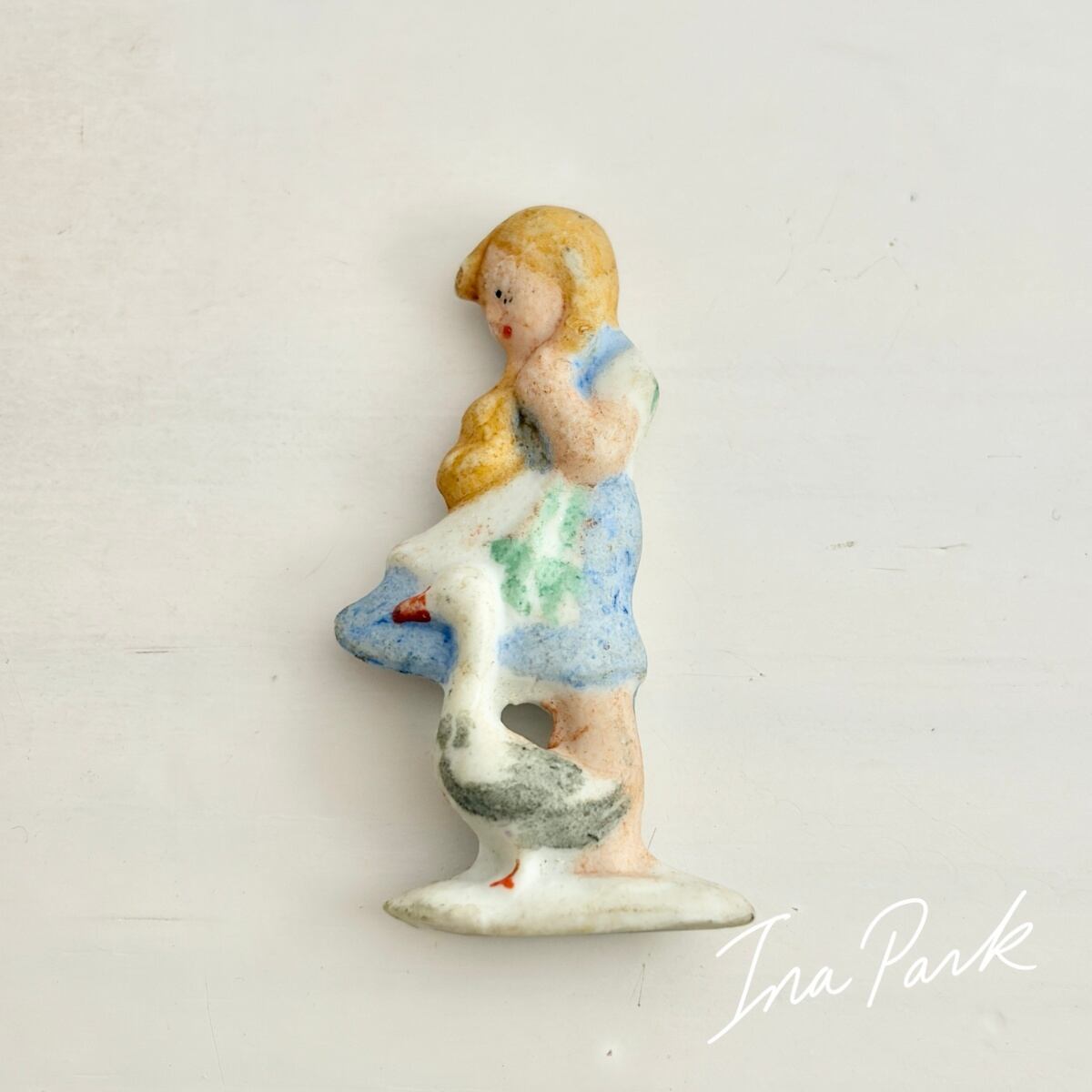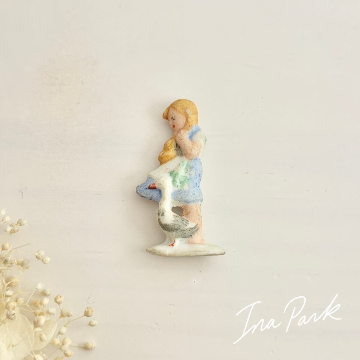 ドイツ製1933-1945アンティーク フェーブ ガチョウ番の王女 バッジ フェーヴ ミニチュア 陶器 雑貨