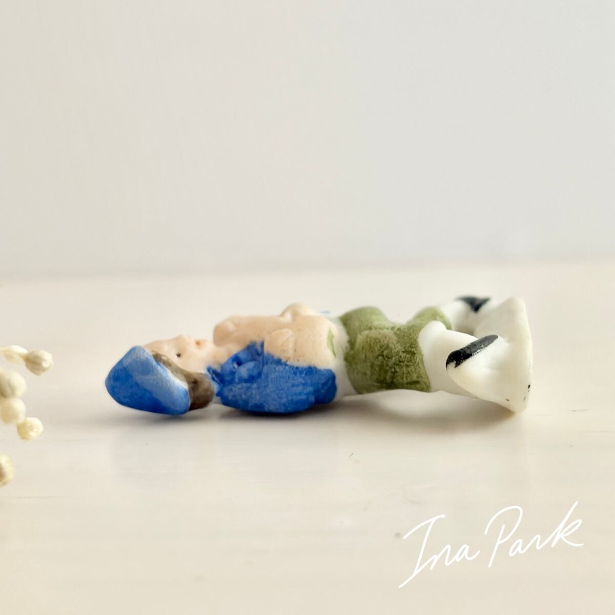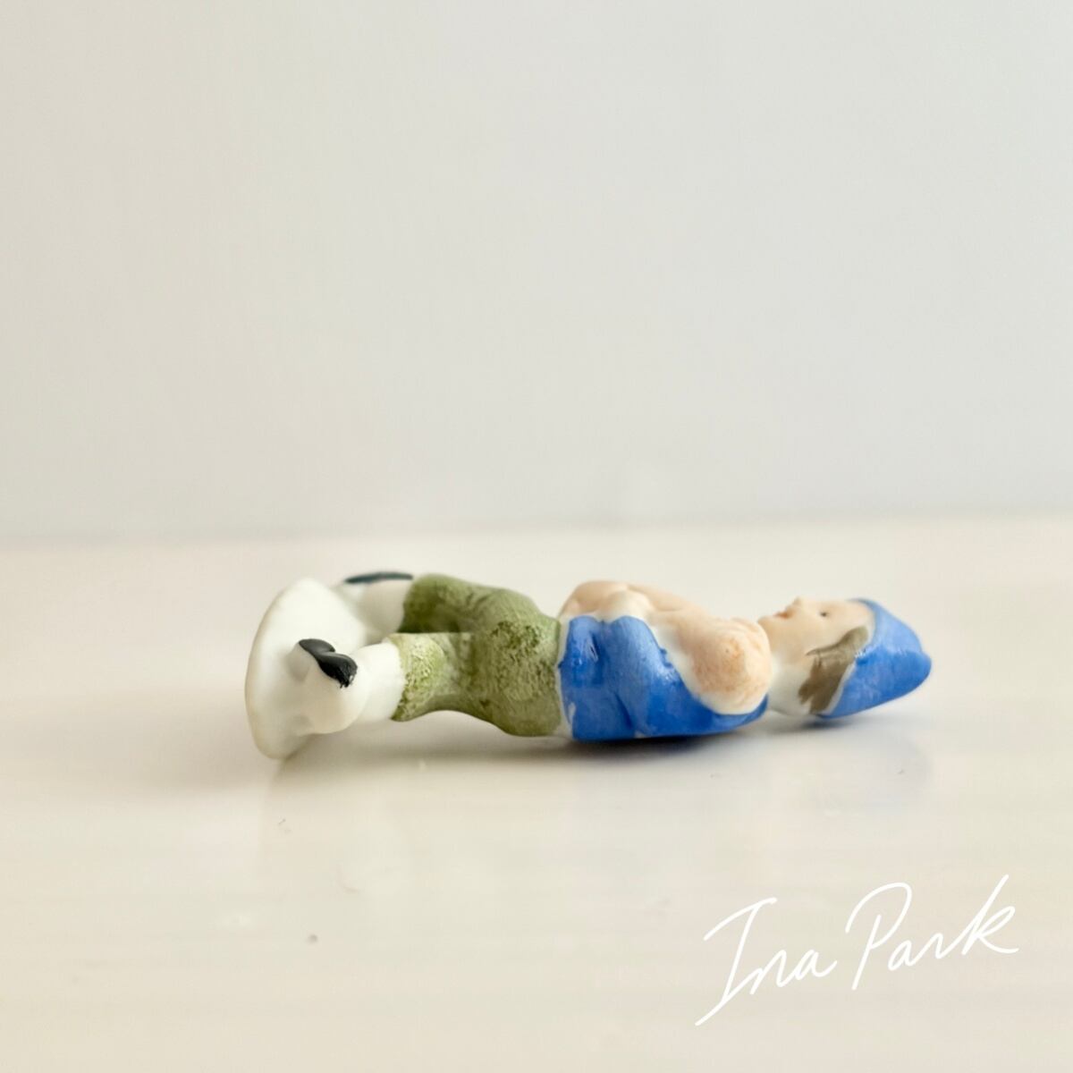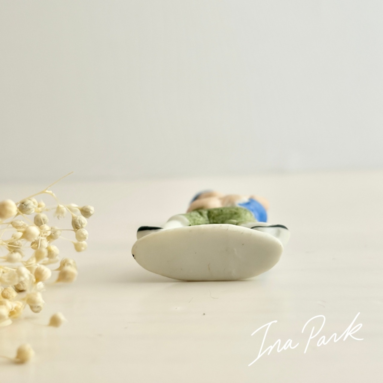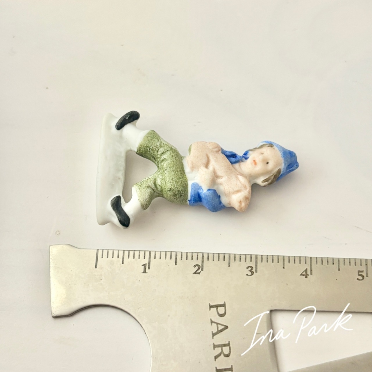 ドイツ製1933-1945アンティーク フェーブ 豚を抱える少年 バッジ フェーヴ ミニチュア 陶器 雑貨